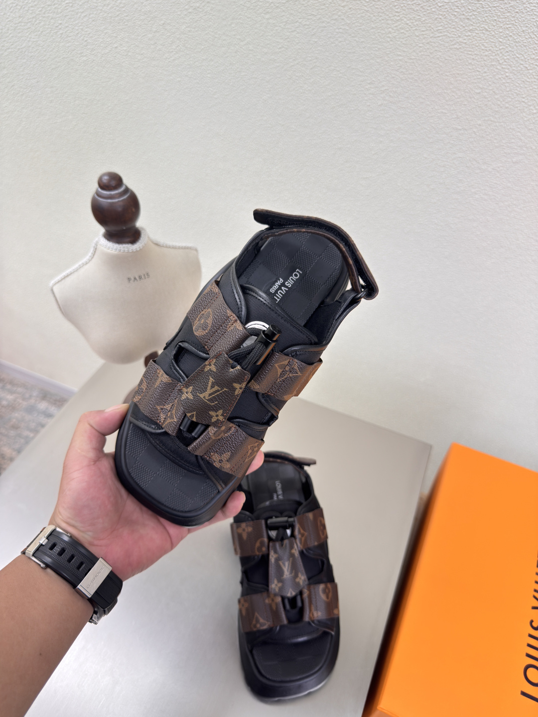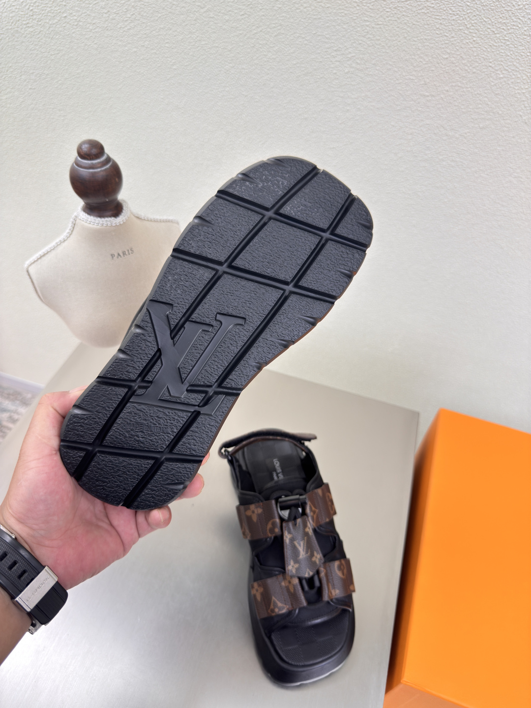 这款鞋子是AAAAA 1:1 质量 (非常棒). 使用了和原版一模一样的材料. 商标部分也保持了和路易威登/Louis Vuitton一样. 图片拍摄是实物鞋子拍摄, 您所收到的实物保证和我们图片一模一样.