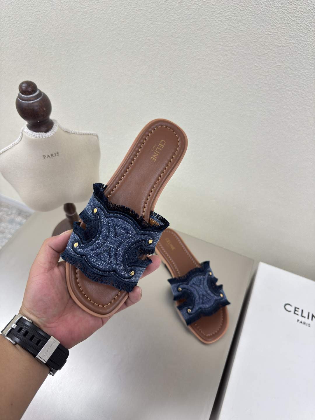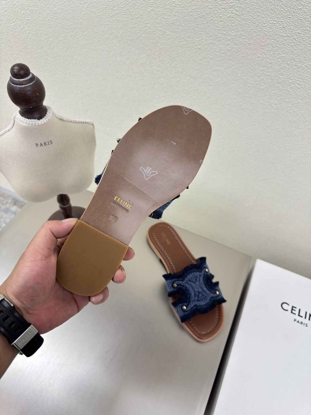 这款鞋子是AAAAA 1:1 质量 (非常棒). 使用了和原版一模一样的材料. 商标部分也保持了和思琳/Celine一样. 图片拍摄是实物鞋子拍摄, 您所收到的实物保证和我们图片一模一样.