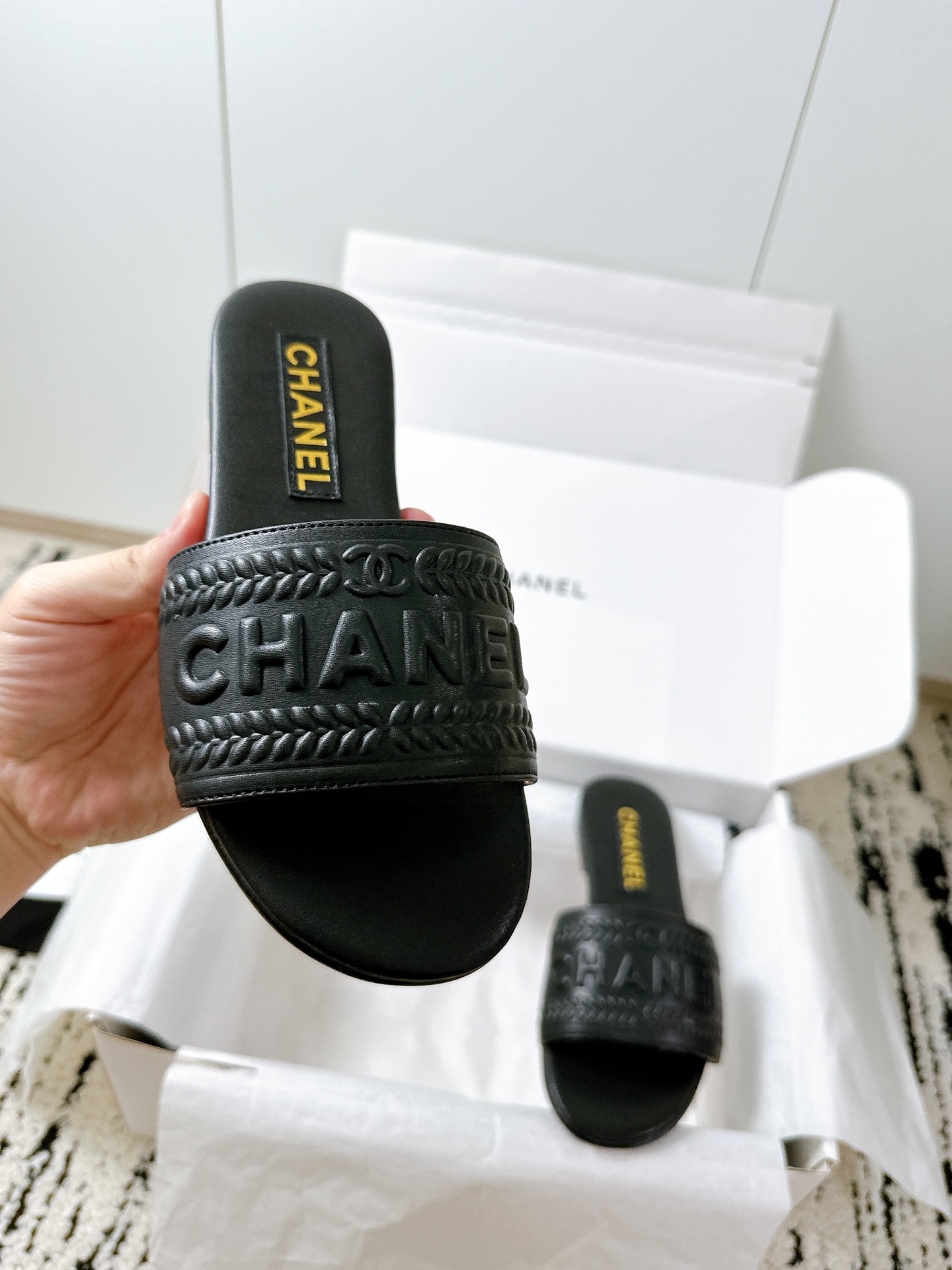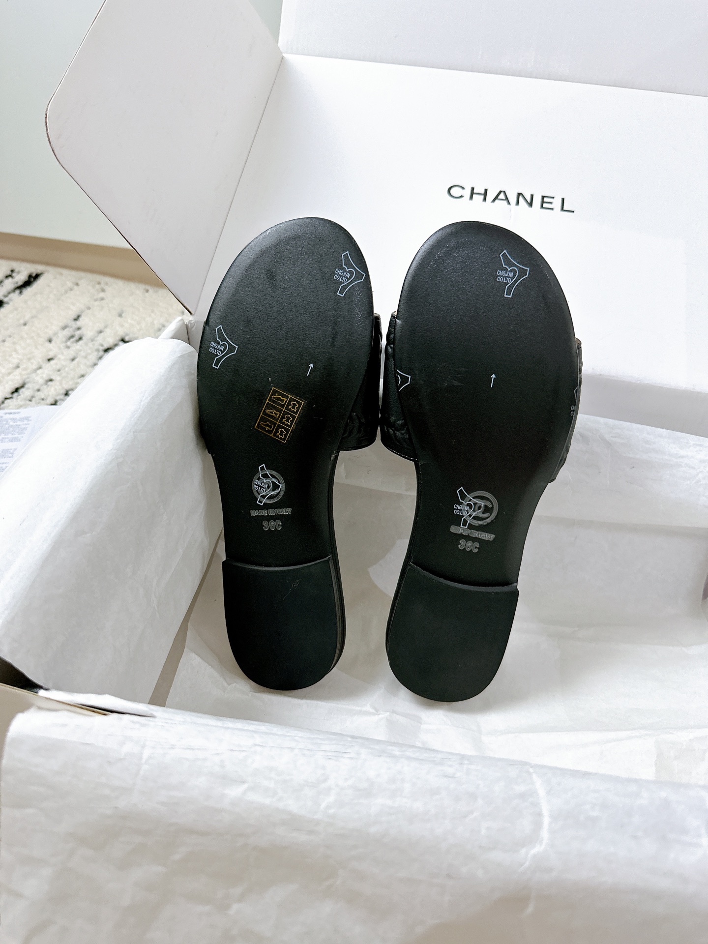 这款鞋子是AAAAA 1:1 质量 (非常棒). 使用了和原版一模一样的材料. 商标部分也保持了和香奈儿/Chanel一样. 图片拍摄是实物鞋子拍摄, 您所收到的实物保证和我们图片一模一样.
