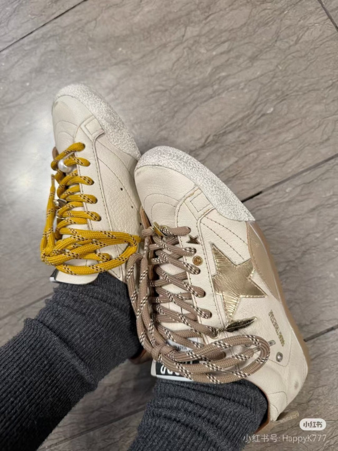 这款鞋子是AAAAA 1:1 质量 (非常棒). 使用了和原版一模一样的材料. 商标部分也保持了和Golden Goose一样. 图片拍摄是实物鞋子拍摄, 您所收到的实物保证和我们图片一模一样.