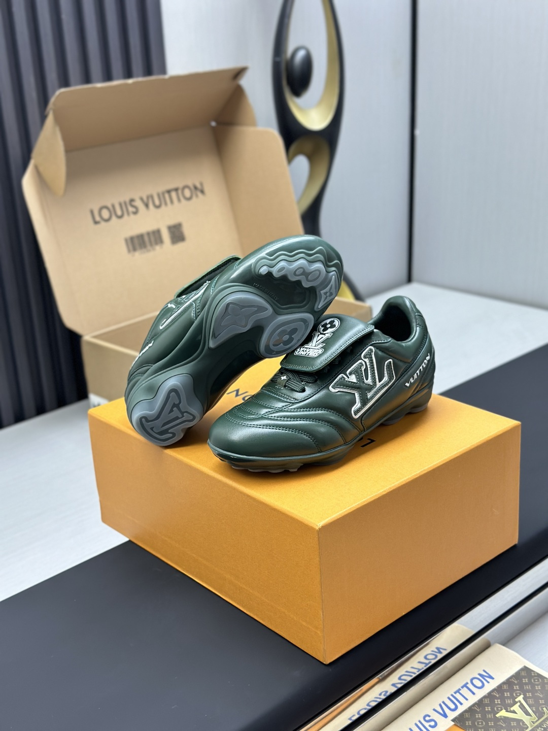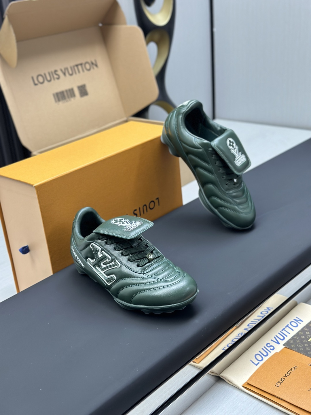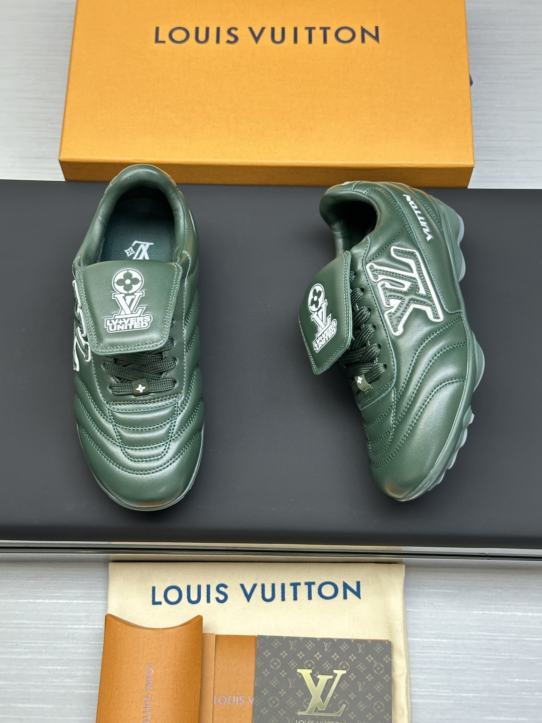 这款鞋子是AAAAA 1:1 质量 (非常棒). 使用了和原版一模一样的材料. 商标部分也保持了和路易威登/Louis Vuitton一样. 图片拍摄是实物鞋子拍摄, 您所收到的实物保证和我们图片一模一样.