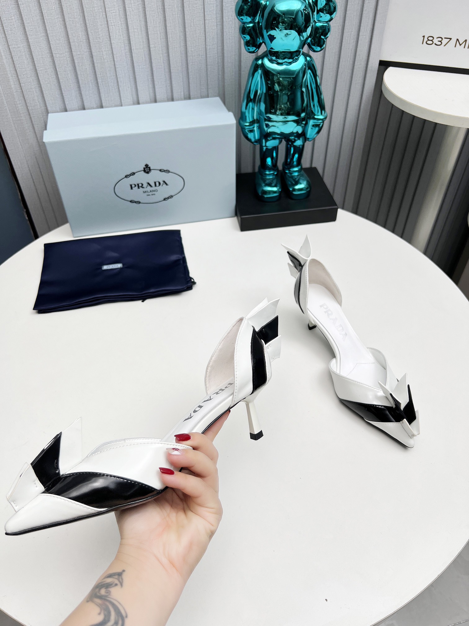 这款鞋子是AAAAA 1:1 质量 (非常棒). 使用了和原版一模一样的材料. 商标部分也保持了和普拉达/Prada一样. 图片拍摄是实物鞋子拍摄, 您所收到的实物保证和我们图片一模一样.