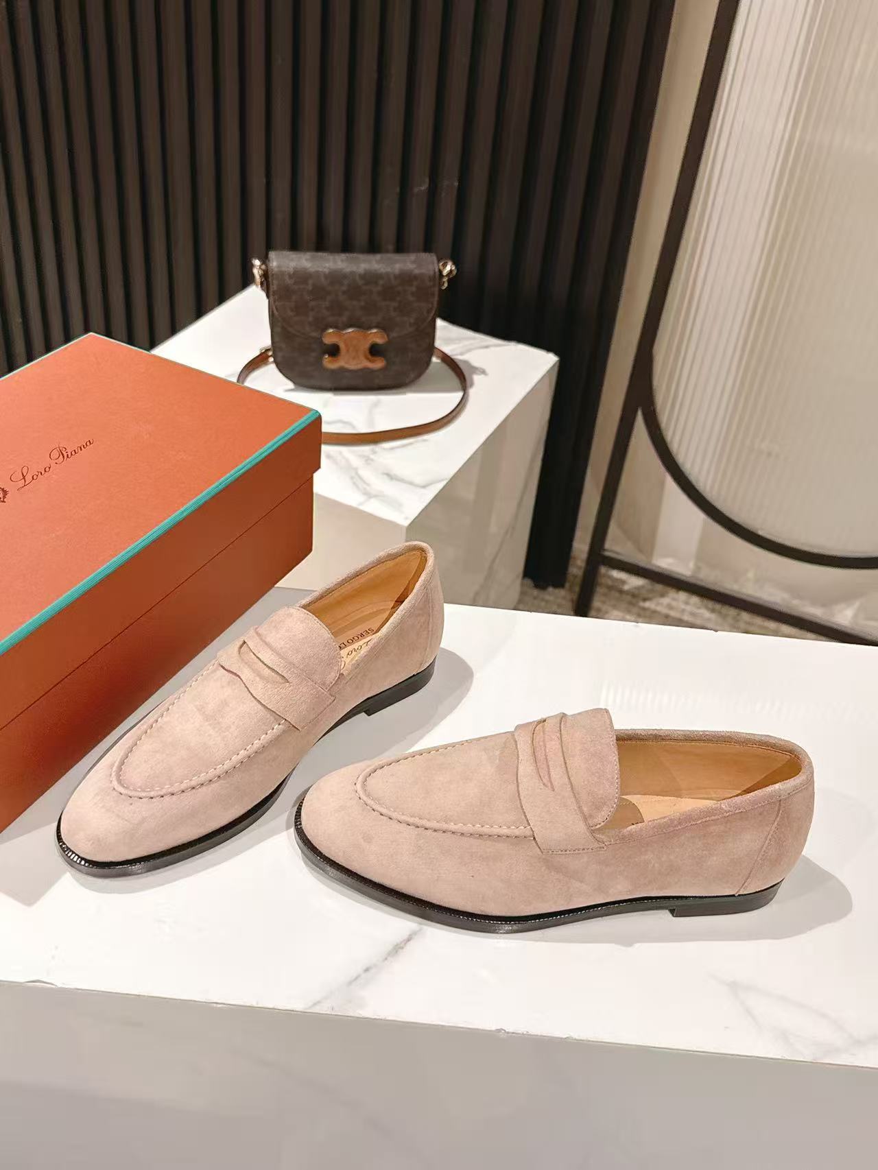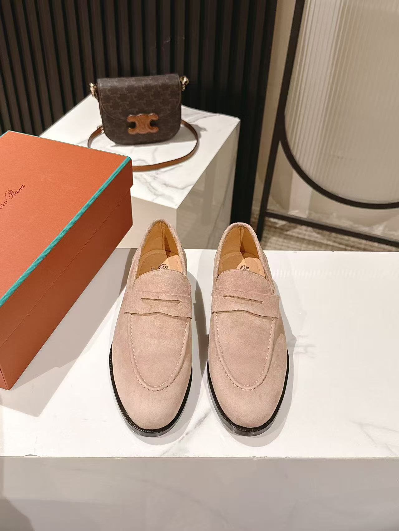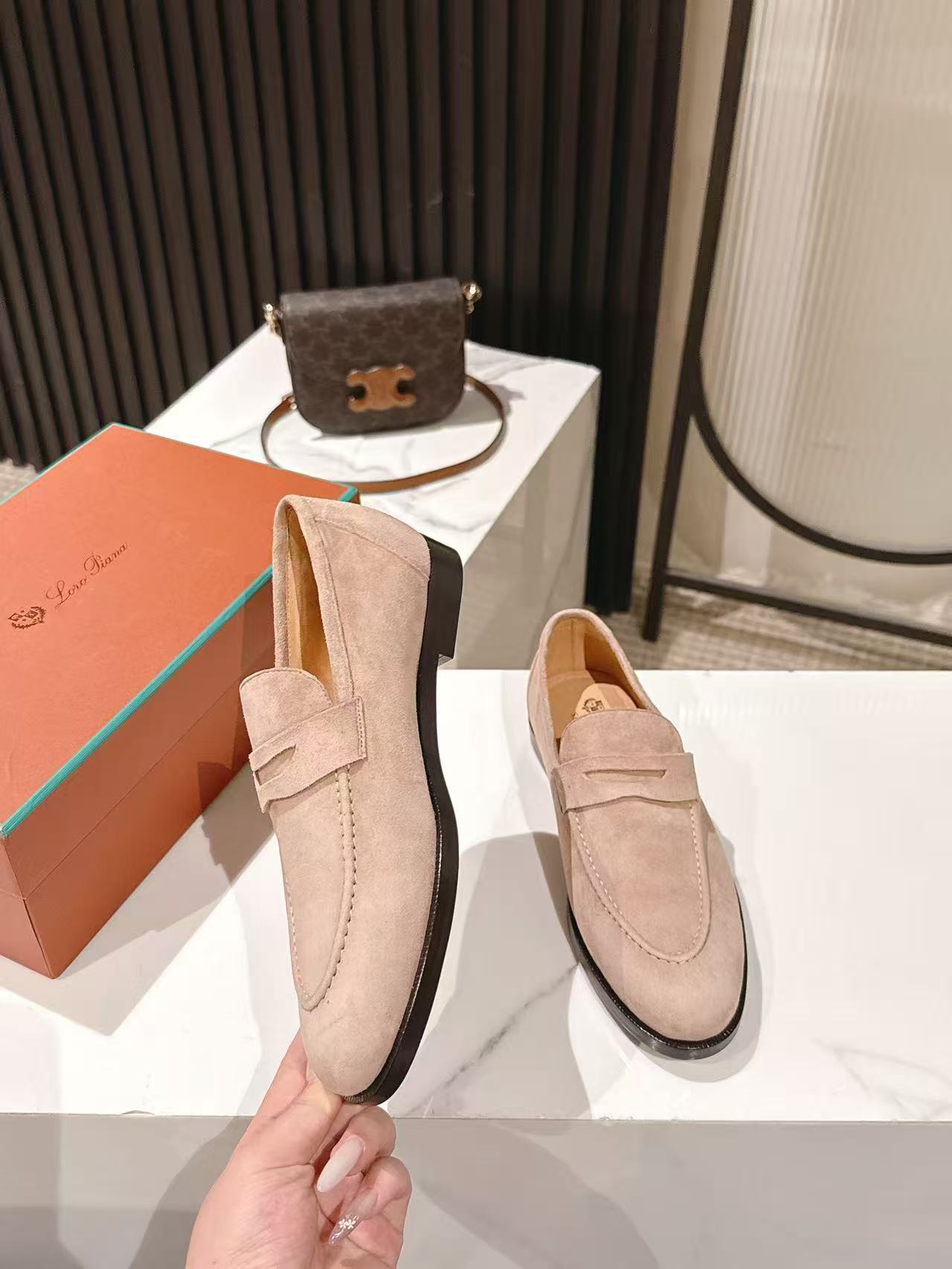 这款鞋子是AAAAA 1:1 质量 (非常棒). 使用了和原版一模一样的材料. 商标部分也保持了和洛罗皮亚纳/Loro Piana一样. 图片拍摄是实物鞋子拍摄, 您所收到的实物保证和我们图片一模一样.