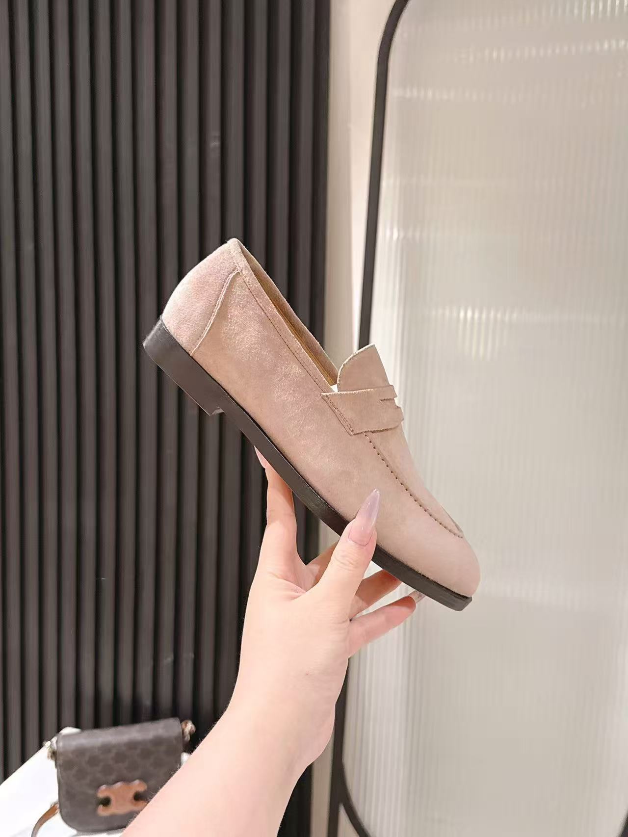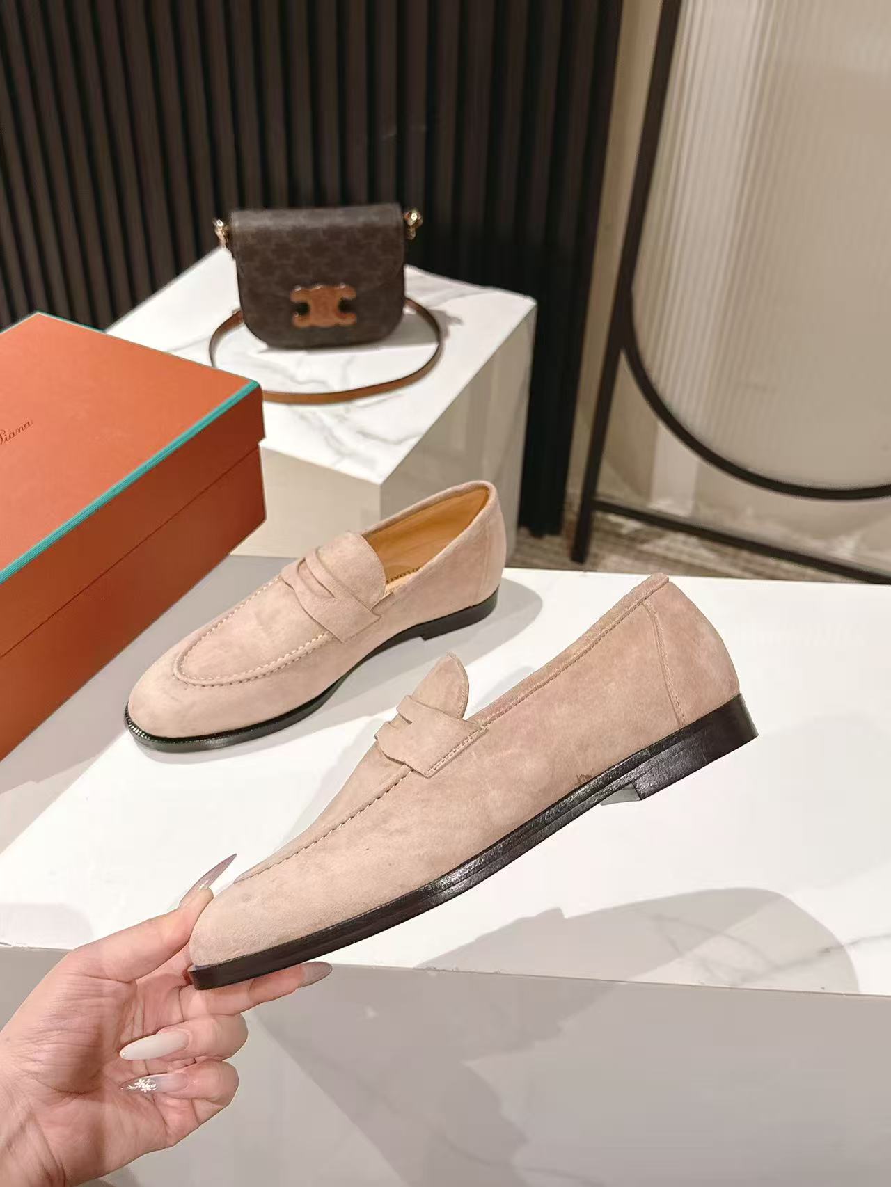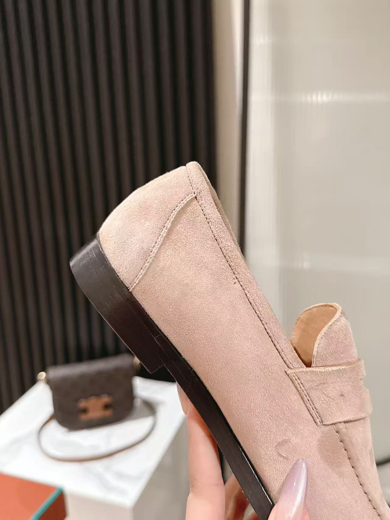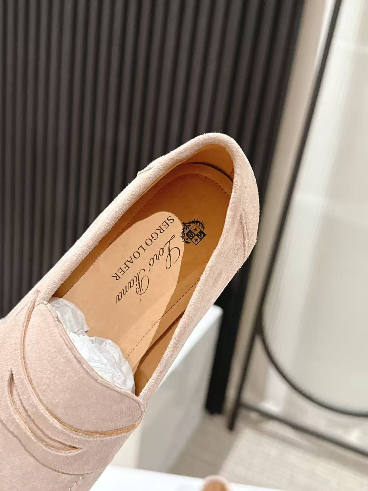 这款鞋子是AAAAA 1:1 质量 (非常棒). 使用了和原版一模一样的材料. 商标部分也保持了和洛罗皮亚纳/Loro Piana一样. 图片拍摄是实物鞋子拍摄, 您所收到的实物保证和我们图片一模一样.