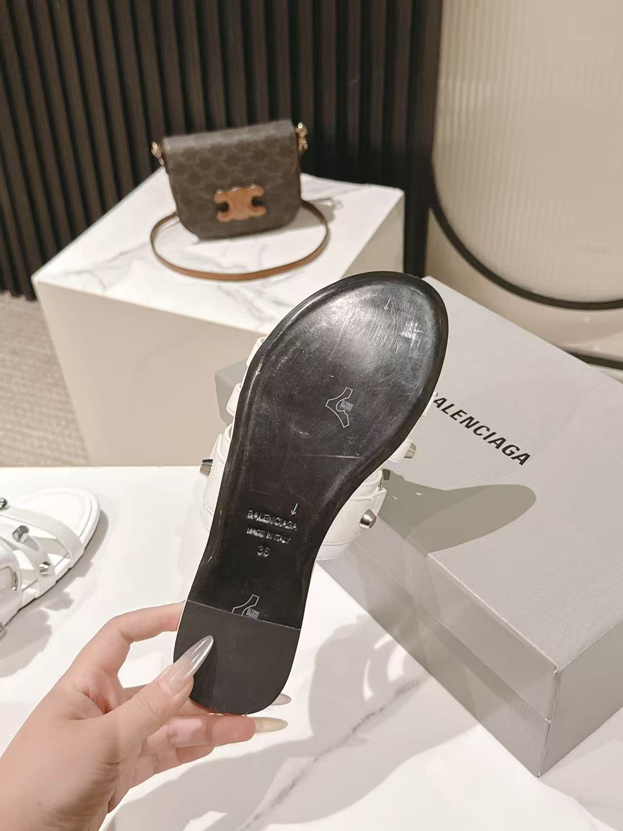 这款鞋子是AAAAA 1:1 质量 (非常棒). 使用了和原版一模一样的材料. 商标部分也保持了和巴黎世家/Balenciaga一样. 图片拍摄是实物鞋子拍摄, 您所收到的实物保证和我们图片一模一样.