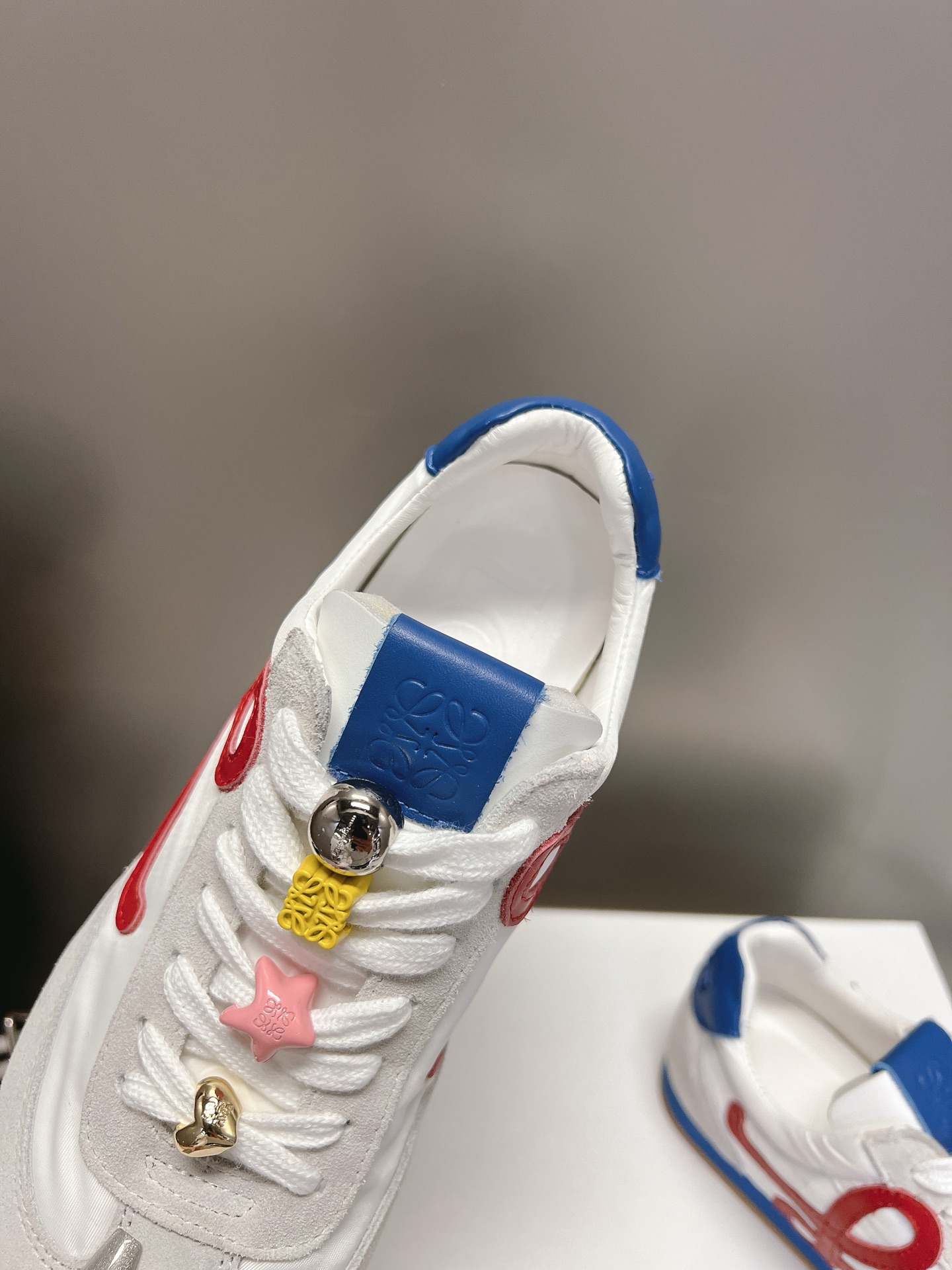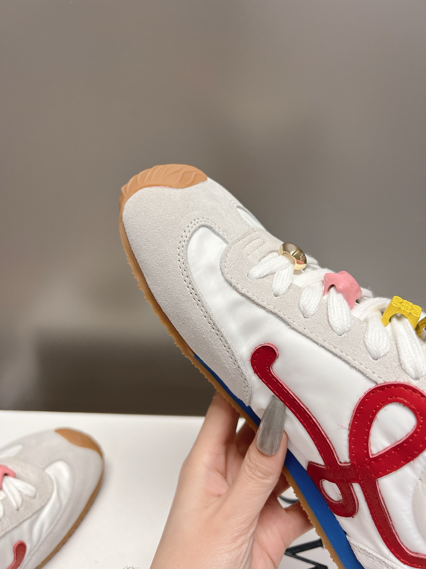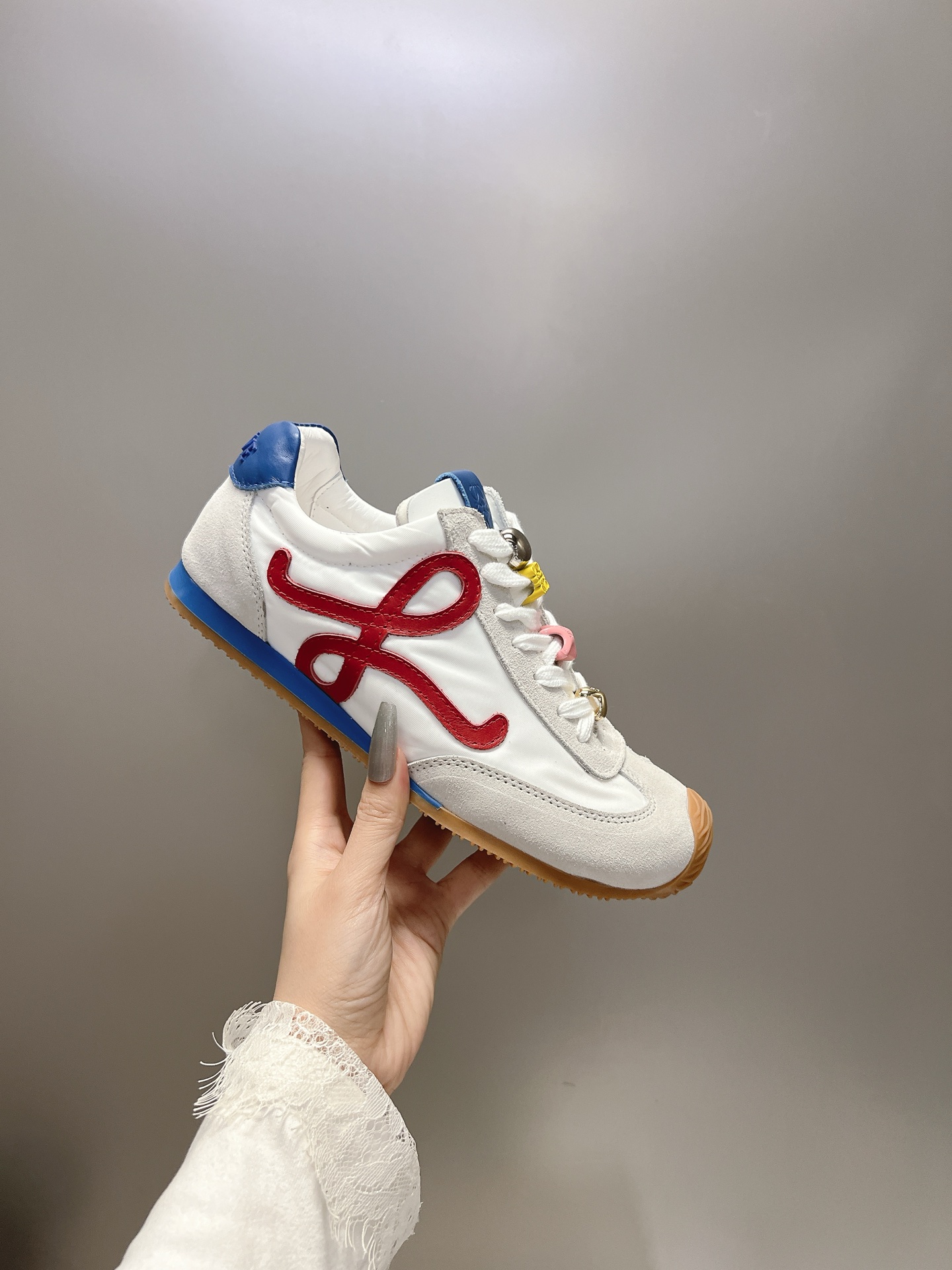这款鞋子是AAAAA 1:1 质量 (非常棒). 使用了和原版一模一样的材料. 商标部分也保持了和罗意威/Loewe一样. 图片拍摄是实物鞋子拍摄, 您所收到的实物保证和我们图片一模一样.