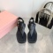 这款鞋子是AAAAA 1:1 质量 (非常棒). 使用了和原版一模一样的材料. 商标部分也保持了和缪缪/Miu Miu一样. 图片拍摄是实物鞋子拍摄, 您所收到的实物保证和我们图片一模一样.