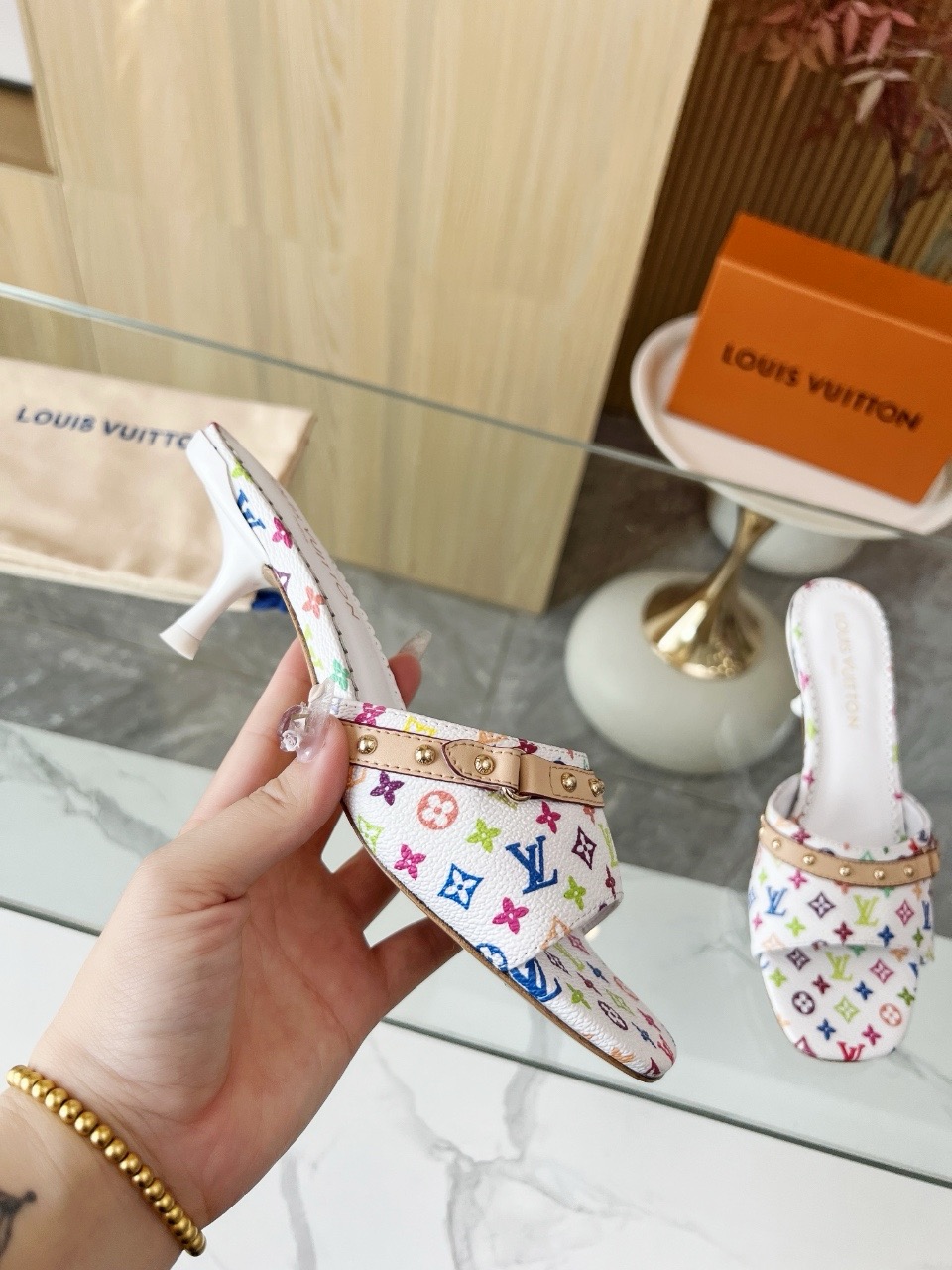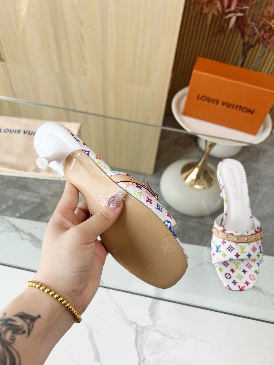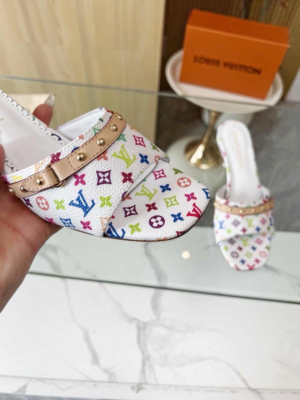 这款鞋子是AAAAA 1:1 质量 (非常棒). 使用了和原版一模一样的材料. 商标部分也保持了和路易威登/Louis Vuitton一样. 图片拍摄是实物鞋子拍摄, 您所收到的实物保证和我们图片一模一样.