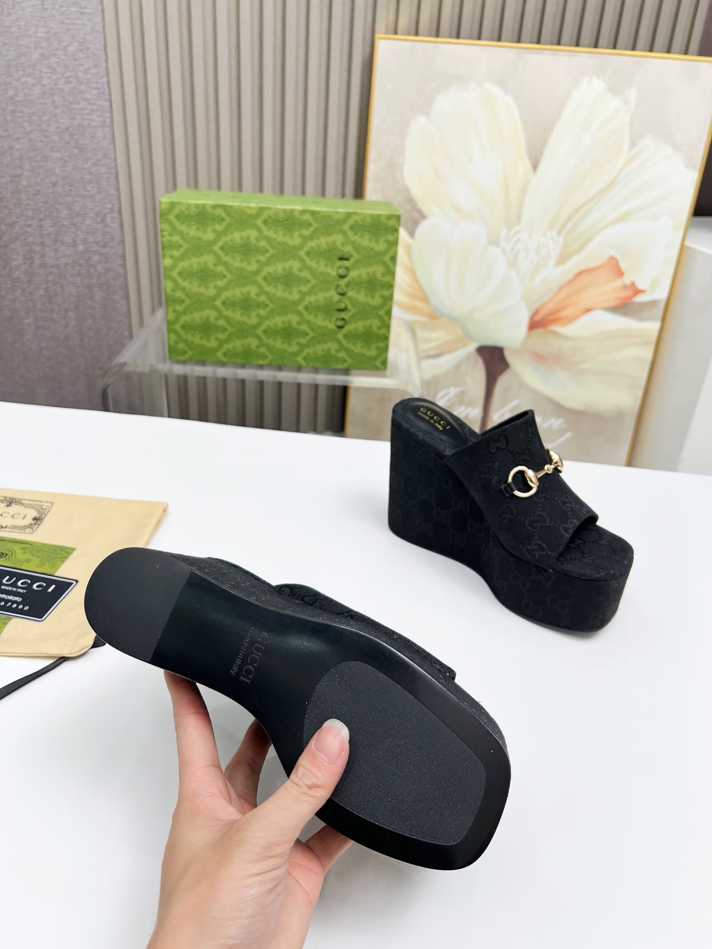 这款鞋子是AAAAA 1:1 质量 (非常棒). 使用了和原版一模一样的材料. 商标部分也保持了和古奇/Gucci一样. 图片拍摄是实物鞋子拍摄, 您所收到的实物保证和我们图片一模一样.