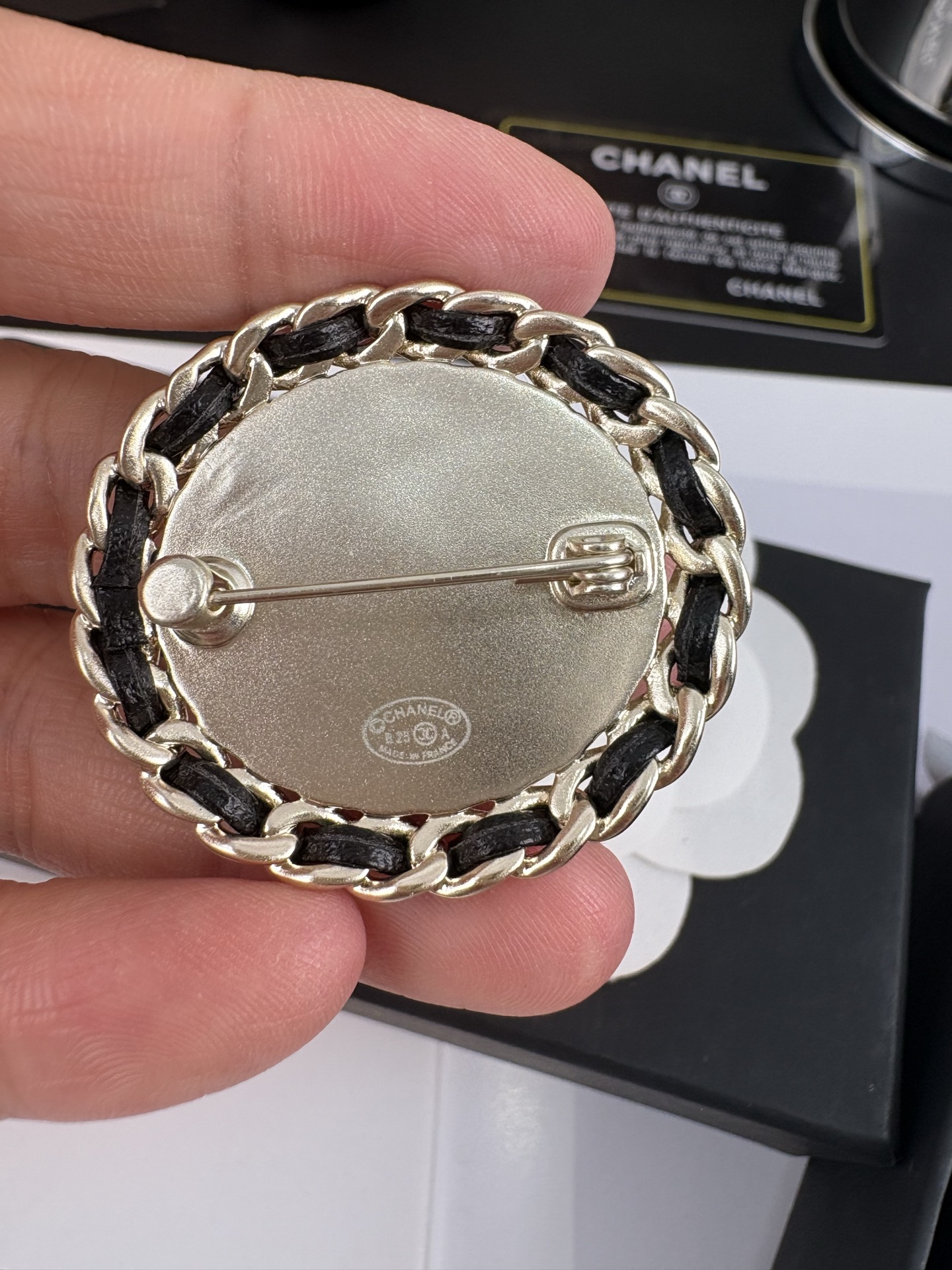 这款首饰是AAAAA 1:1 质量 (非常棒). 使用了和原版一模一样的材料. 商标部分也保持了和香奈儿/Chanel一样. 图片拍摄是实物首饰拍摄, 您所收到的实物保证和我们图片一模一样.