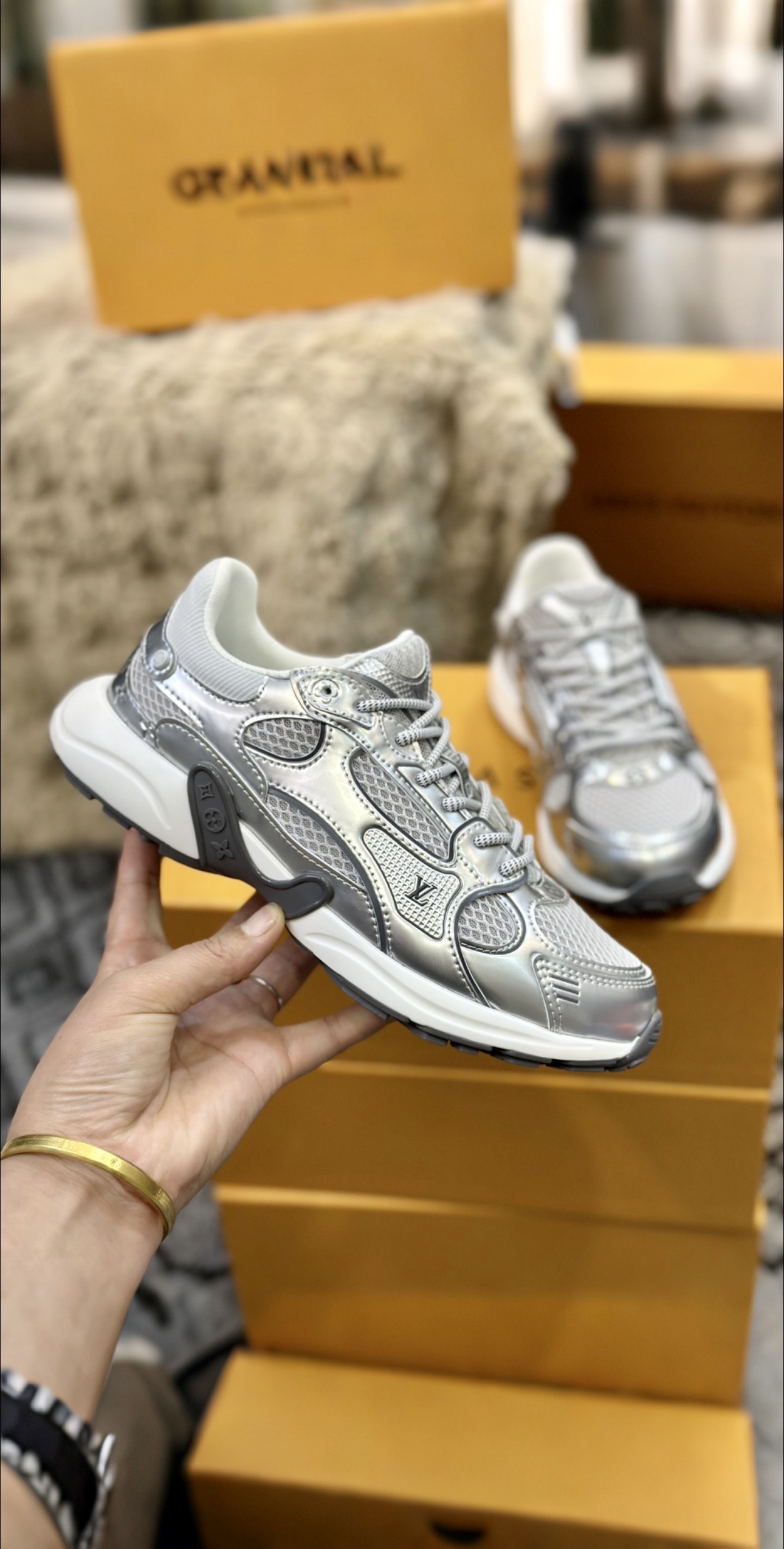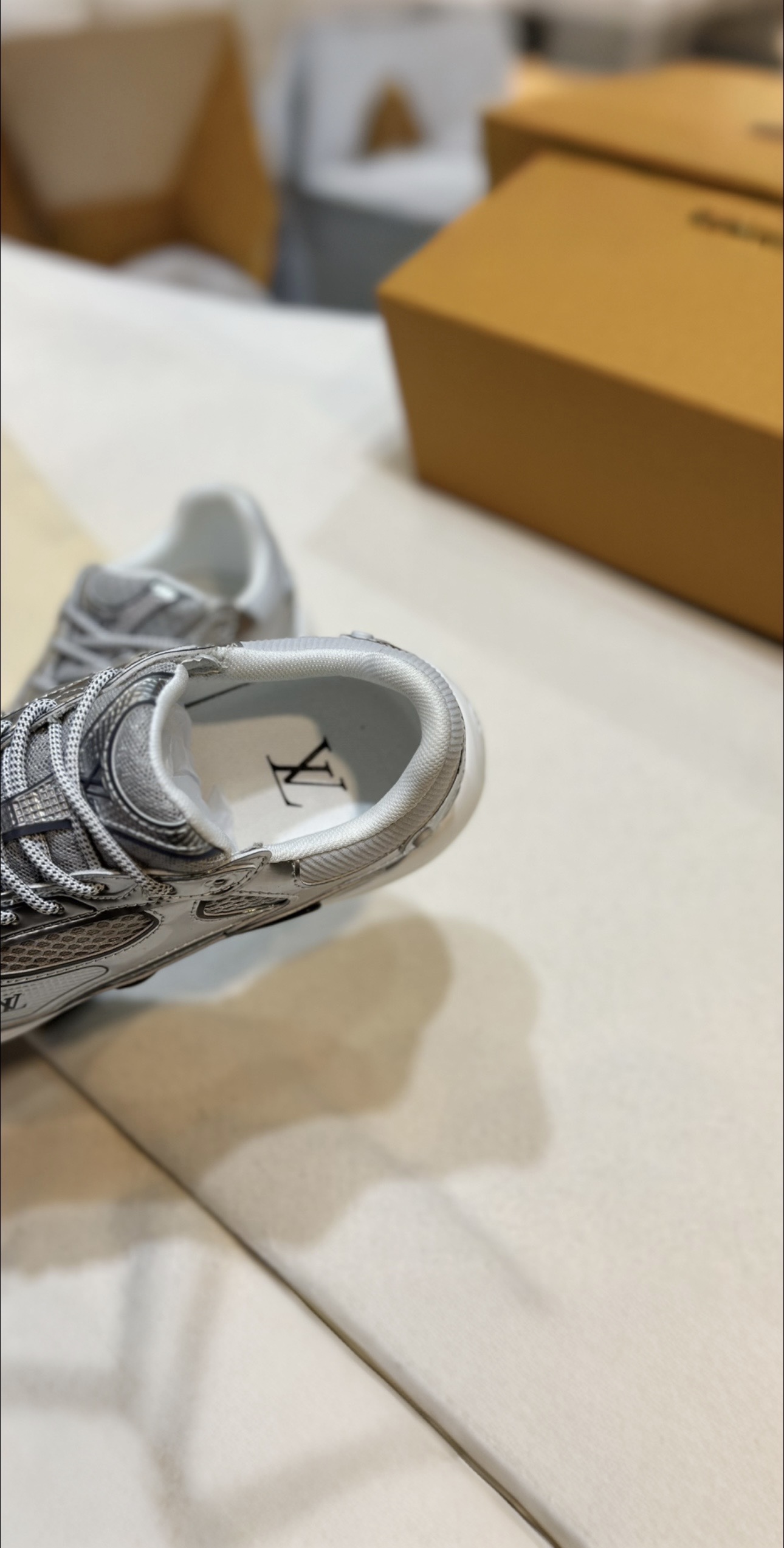 这款鞋子是AAAAA 1:1 质量 (非常棒). 使用了和原版一模一样的材料. 商标部分也保持了和路易威登/Louis Vuitton一样. 图片拍摄是实物鞋子拍摄, 您所收到的实物保证和我们图片一模一样.