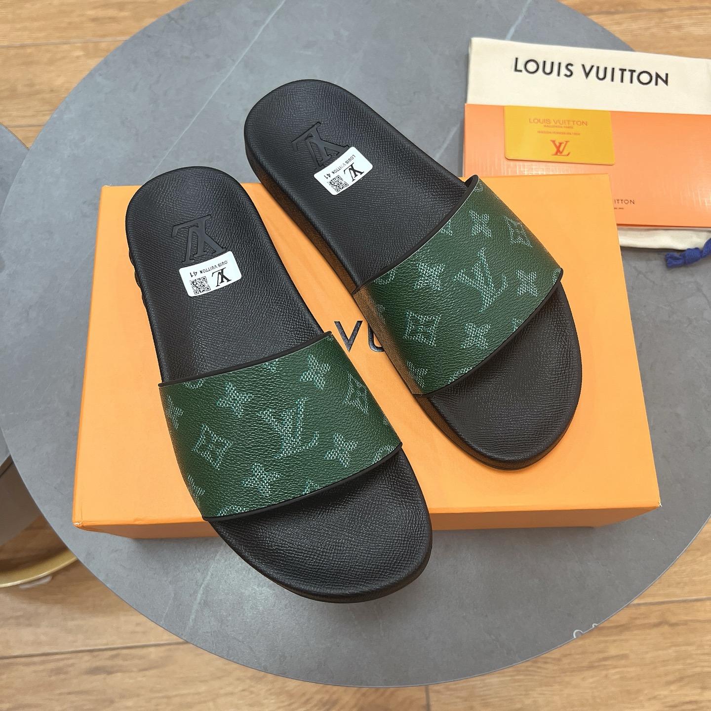 这款鞋子是AAAAA 1:1 质量 (非常棒). 使用了和原版一模一样的材料. 商标部分也保持了和路易威登/Louis Vuitton一样. 图片拍摄是实物鞋子拍摄, 您所收到的实物保证和我们图片一模一样.
