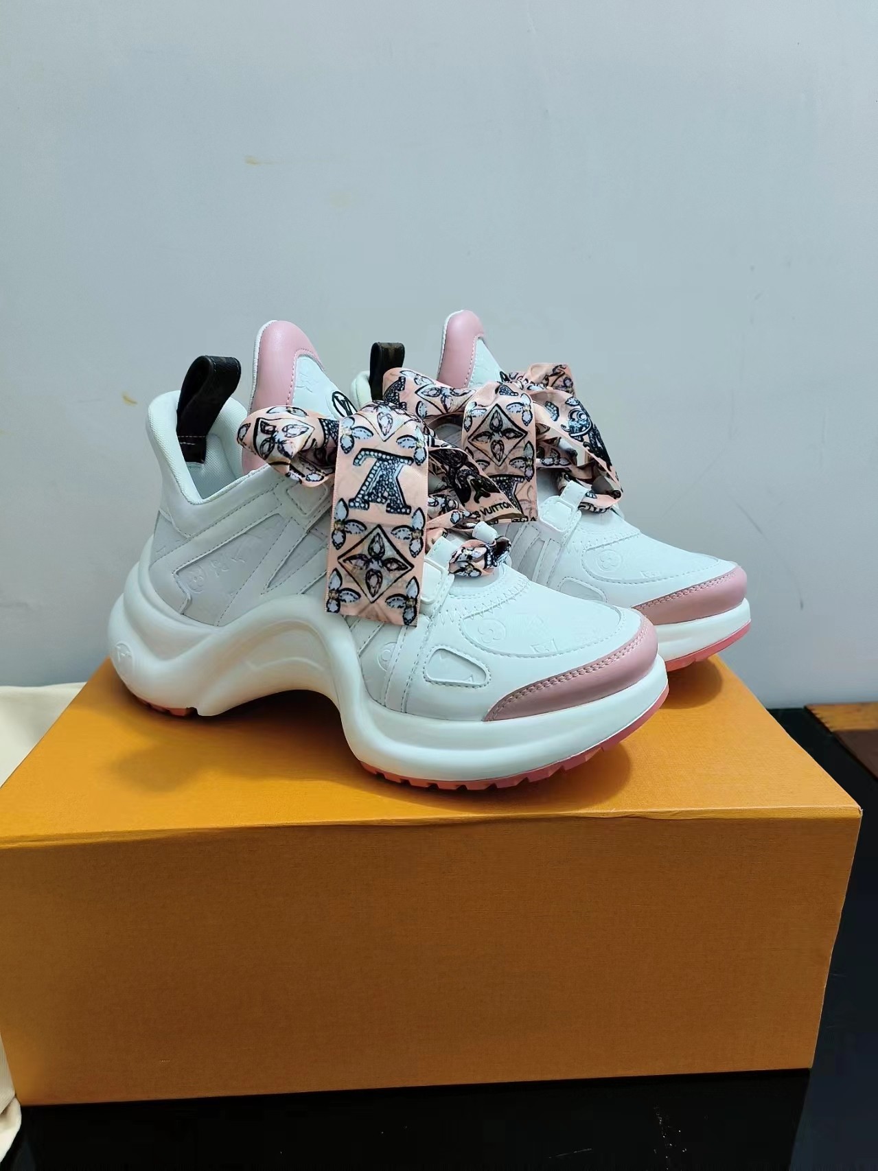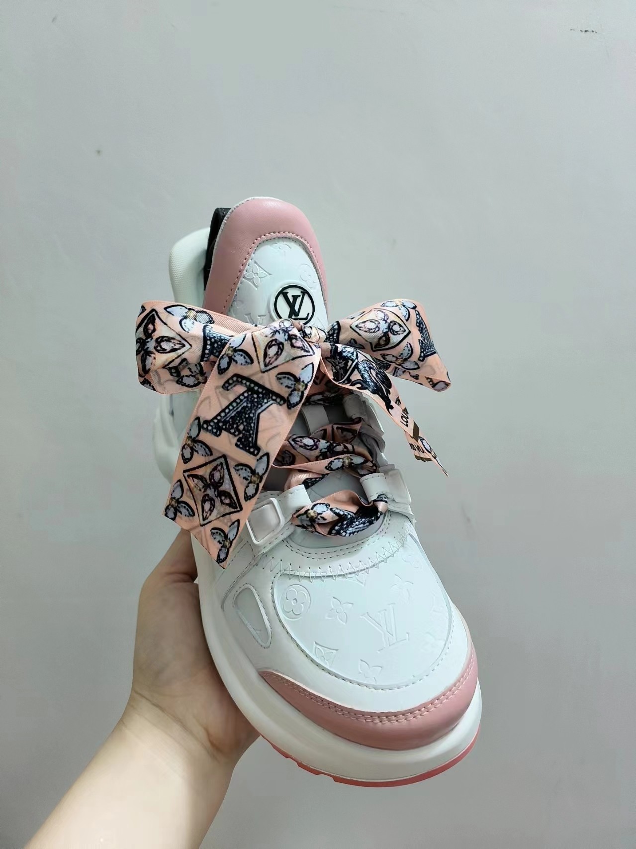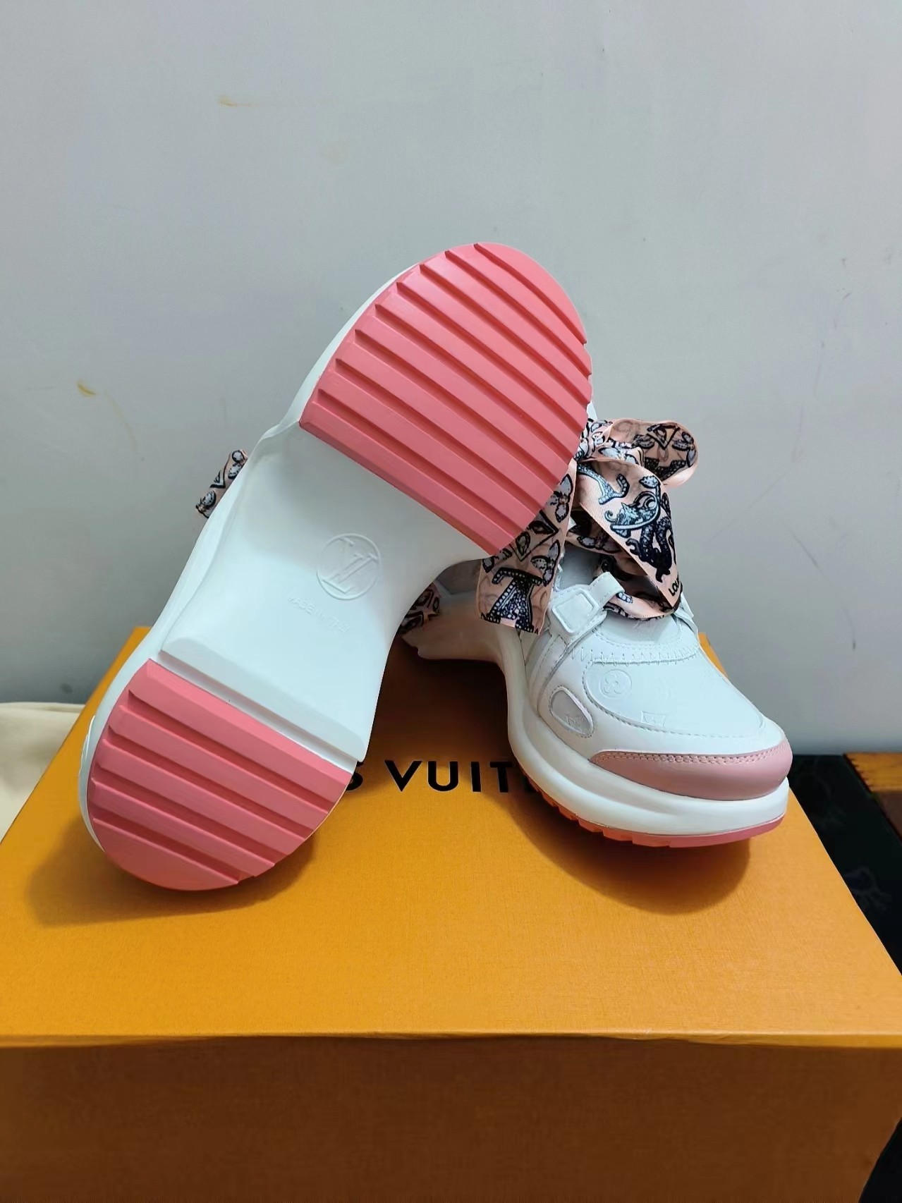 这款鞋子是AAAAA 1:1 质量 (非常棒). 使用了和原版一模一样的材料. 商标部分也保持了和路易威登/Louis Vuitton一样. 图片拍摄是实物鞋子拍摄, 您所收到的实物保证和我们图片一模一样.