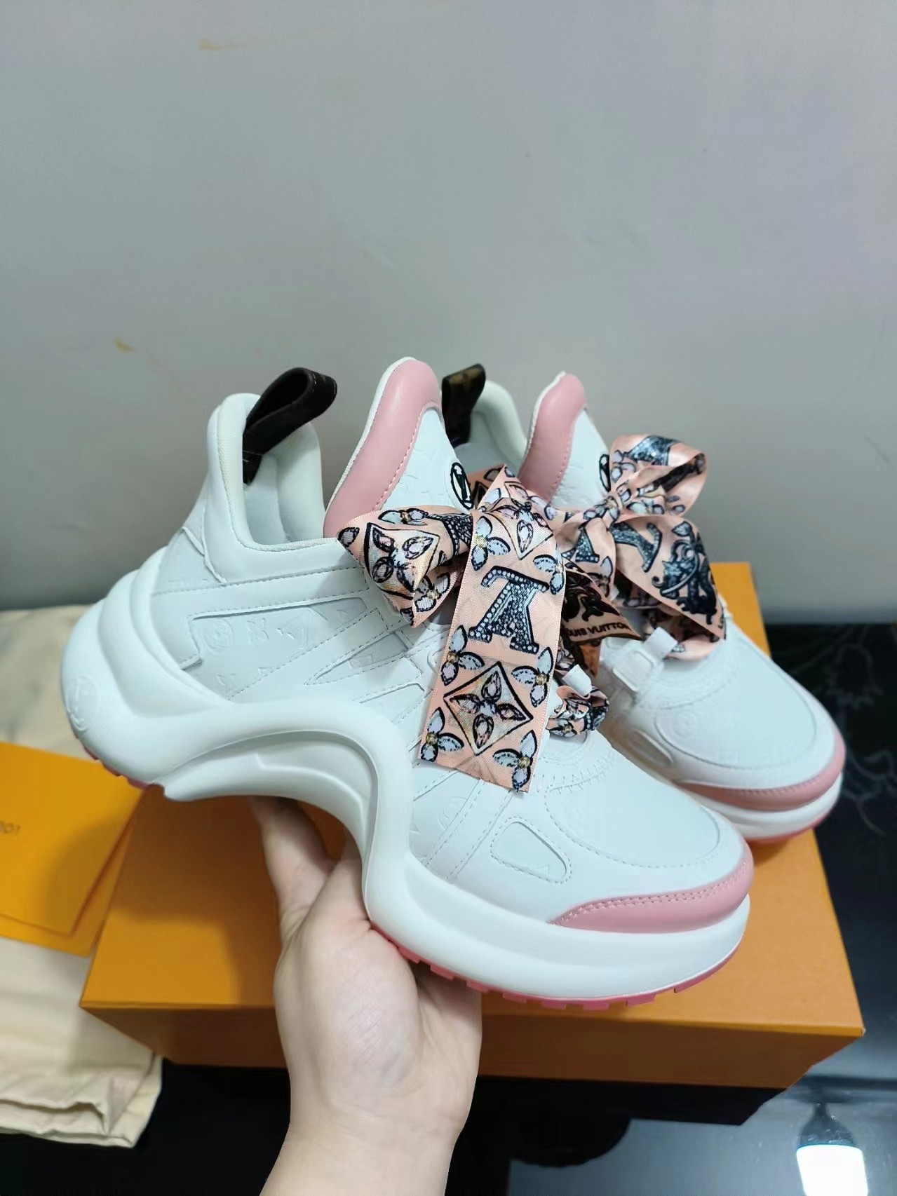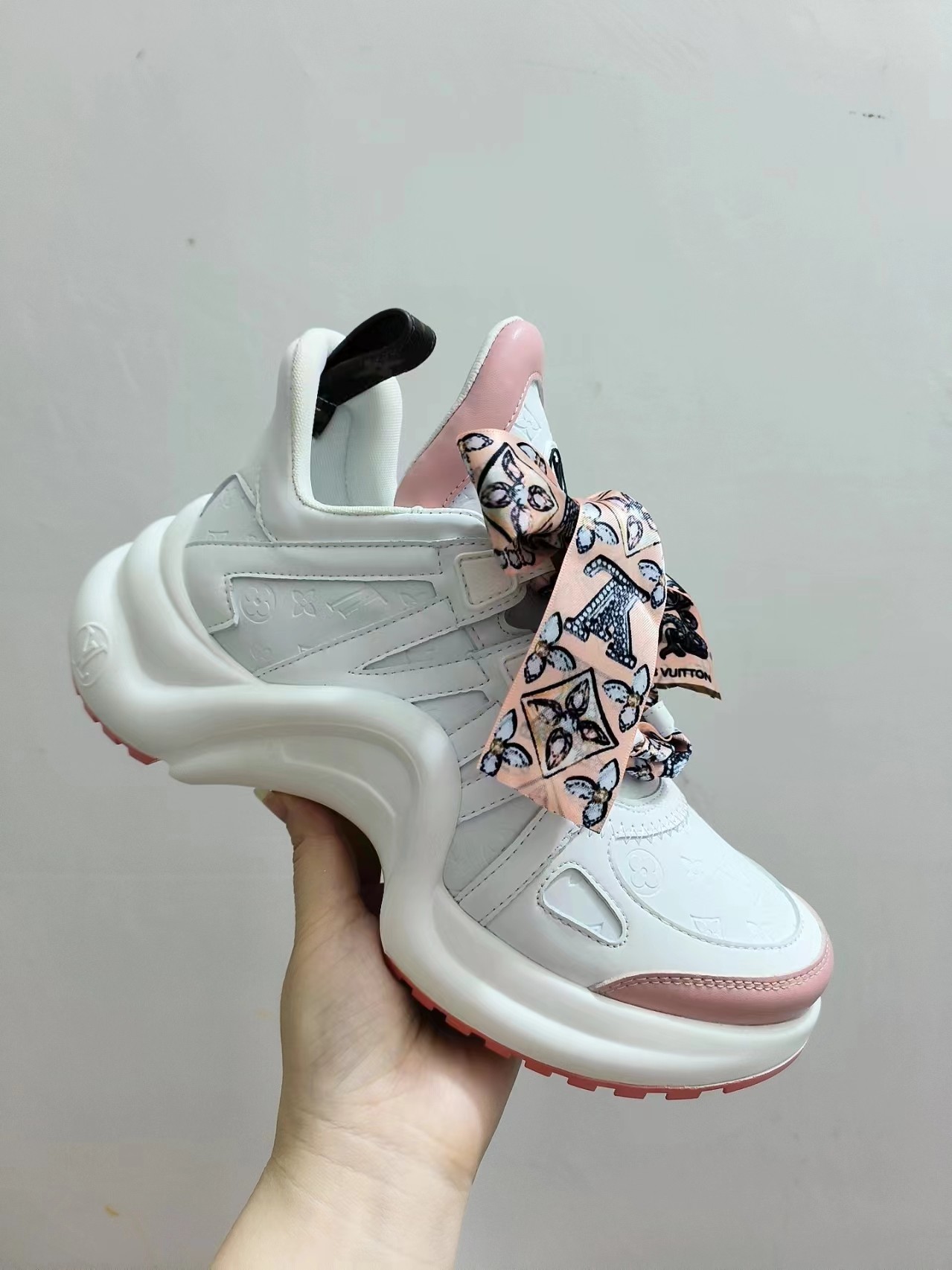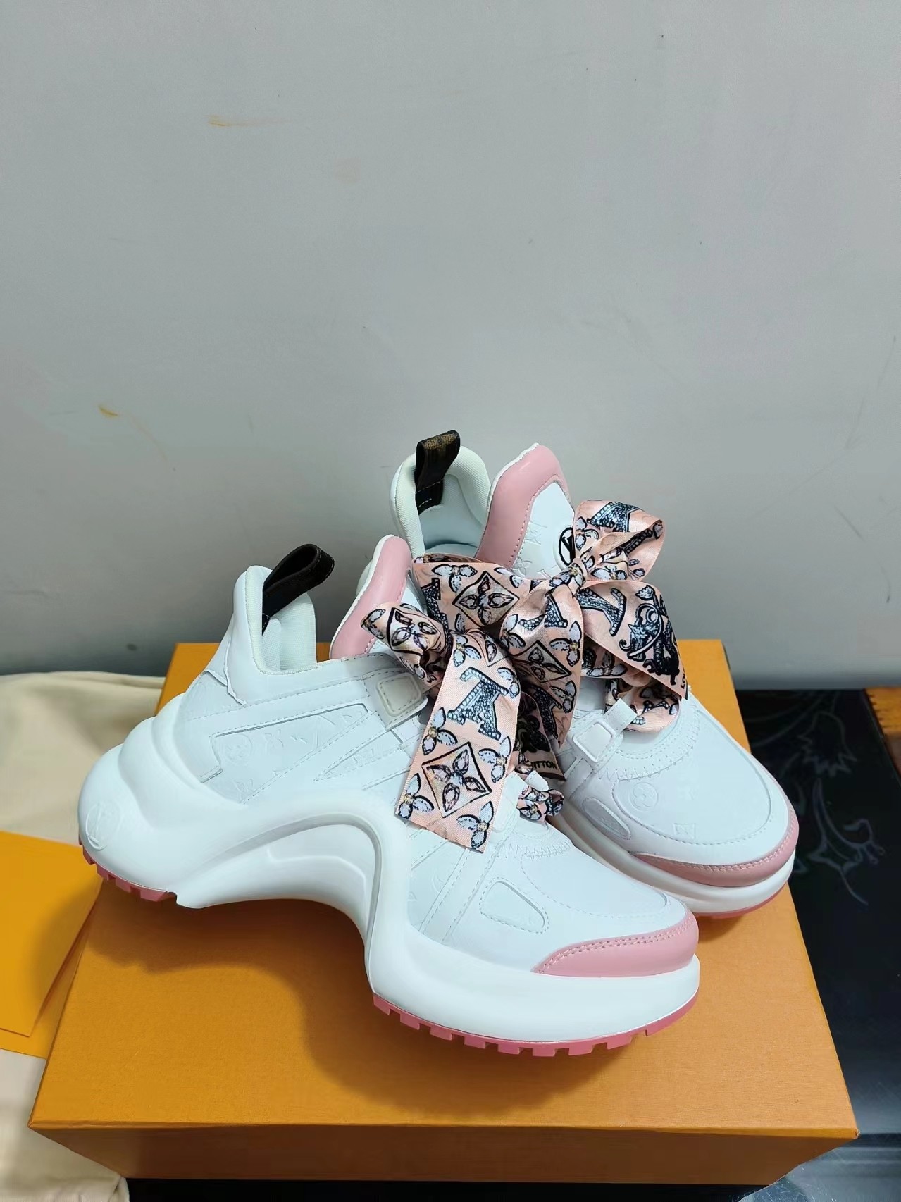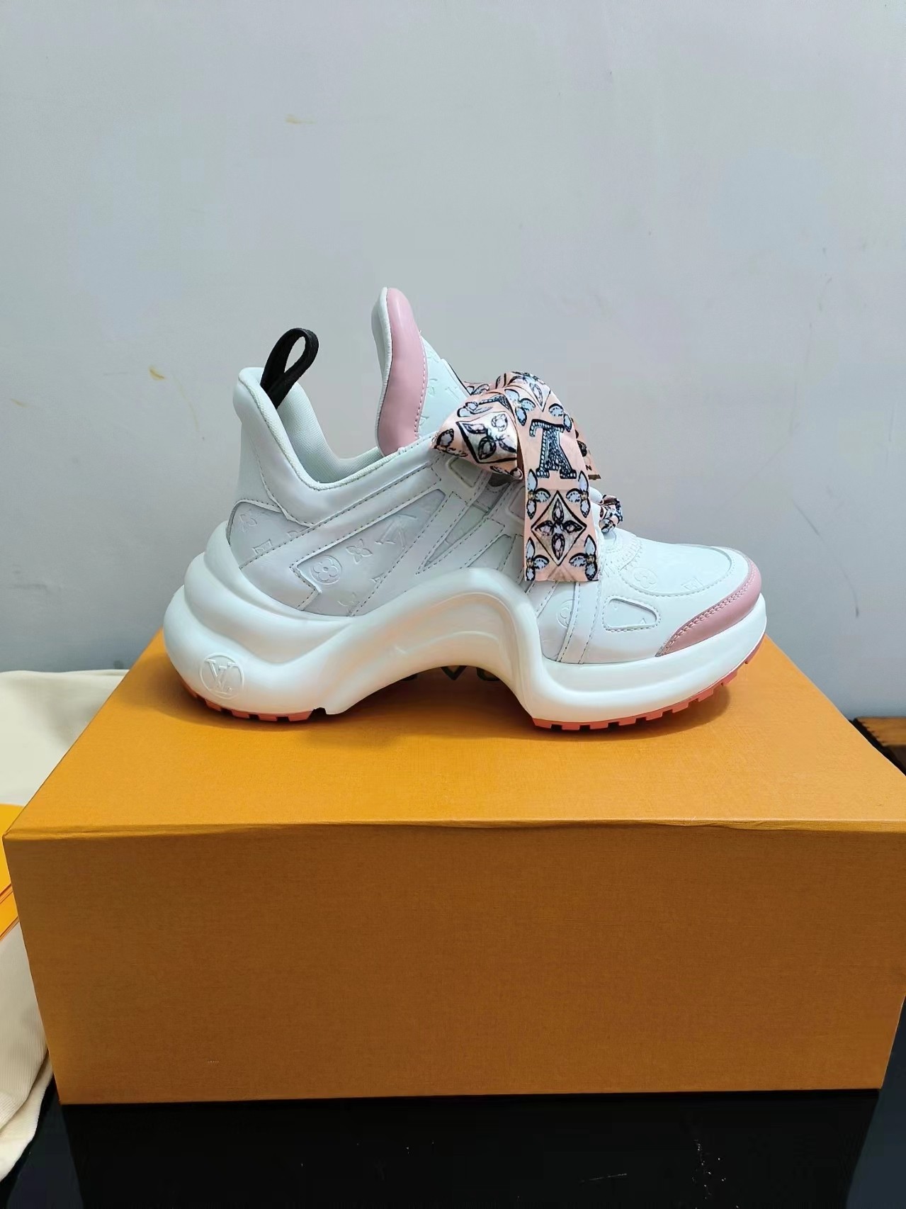 这款鞋子是AAAAA 1:1 质量 (非常棒). 使用了和原版一模一样的材料. 商标部分也保持了和路易威登/Louis Vuitton一样. 图片拍摄是实物鞋子拍摄, 您所收到的实物保证和我们图片一模一样.