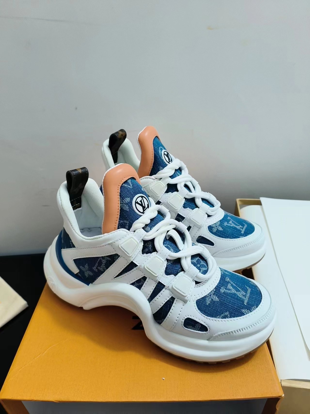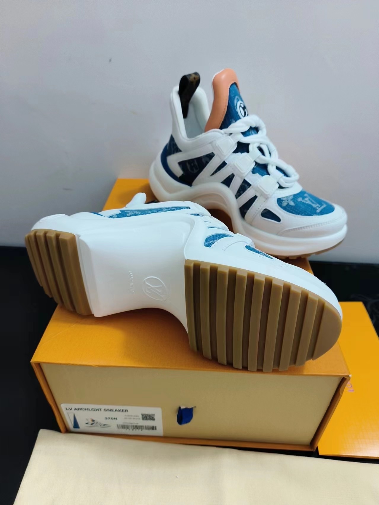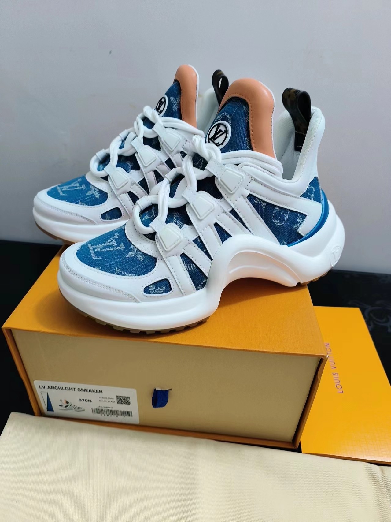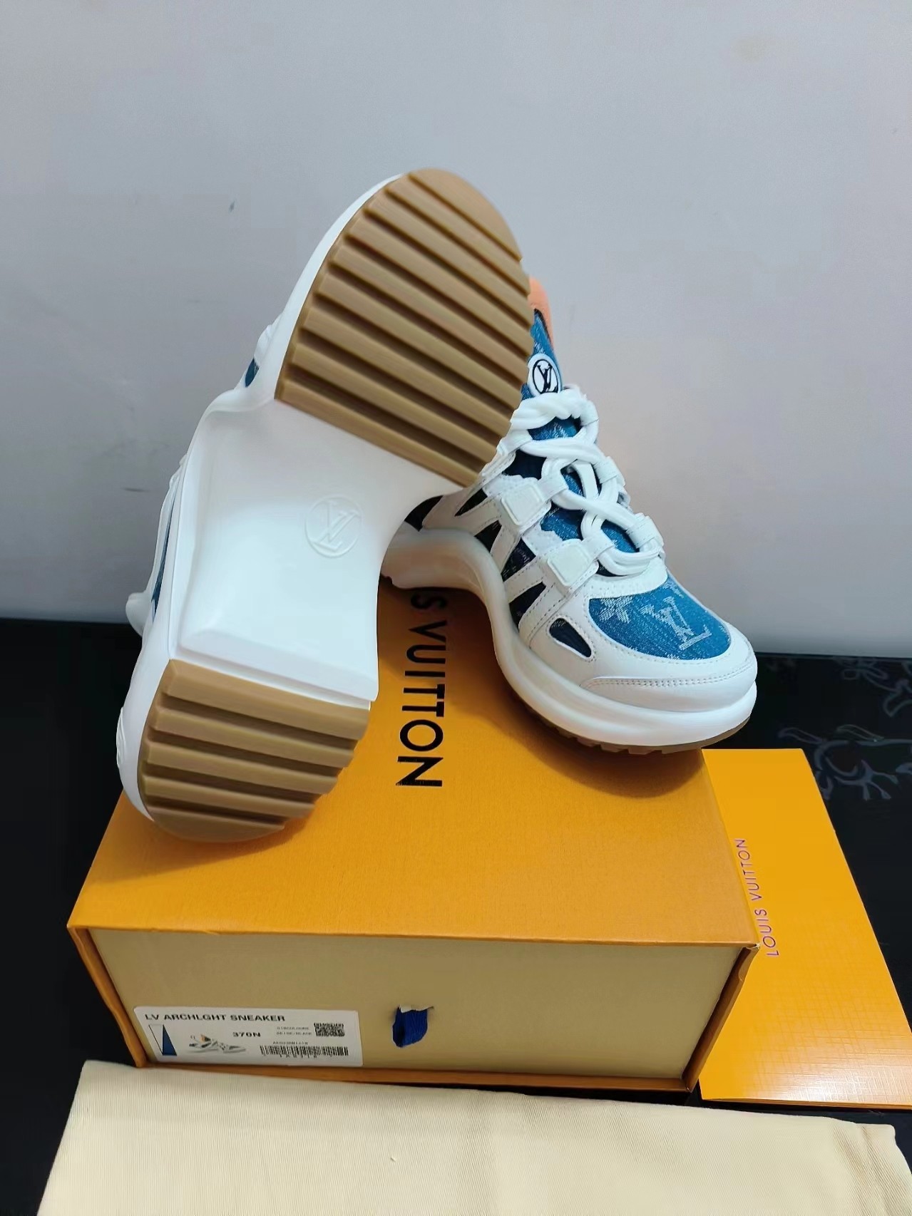 这款鞋子是AAAAA 1:1 质量 (非常棒). 使用了和原版一模一样的材料. 商标部分也保持了和路易威登/Louis Vuitton一样. 图片拍摄是实物鞋子拍摄, 您所收到的实物保证和我们图片一模一样.