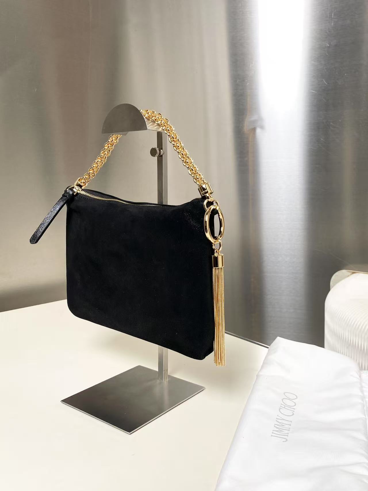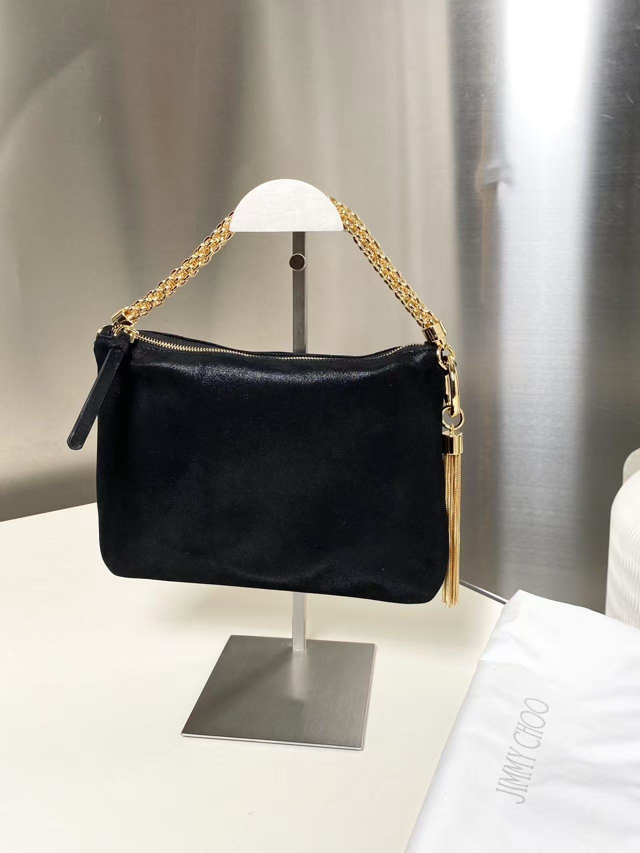 这款包包是AAAAA 1:1 质量 (非常棒). 使用了和原版一模一样的材料. 商标部分也保持了和吉米乔/JIMMY CHOO一样. 图片拍摄是实物包包拍摄, 您所收到的实物保证和我们图片一模一样.