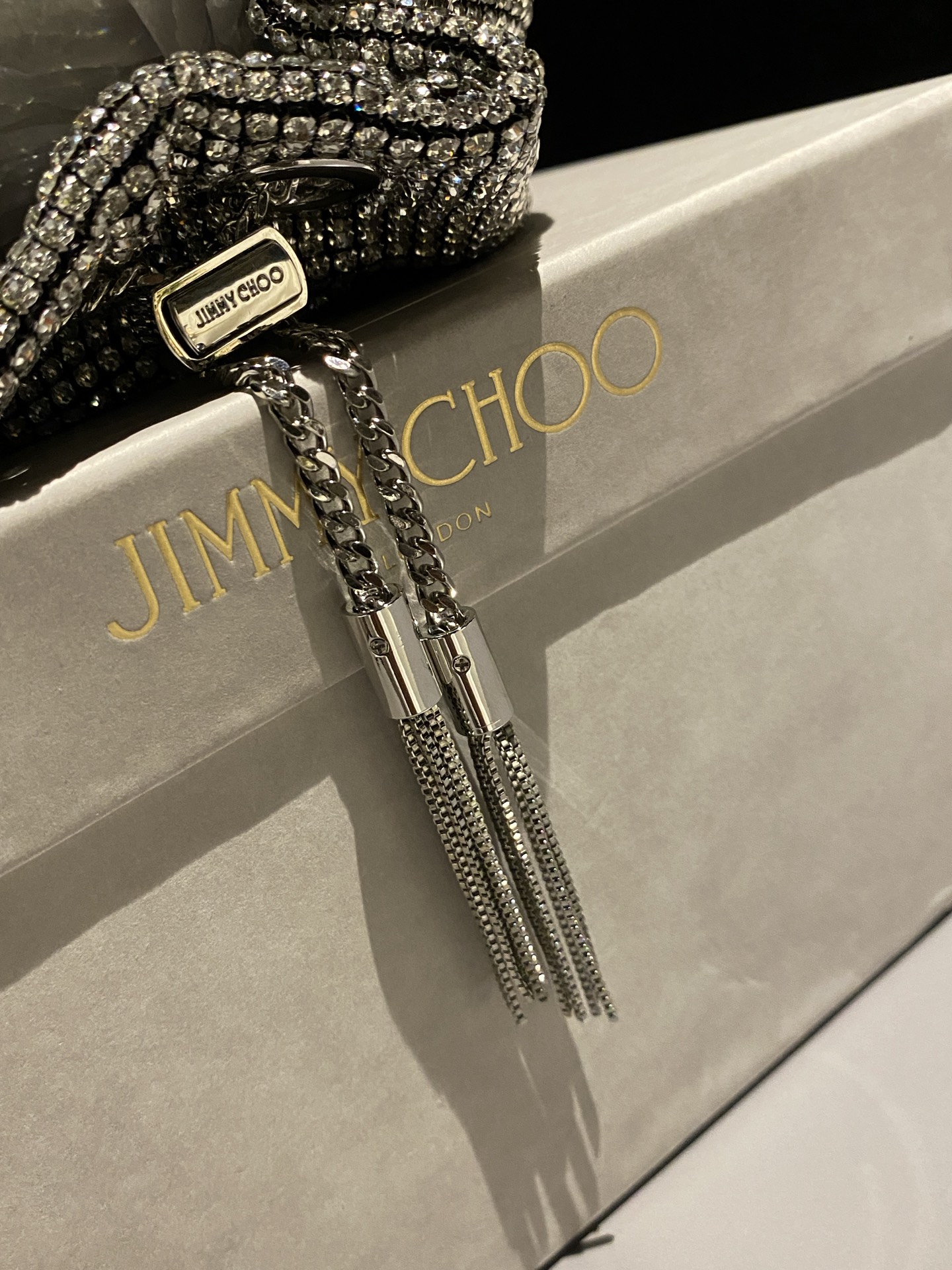 这款包包是AAAAA 1:1 质量 (非常棒). 使用了和原版一模一样的材料. 商标部分也保持了和吉米乔/JIMMY CHOO一样. 图片拍摄是实物包包拍摄, 您所收到的实物保证和我们图片一模一样.