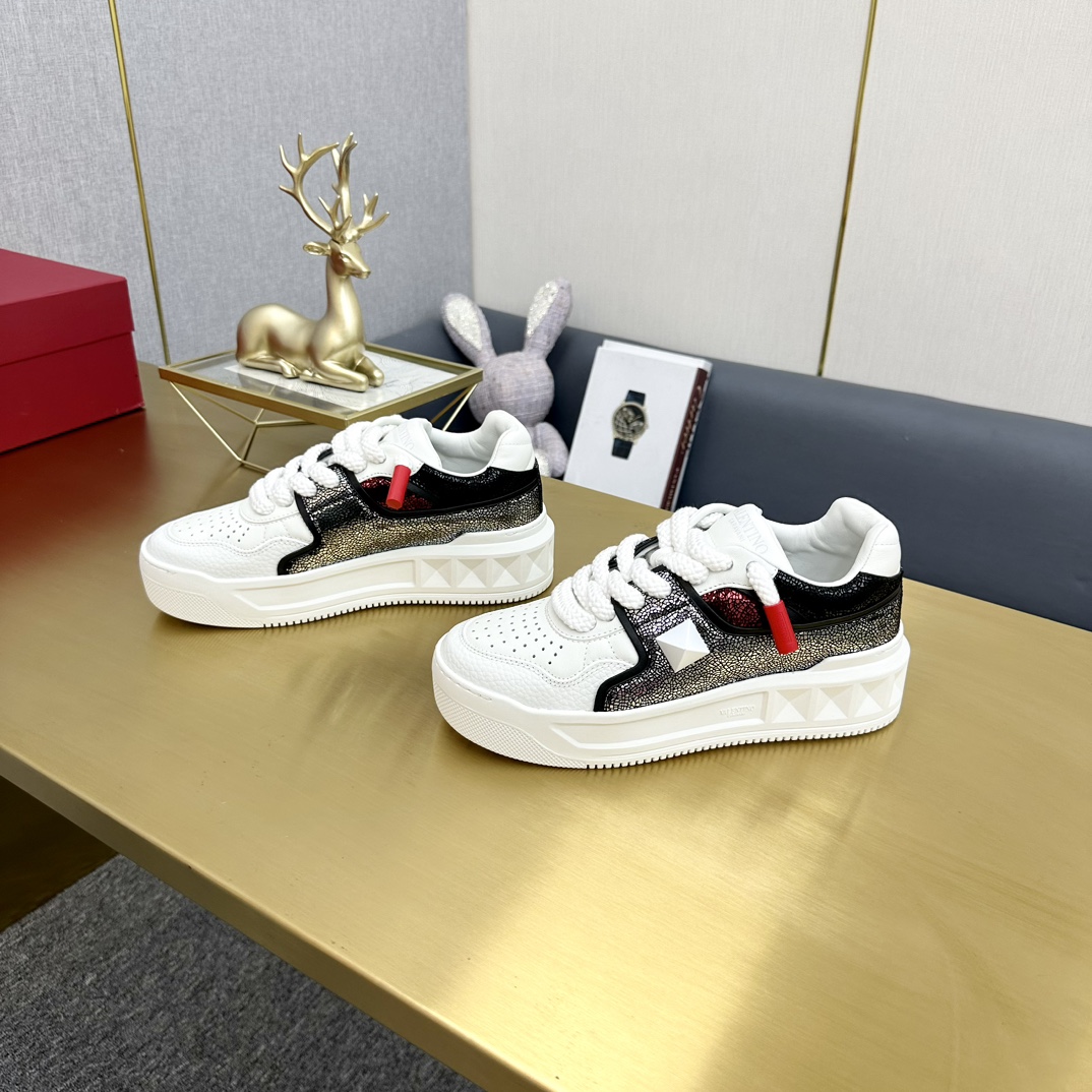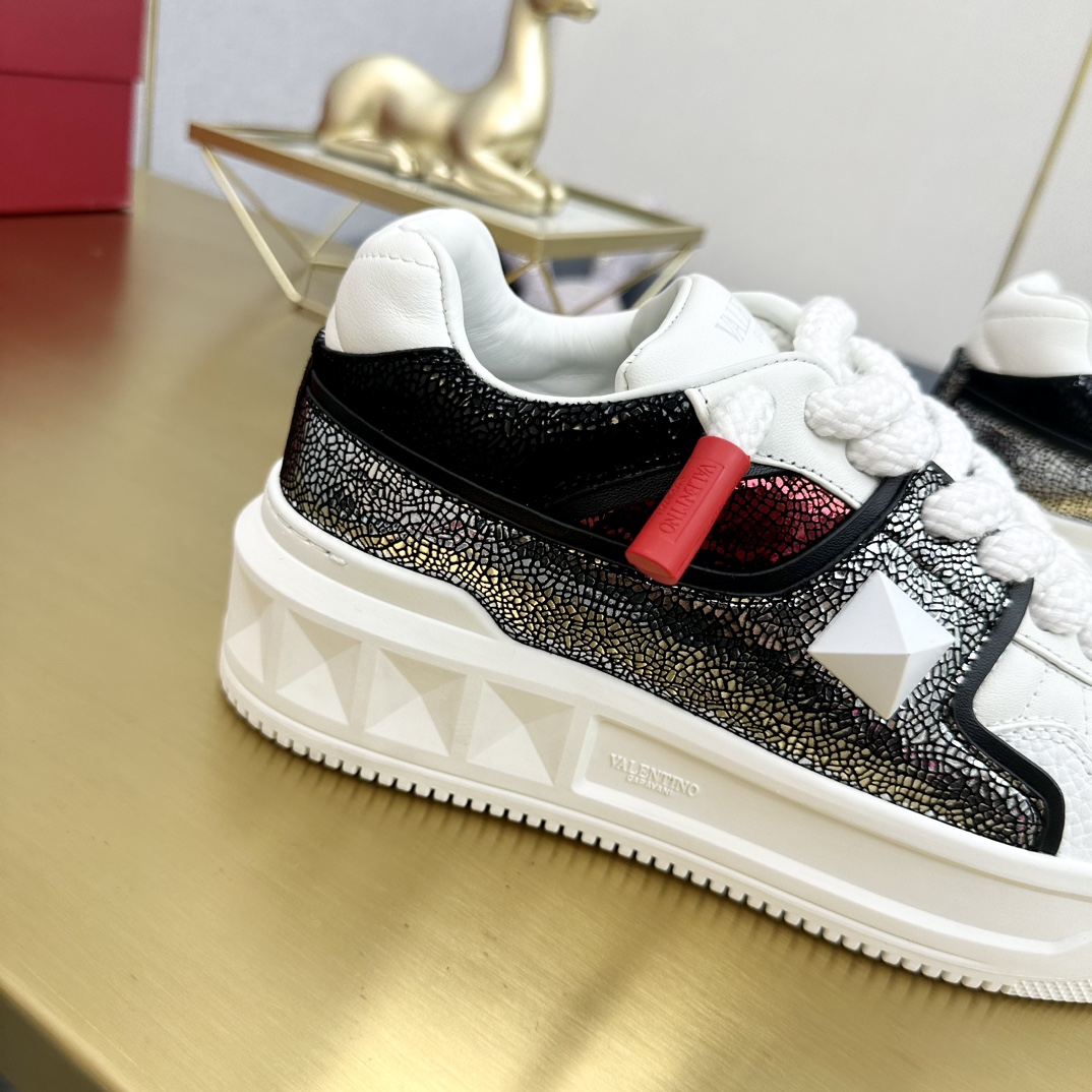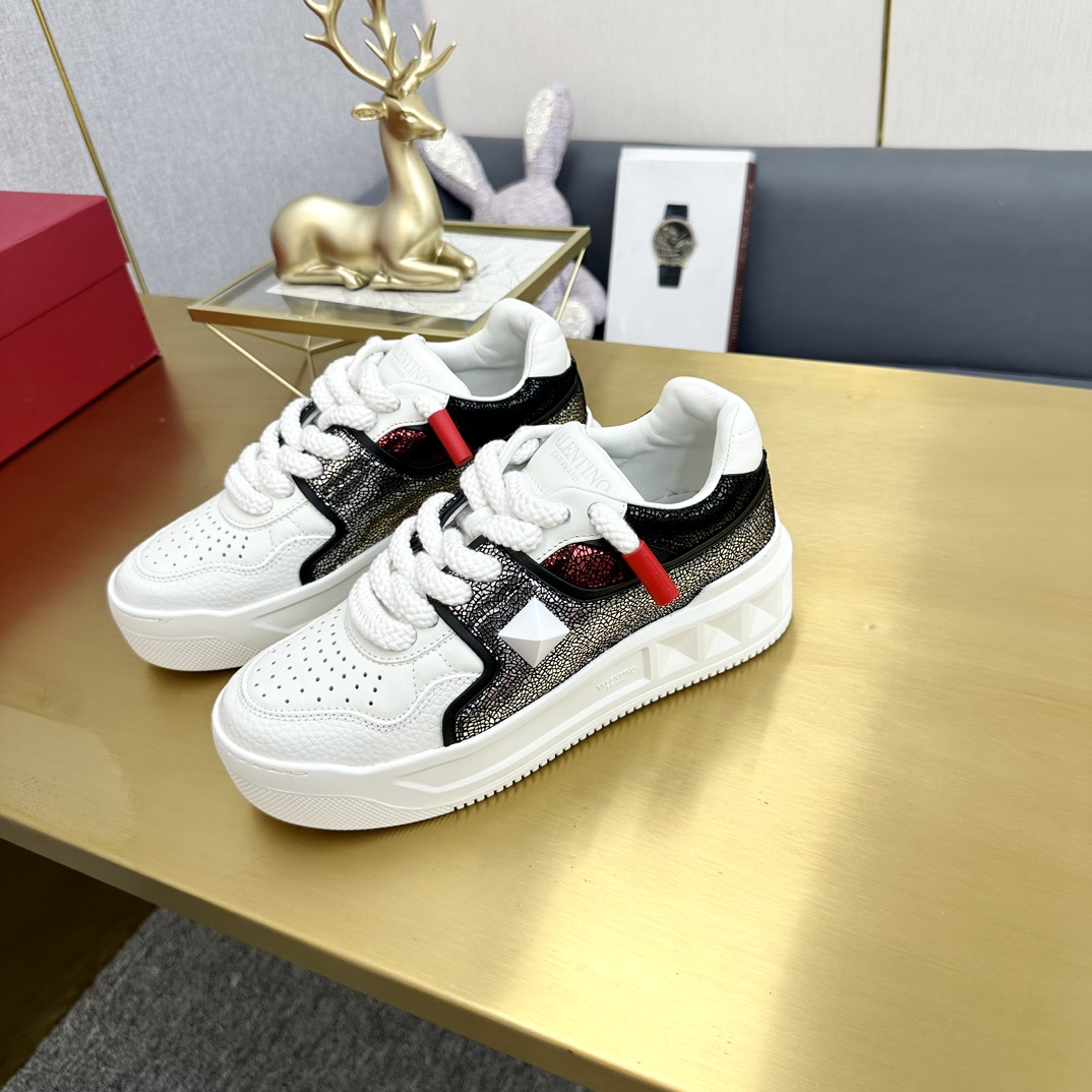 这款鞋子是AAAAA 1:1 质量 (非常棒). 使用了和原版一模一样的材料. 商标部分也保持了和华伦天奴/Valentino一样. 图片拍摄是实物鞋子拍摄, 您所收到的实物保证和我们图片一模一样.