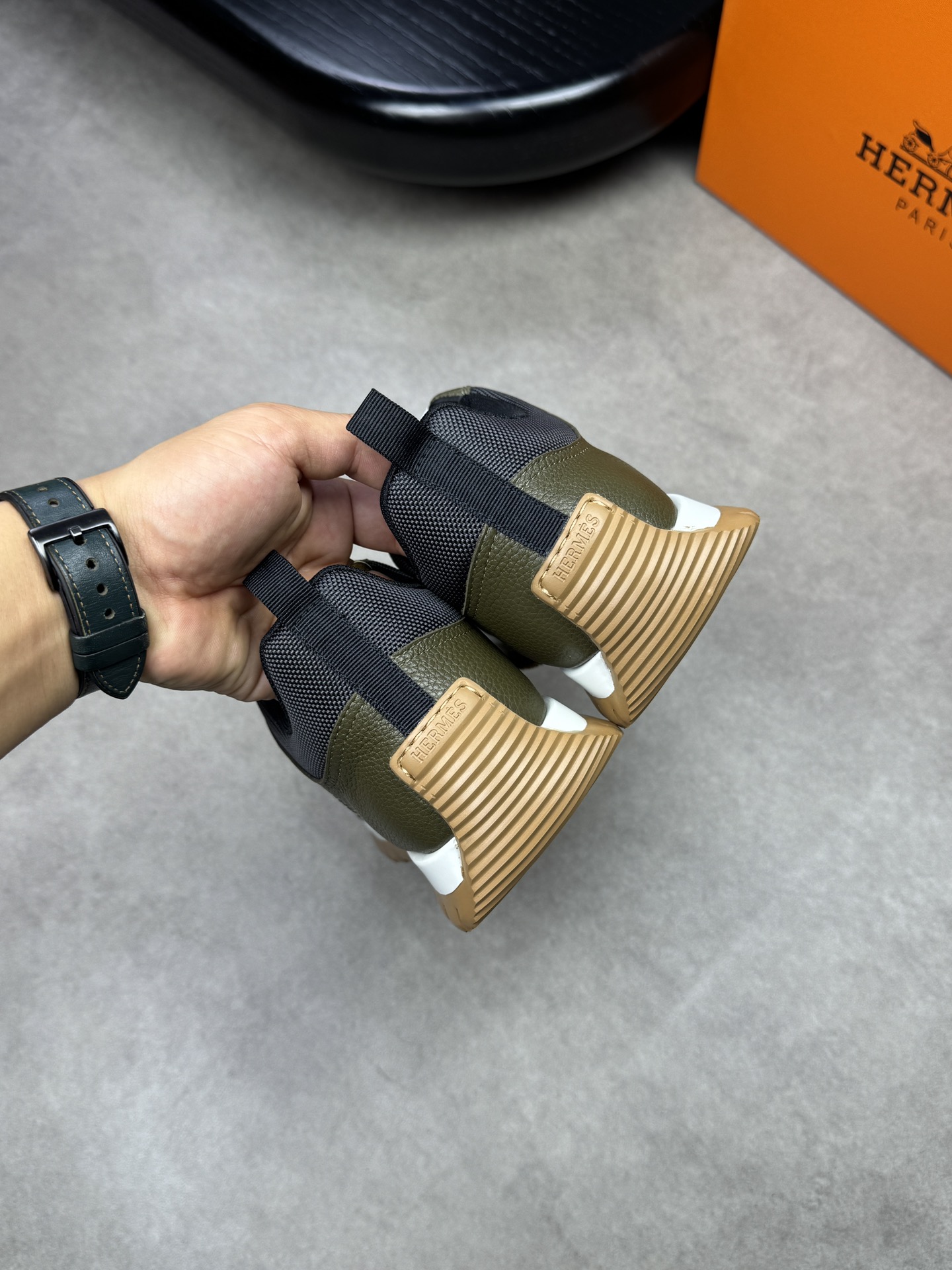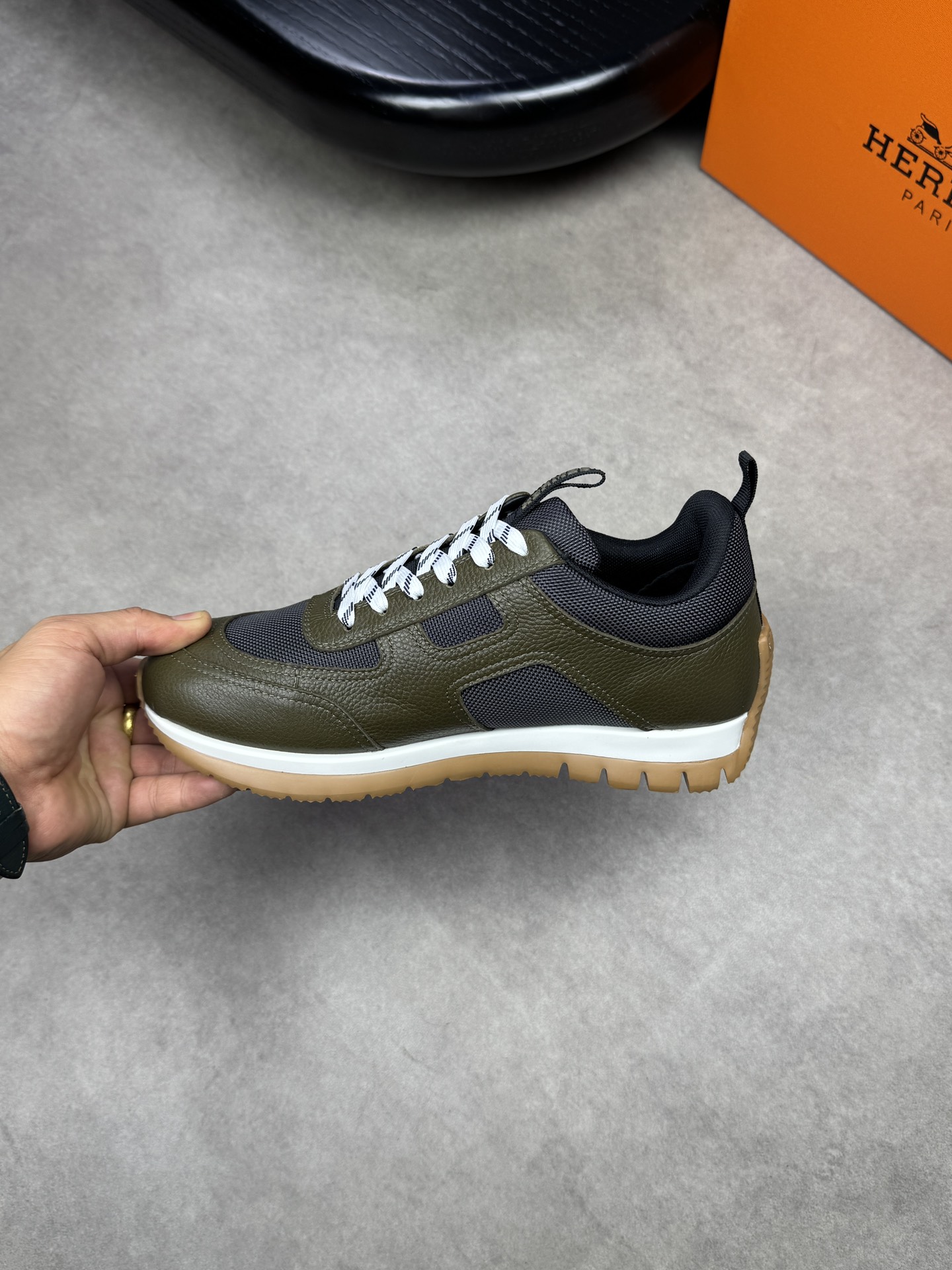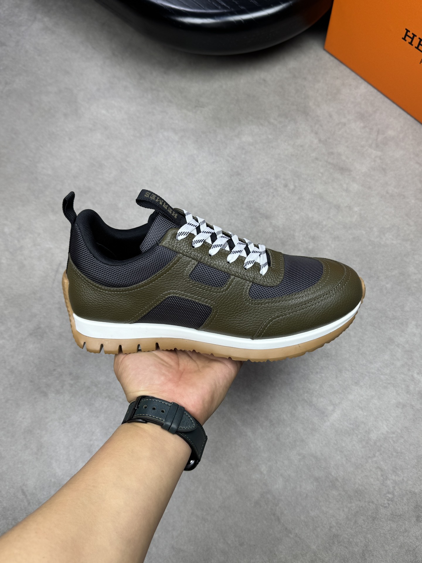 这款鞋子是AAAAA 1:1 质量 (非常棒). 使用了和原版一模一样的材料. 商标部分也保持了和爱马仕/Hermes一样. 图片拍摄是实物鞋子拍摄, 您所收到的实物保证和我们图片一模一样.
