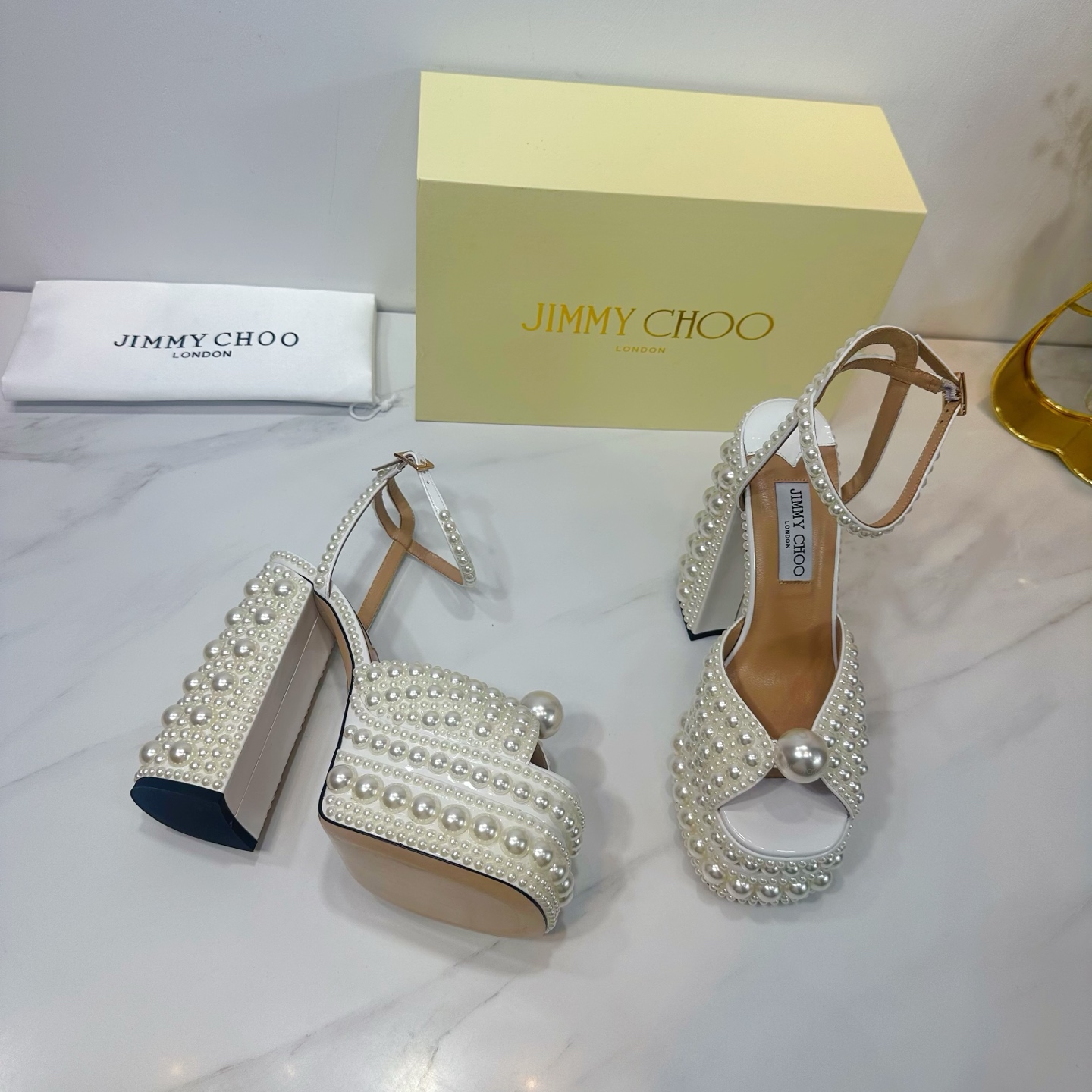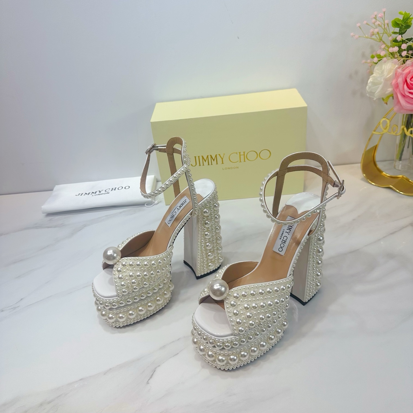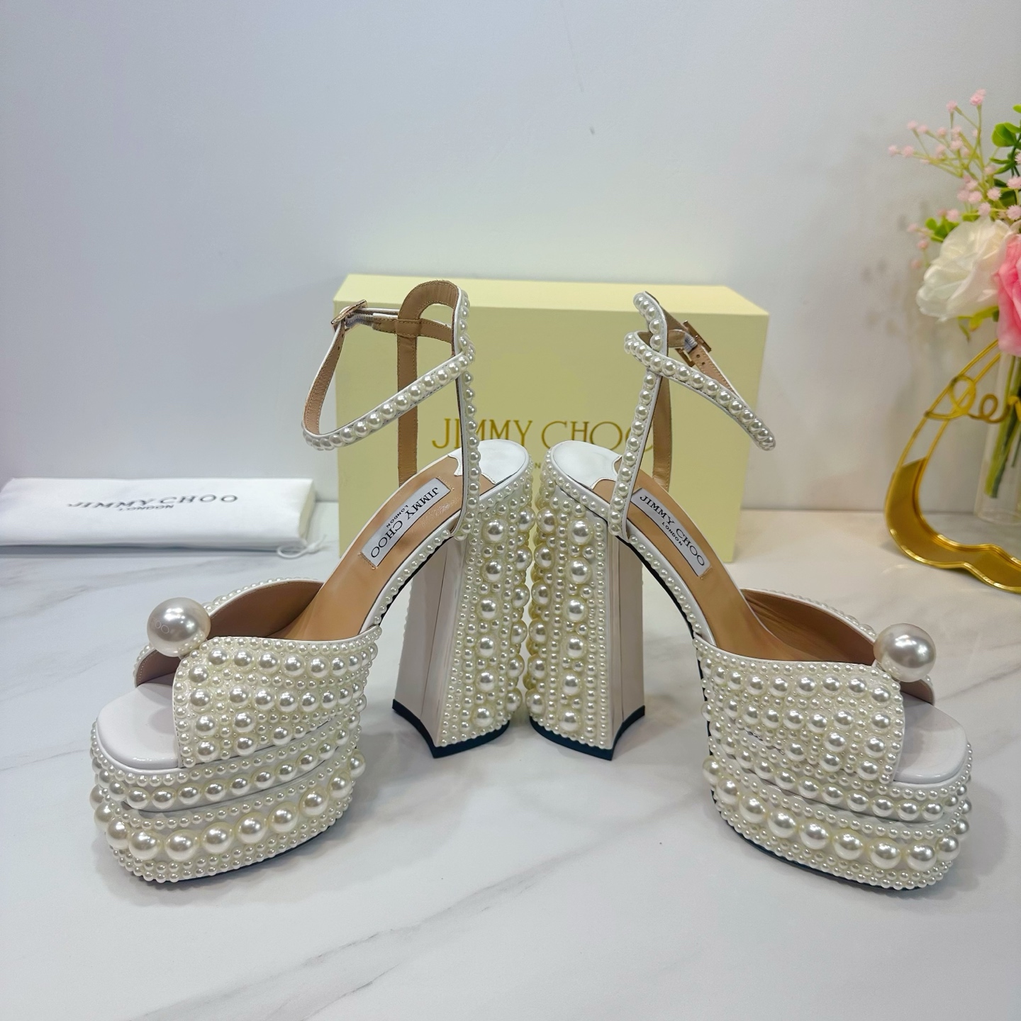 这款鞋子是AAAAA 1:1 质量 (非常棒). 使用了和原版一模一样的材料. 商标部分也保持了和吉米乔/JIMMY CHOO一样. 图片拍摄是实物鞋子拍摄, 您所收到的实物保证和我们图片一模一样.