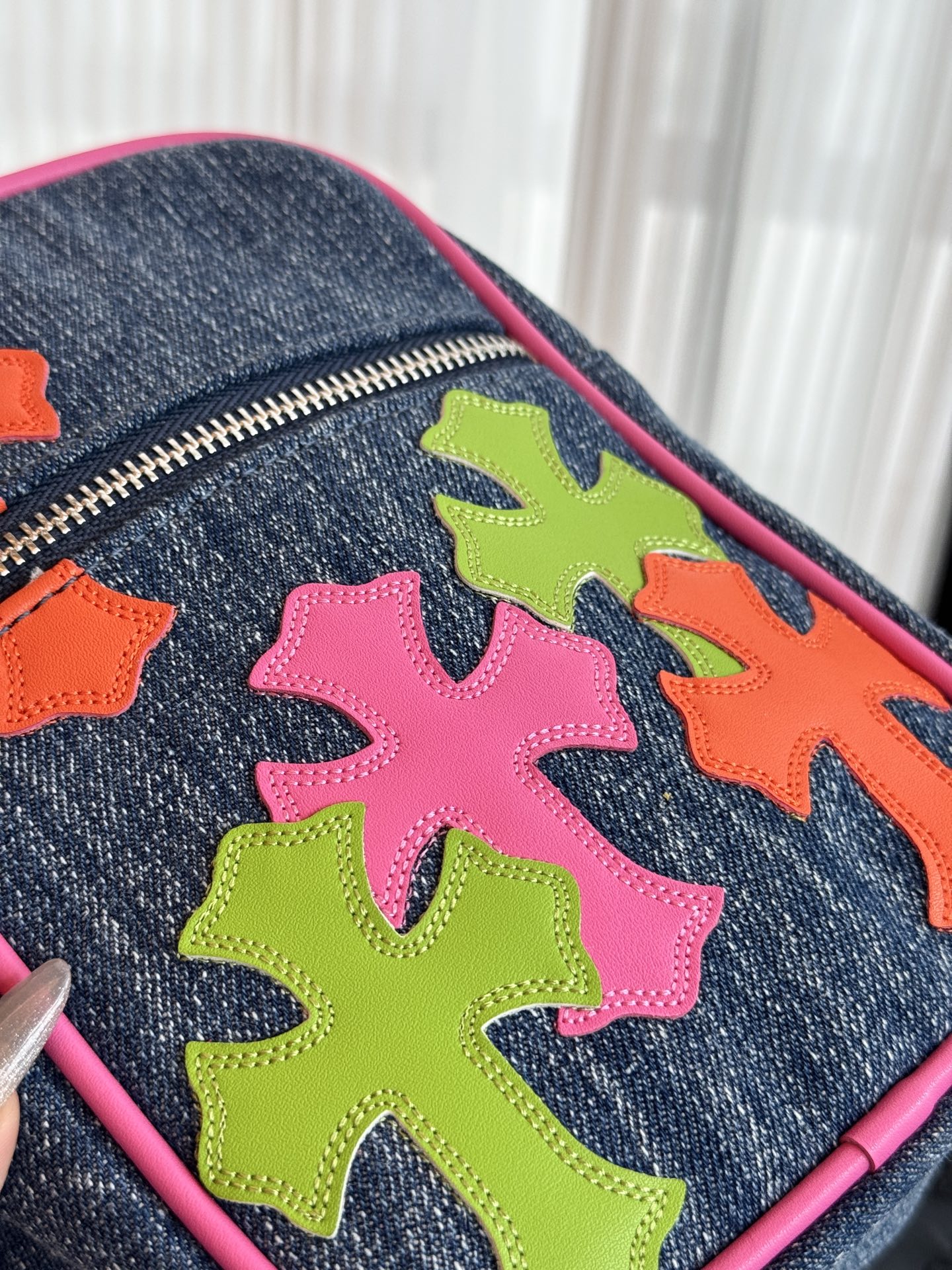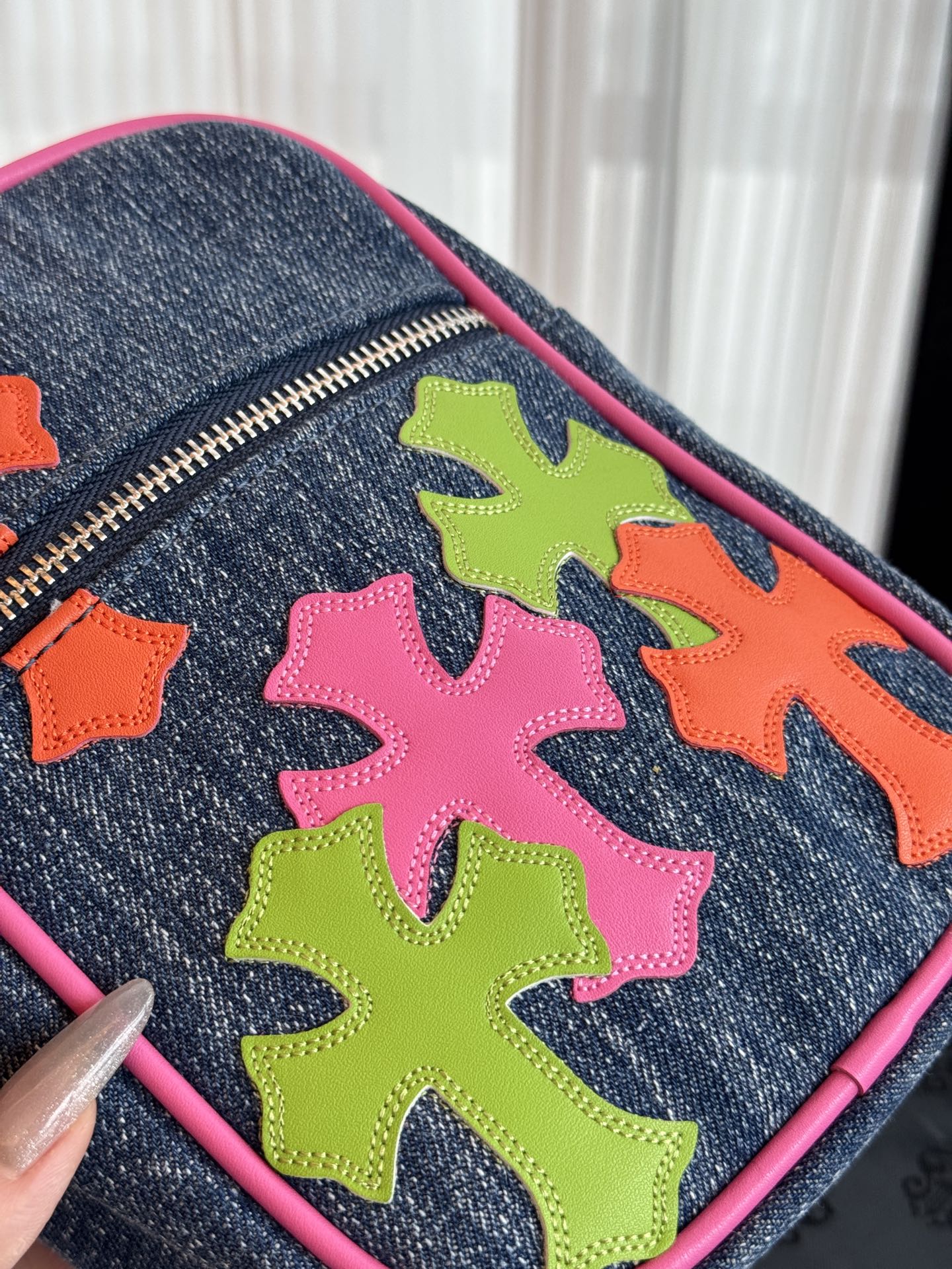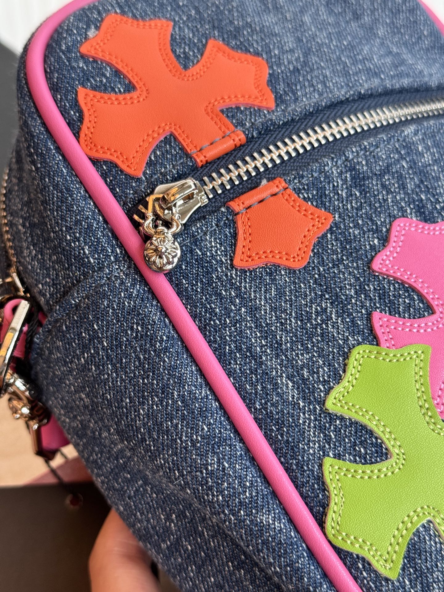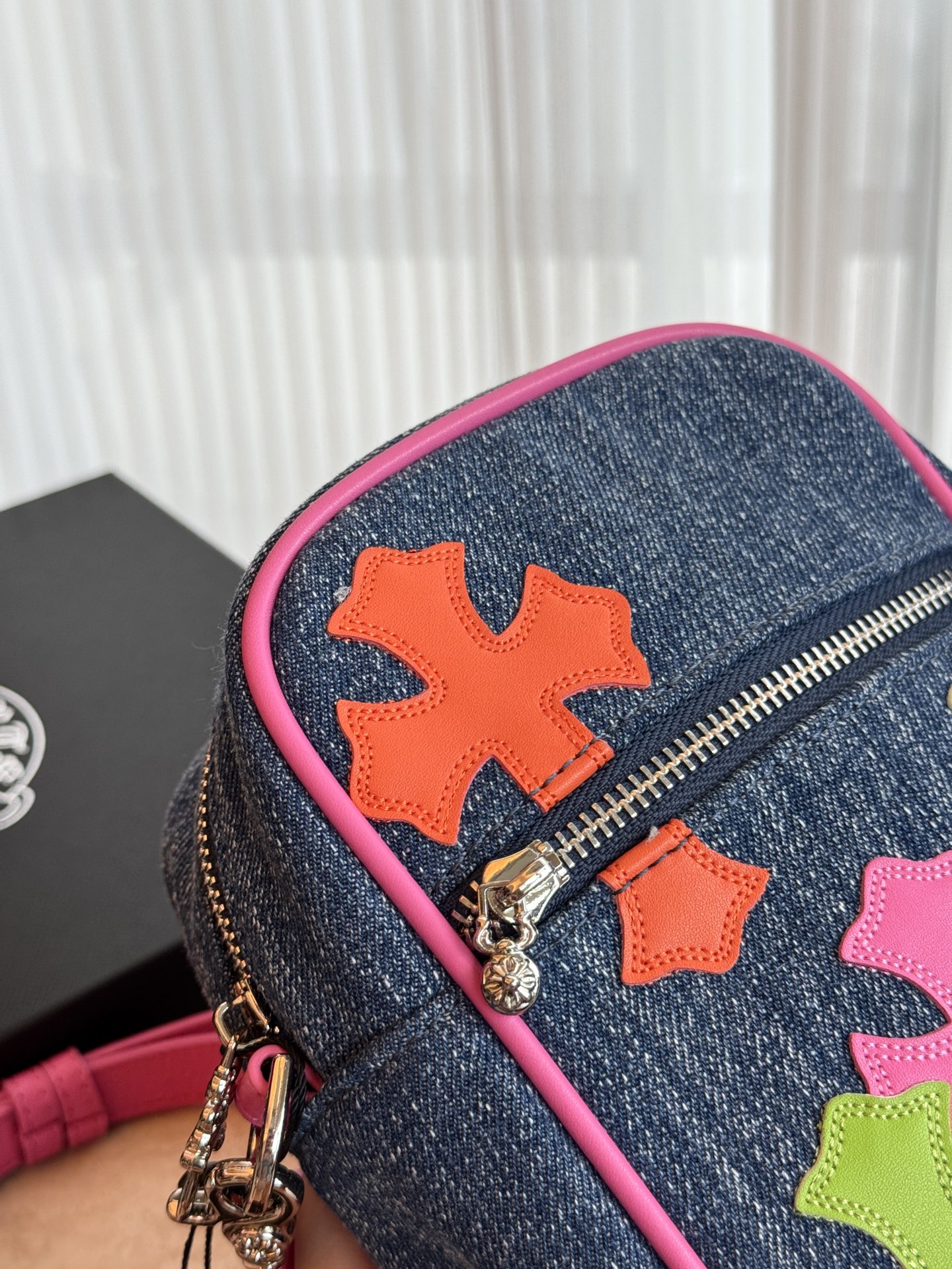 这款包包是AAAAA 1:1 质量 (非常棒). 使用了和原版一模一样的材料. 商标部分也保持了和克罗心/Chrome Hearts一样. 图片拍摄是实物包包拍摄, 您所收到的实物保证和我们图片一模一样.