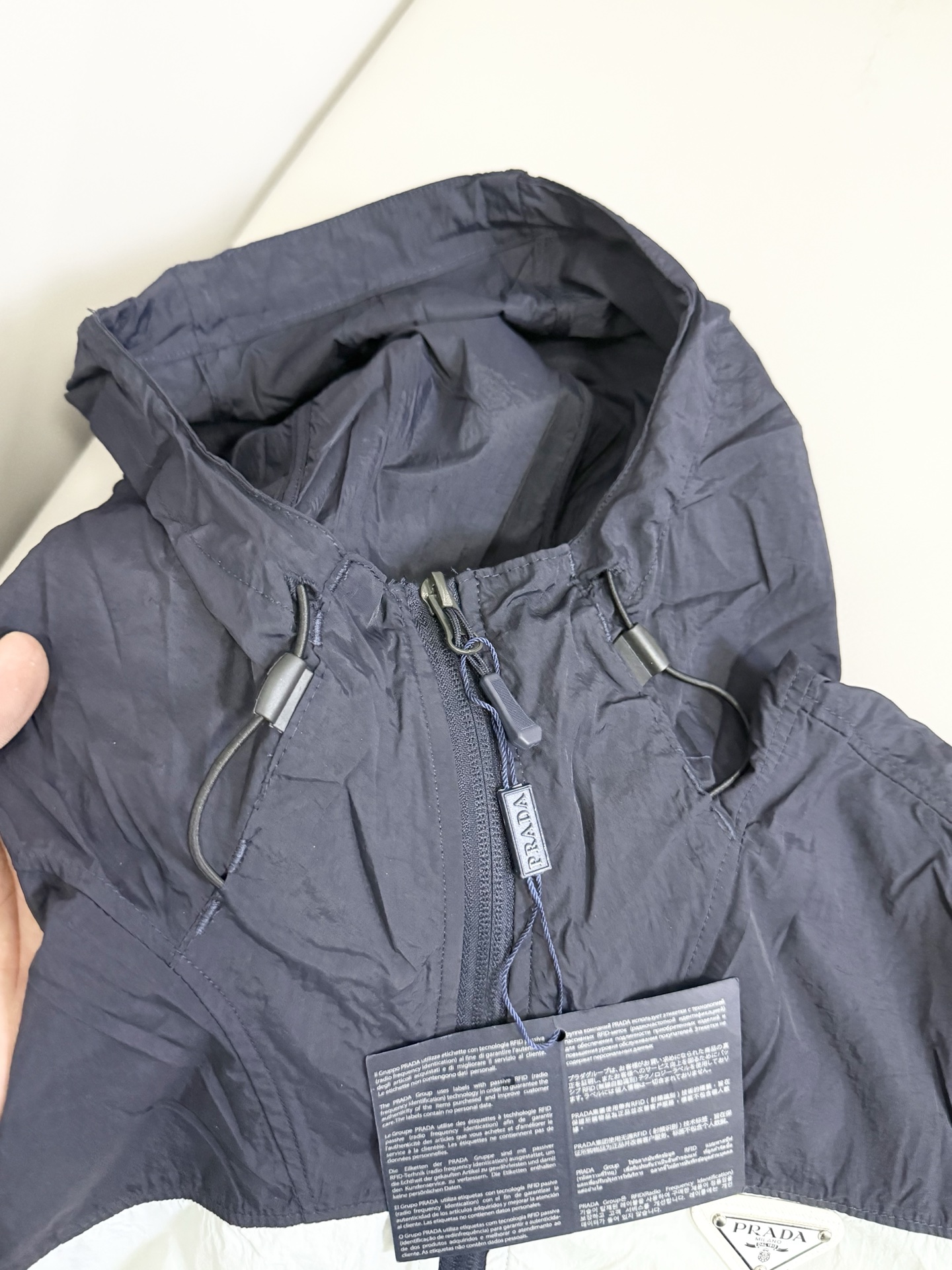 这款衣服是AAAAA 1:1 质量 (非常棒). 使用了和原版一模一样的材料. 商标部分也保持了和普拉达/Prada一样. 图片拍摄是实物衣服拍摄, 您所收到的实物保证和我们图片一模一样.