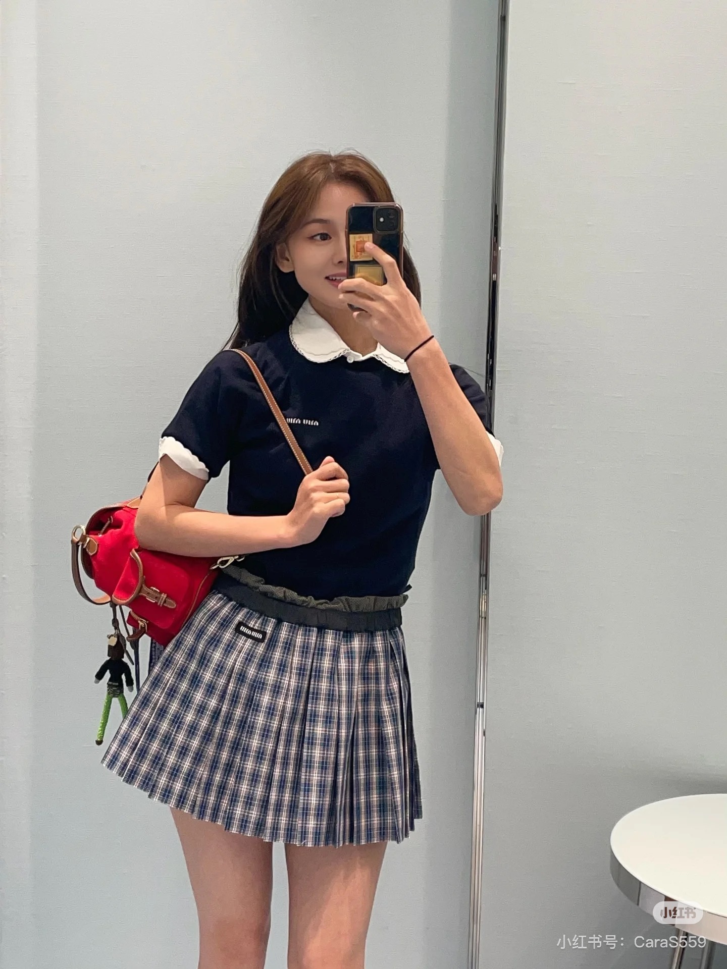这款衣服是AAAAA 1:1 质量 (非常棒). 使用了和原版一模一样的材料. 商标部分也保持了和缪缪/Miu Miu一样. 图片拍摄是实物衣服拍摄, 您所收到的实物保证和我们图片一模一样.