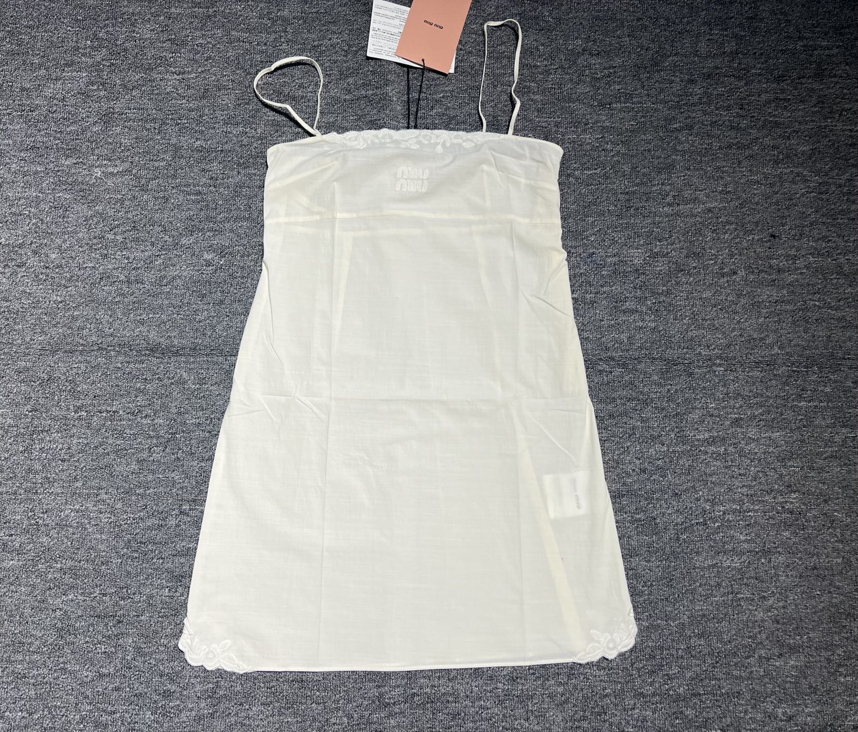 这款衣服是AAAAA 1:1 质量 (非常棒). 使用了和原版一模一样的材料. 商标部分也保持了和缪缪/Miu Miu一样. 图片拍摄是实物衣服拍摄, 您所收到的实物保证和我们图片一模一样.