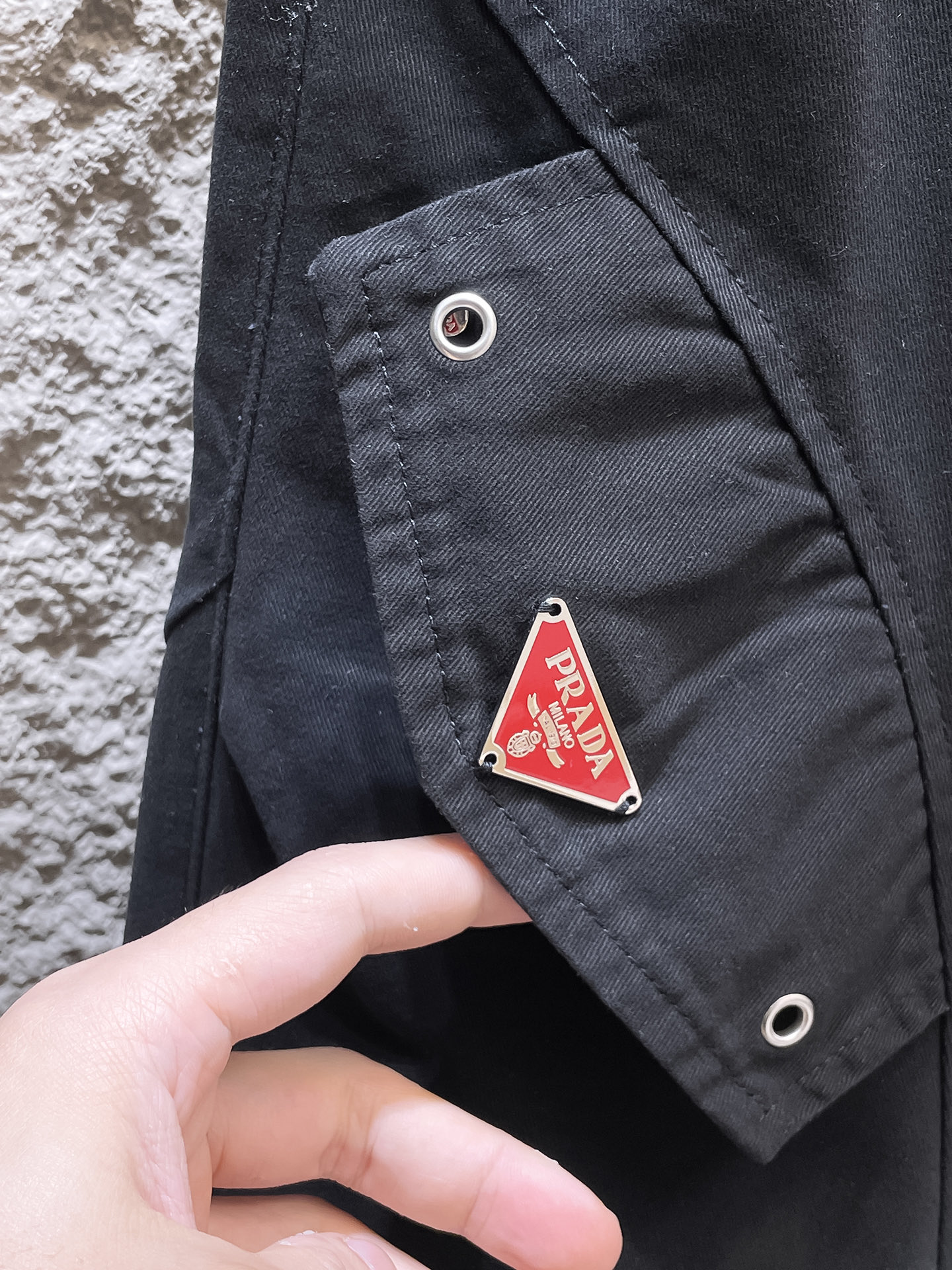 这款衣服是AAAAA 1:1 质量 (非常棒). 使用了和原版一模一样的材料. 商标部分也保持了和普拉达/Prada一样. 图片拍摄是实物衣服拍摄, 您所收到的实物保证和我们图片一模一样.