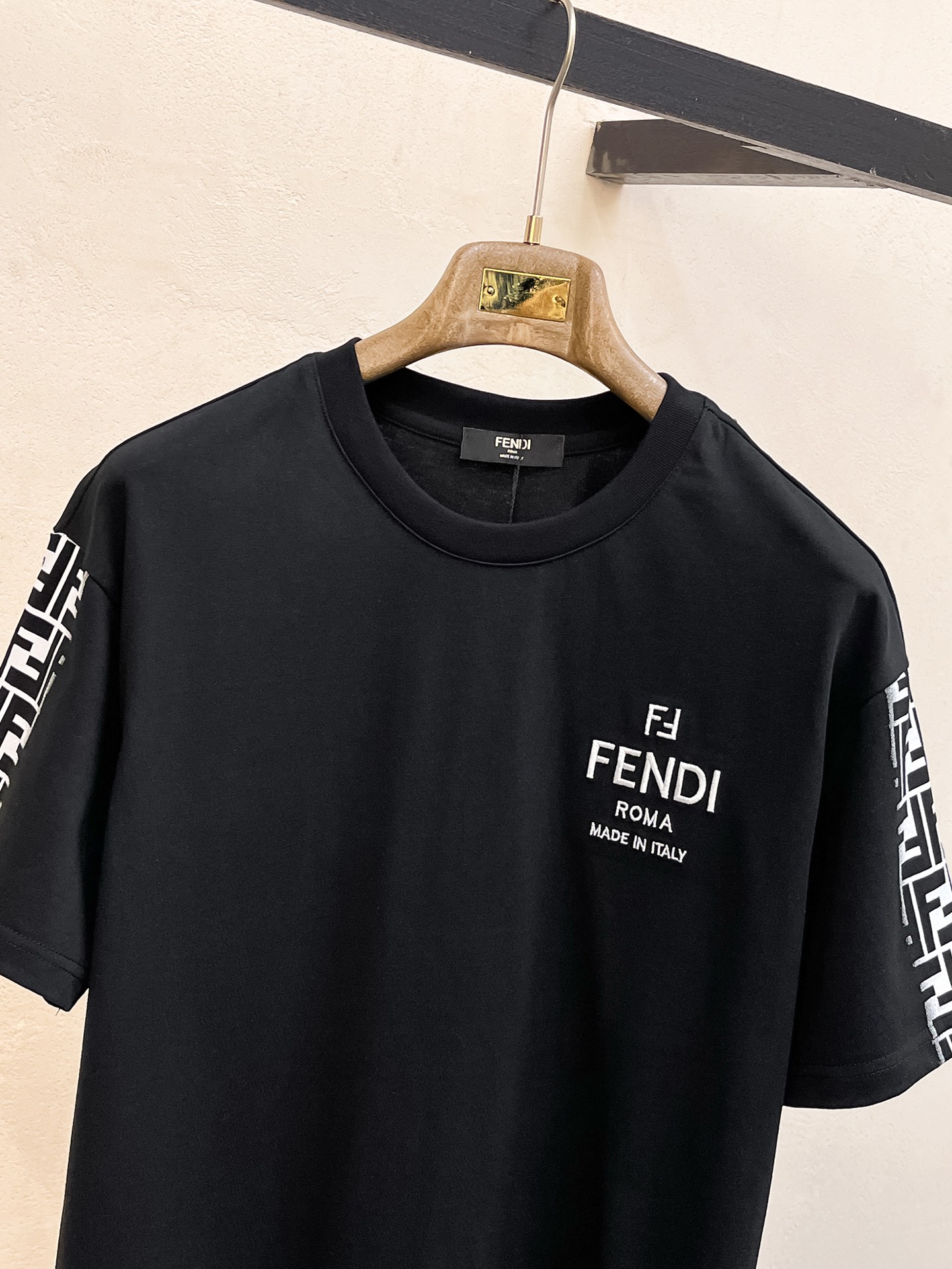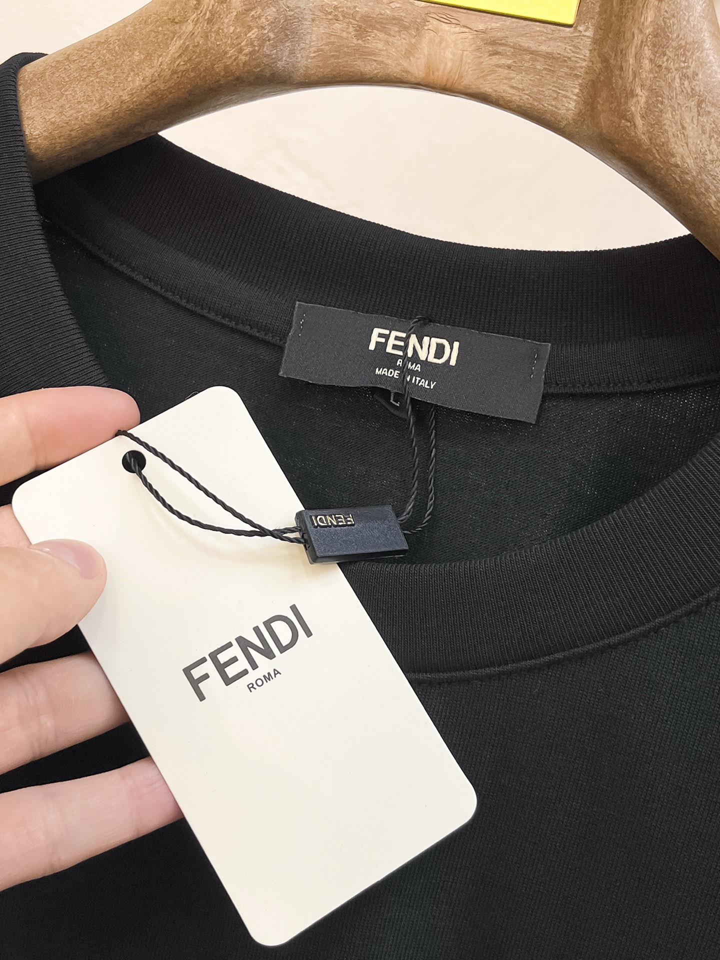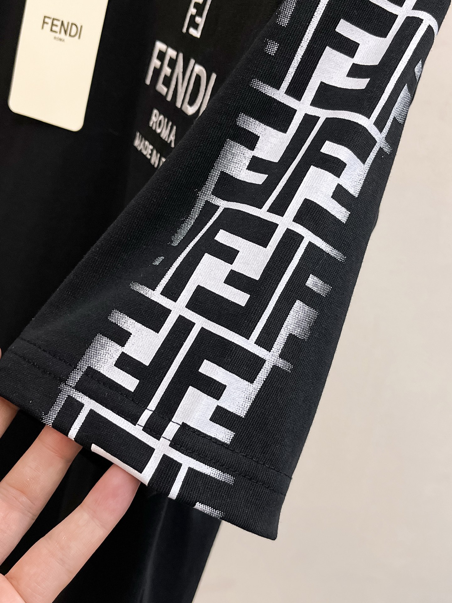这款衣服是AAAAA 1:1 质量 (非常棒). 使用了和原版一模一样的材料. 商标部分也保持了和芬迪/Fendi一样. 图片拍摄是实物衣服拍摄, 您所收到的实物保证和我们图片一模一样.