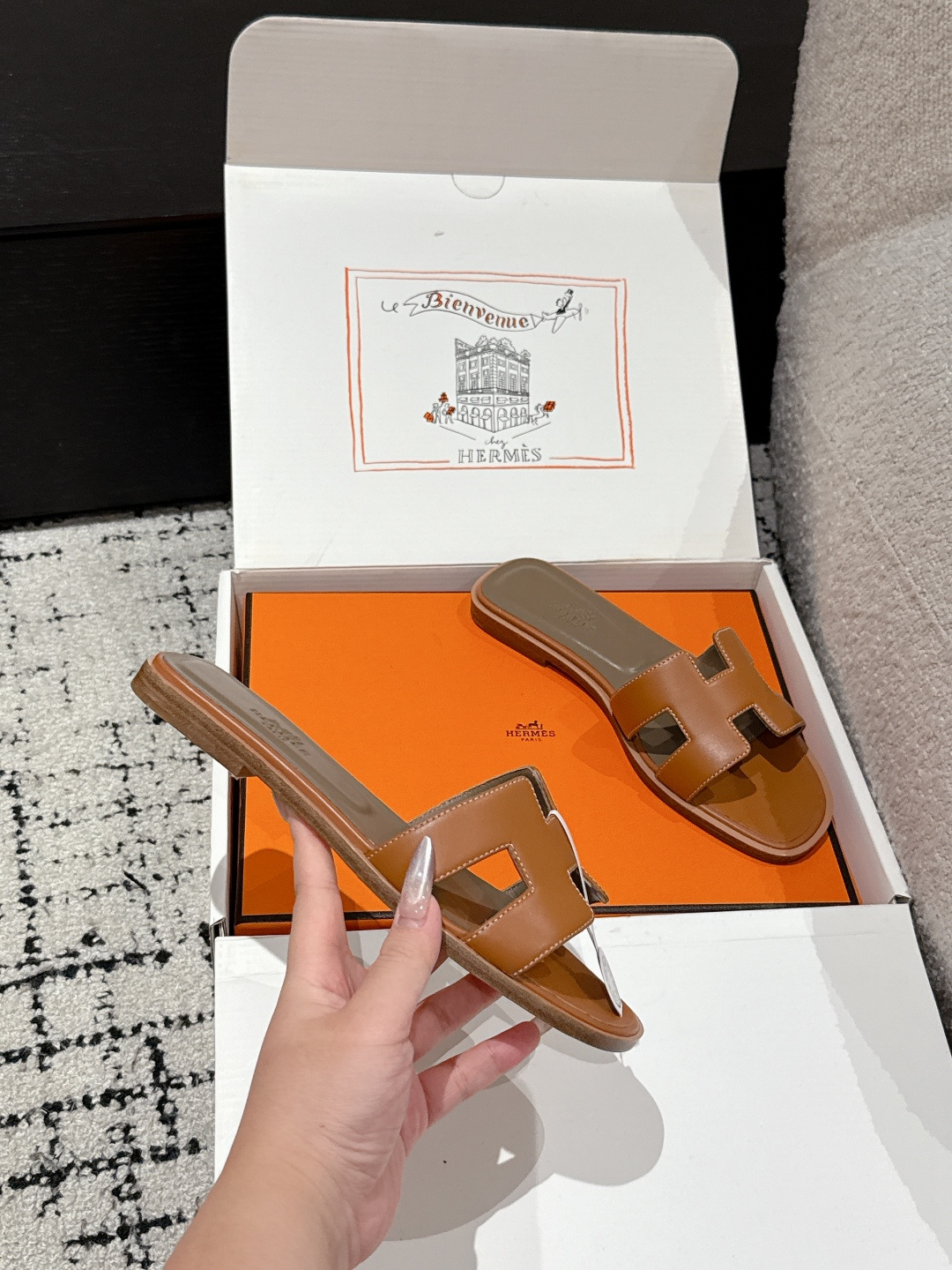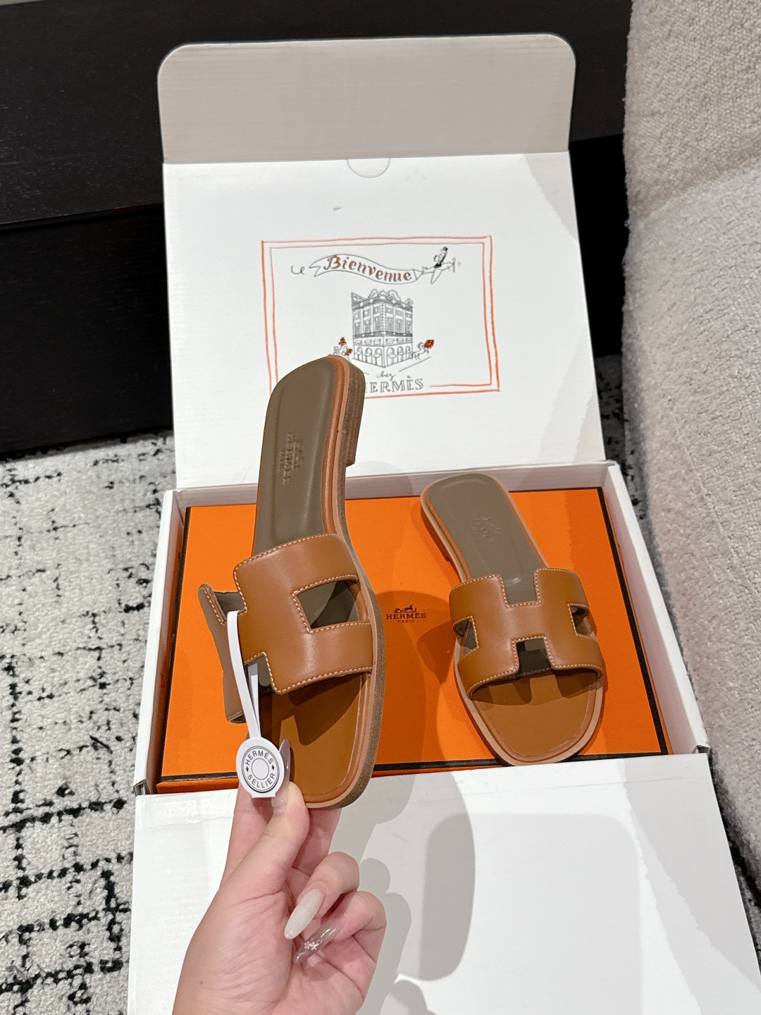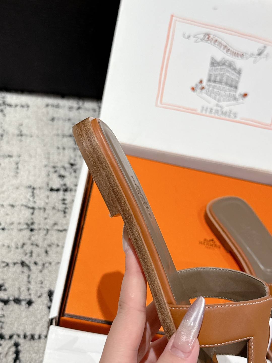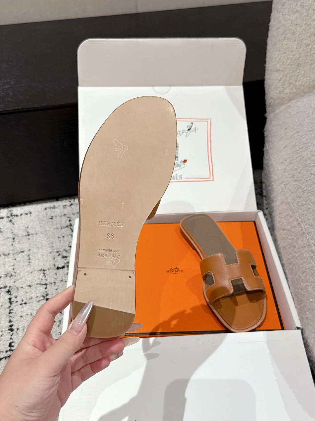 这款鞋子是AAAAA 1:1 质量 (非常棒). 使用了和原版一模一样的材料. 商标部分也保持了和爱马仕/Hermes一样. 图片拍摄是实物鞋子拍摄, 您所收到的实物保证和我们图片一模一样.