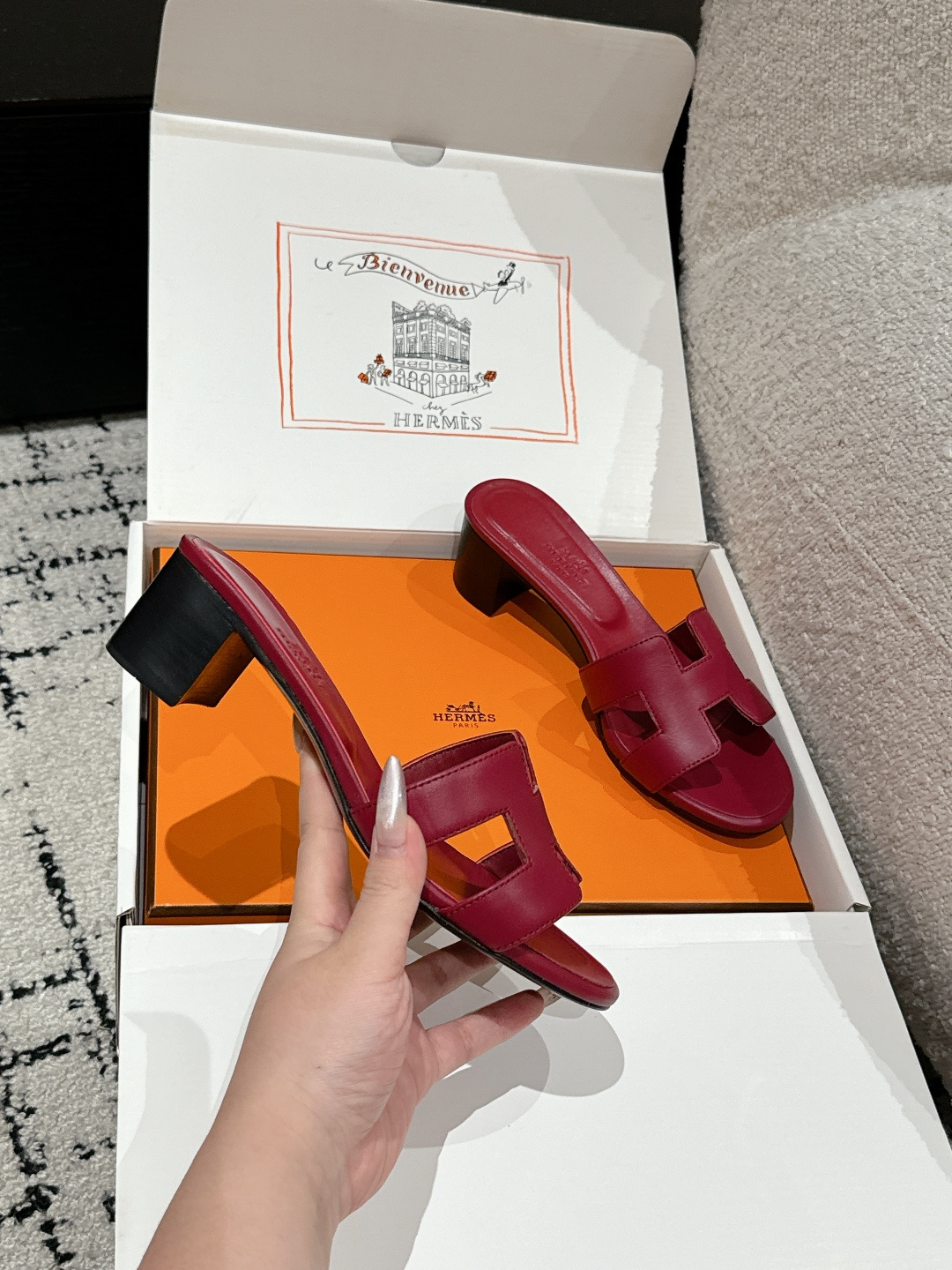 这款鞋子是AAAAA 1:1 质量 (非常棒). 使用了和原版一模一样的材料. 商标部分也保持了和爱马仕/Hermes一样. 图片拍摄是实物鞋子拍摄, 您所收到的实物保证和我们图片一模一样.