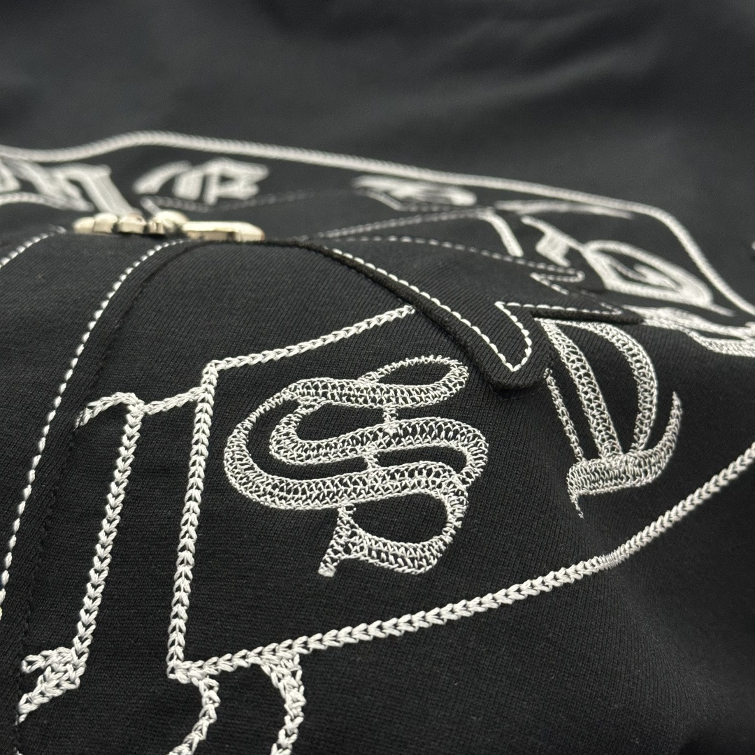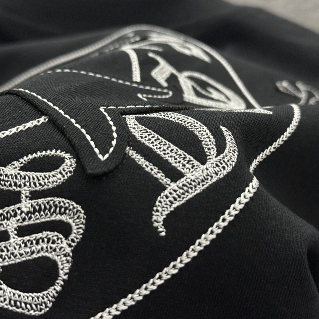 这款衣服是AAAAA 1:1 质量 (非常棒). 使用了和原版一模一样的材料. 商标部分也保持了和克罗心/Chrome Hearts一样. 图片拍摄是实物衣服拍摄, 您所收到的实物保证和我们图片一模一样.