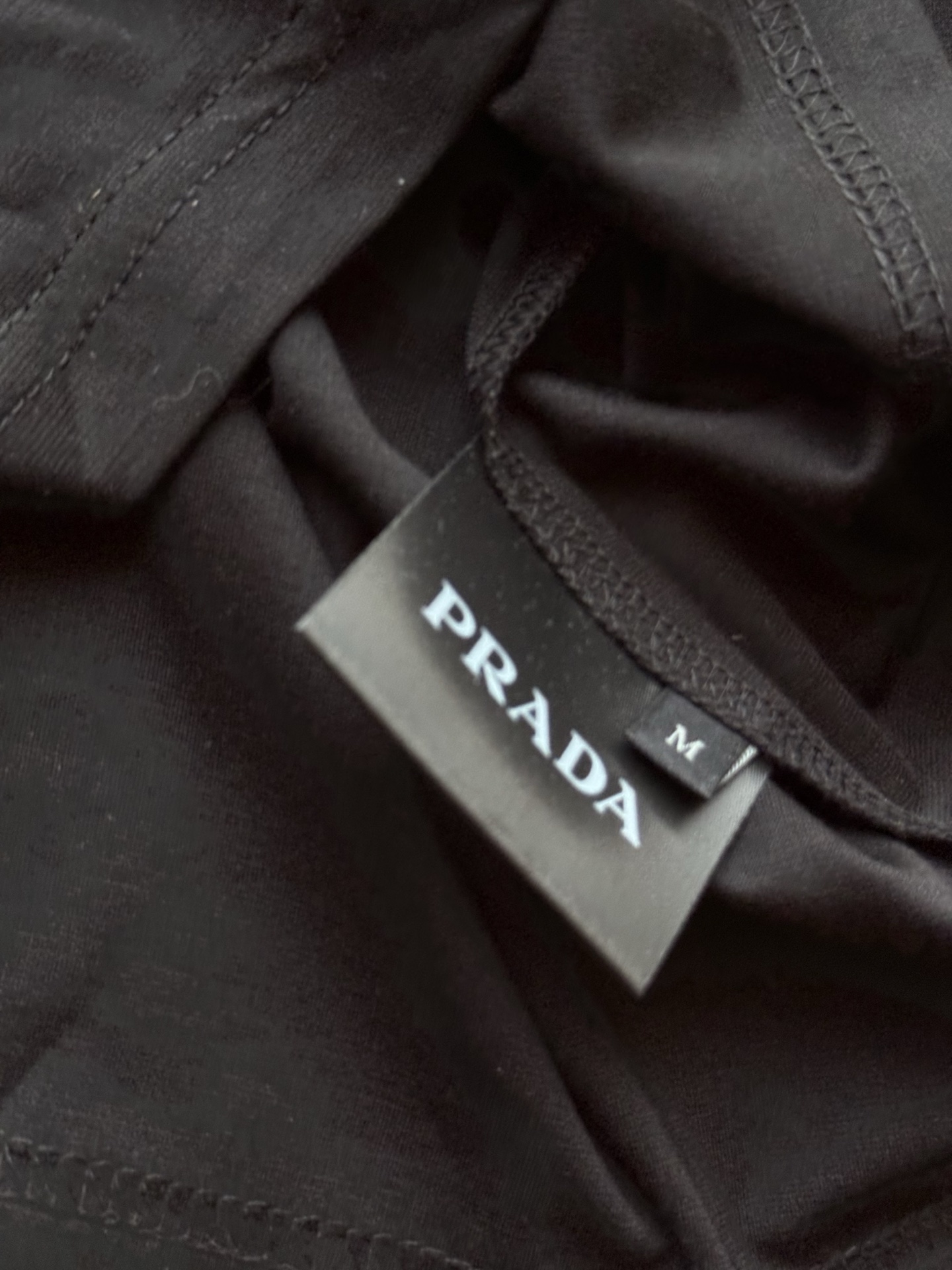 这款衣服是AAAAA 1:1 质量 (非常棒). 使用了和原版一模一样的材料. 商标部分也保持了和普拉达/Prada一样. 图片拍摄是实物衣服拍摄, 您所收到的实物保证和我们图片一模一样.