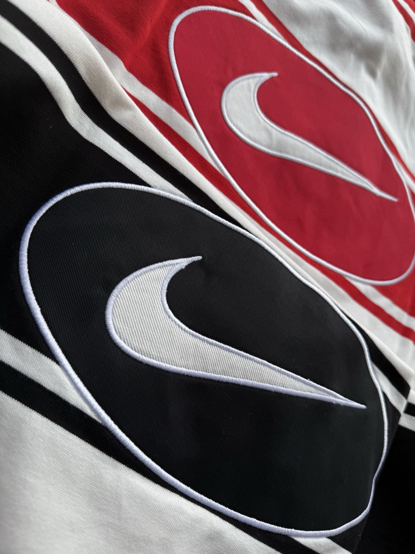 这款衣服是AAAAA 1:1 质量 (非常棒). 使用了和原版一模一样的材料. 商标部分也保持了和Nike一样. 图片拍摄是实物衣服拍摄, 您所收到的实物保证和我们图片一模一样.