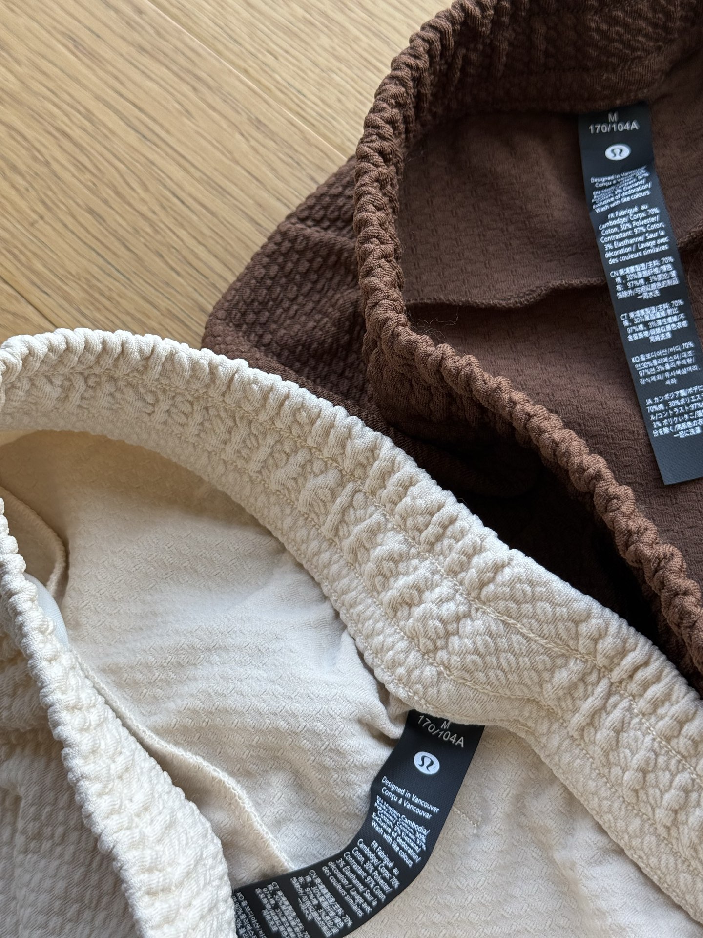 这款衣服是AAAAA 1:1 质量 (非常棒). 使用了和原版一模一样的材料. 商标部分也保持了和Lululemon一样. 图片拍摄是实物衣服拍摄, 您所收到的实物保证和我们图片一模一样.