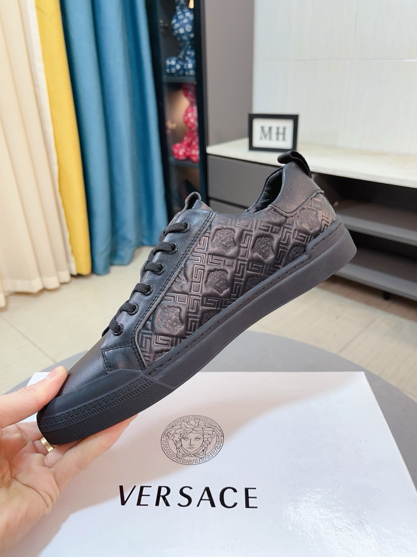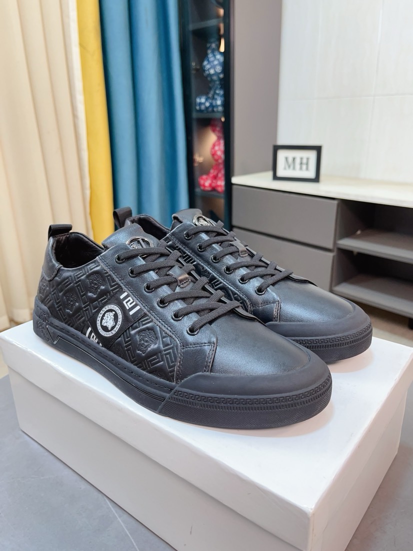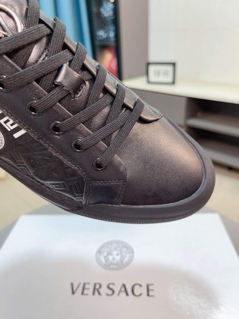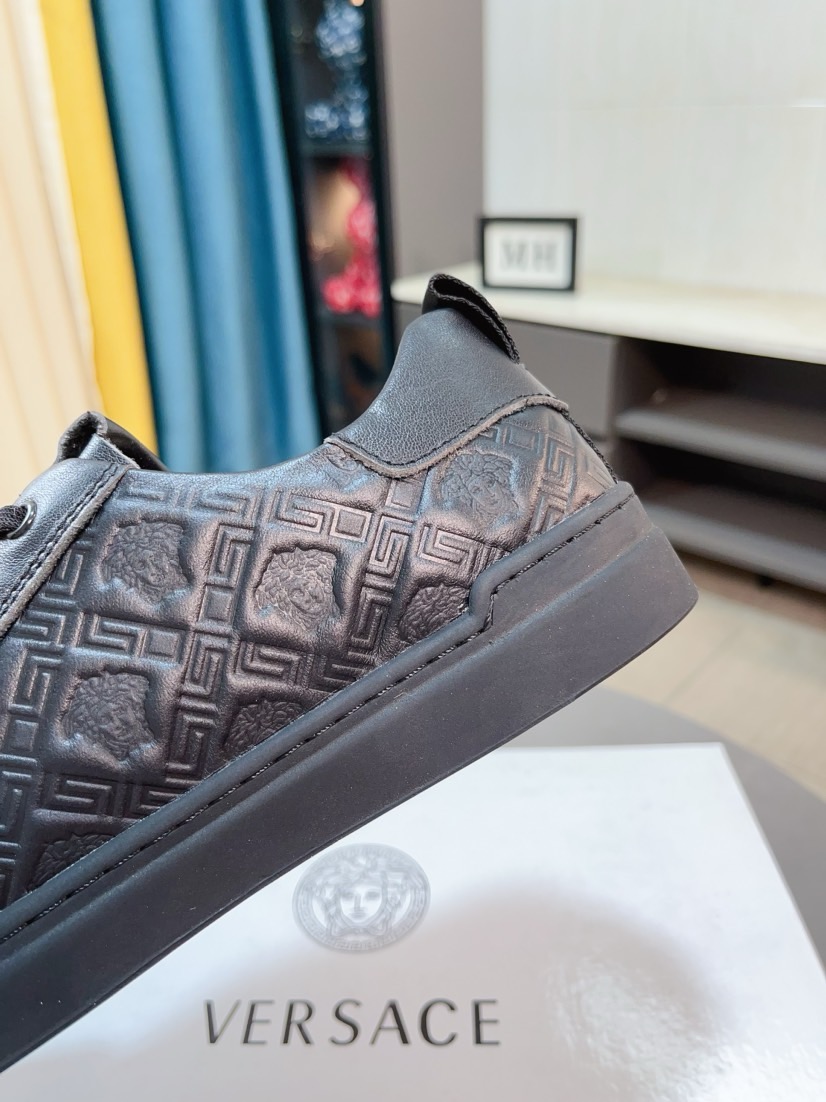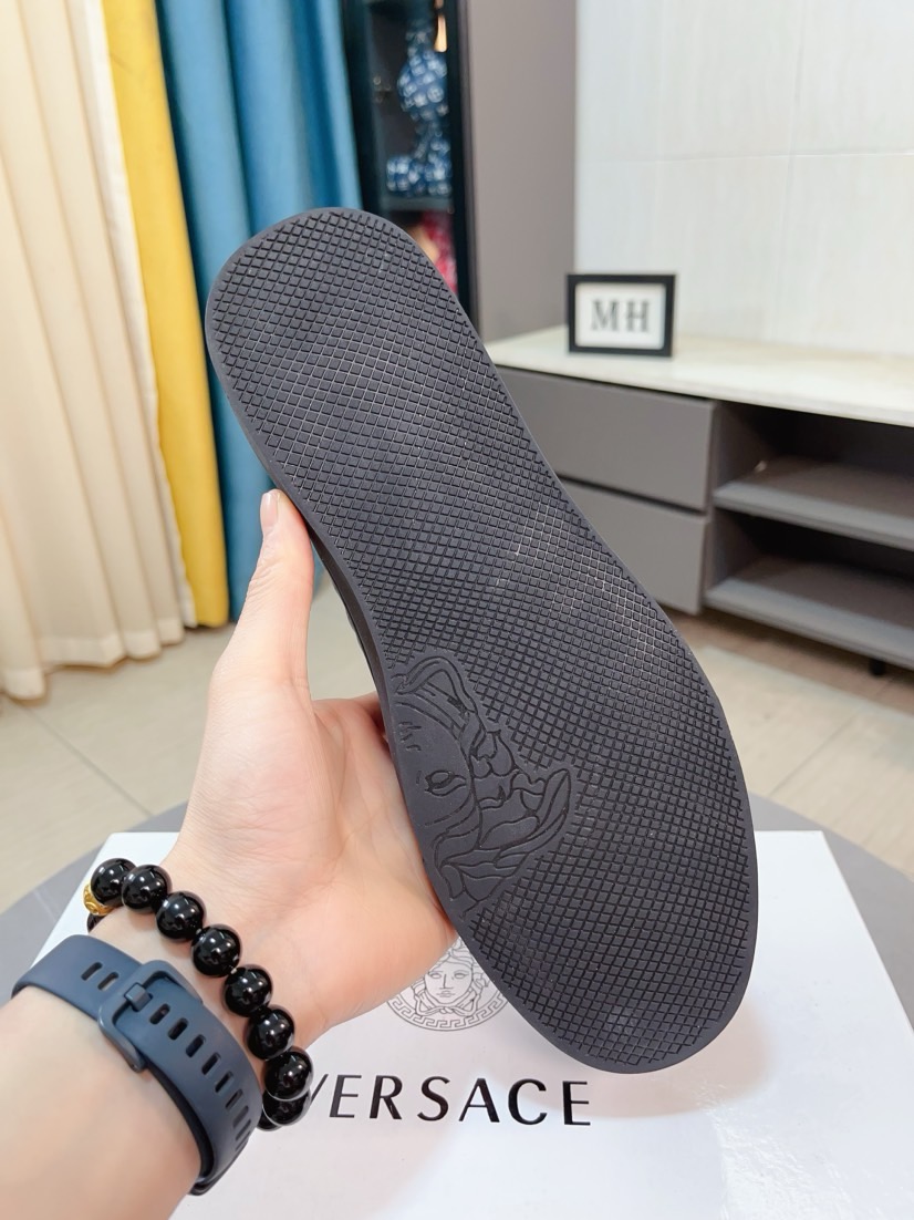 这款鞋子是AAAAA 1:1 质量 (非常棒). 使用了和原版一模一样的材料. 商标部分也保持了和范思哲/Versace一样. 图片拍摄是实物鞋子拍摄, 您所收到的实物保证和我们图片一模一样.