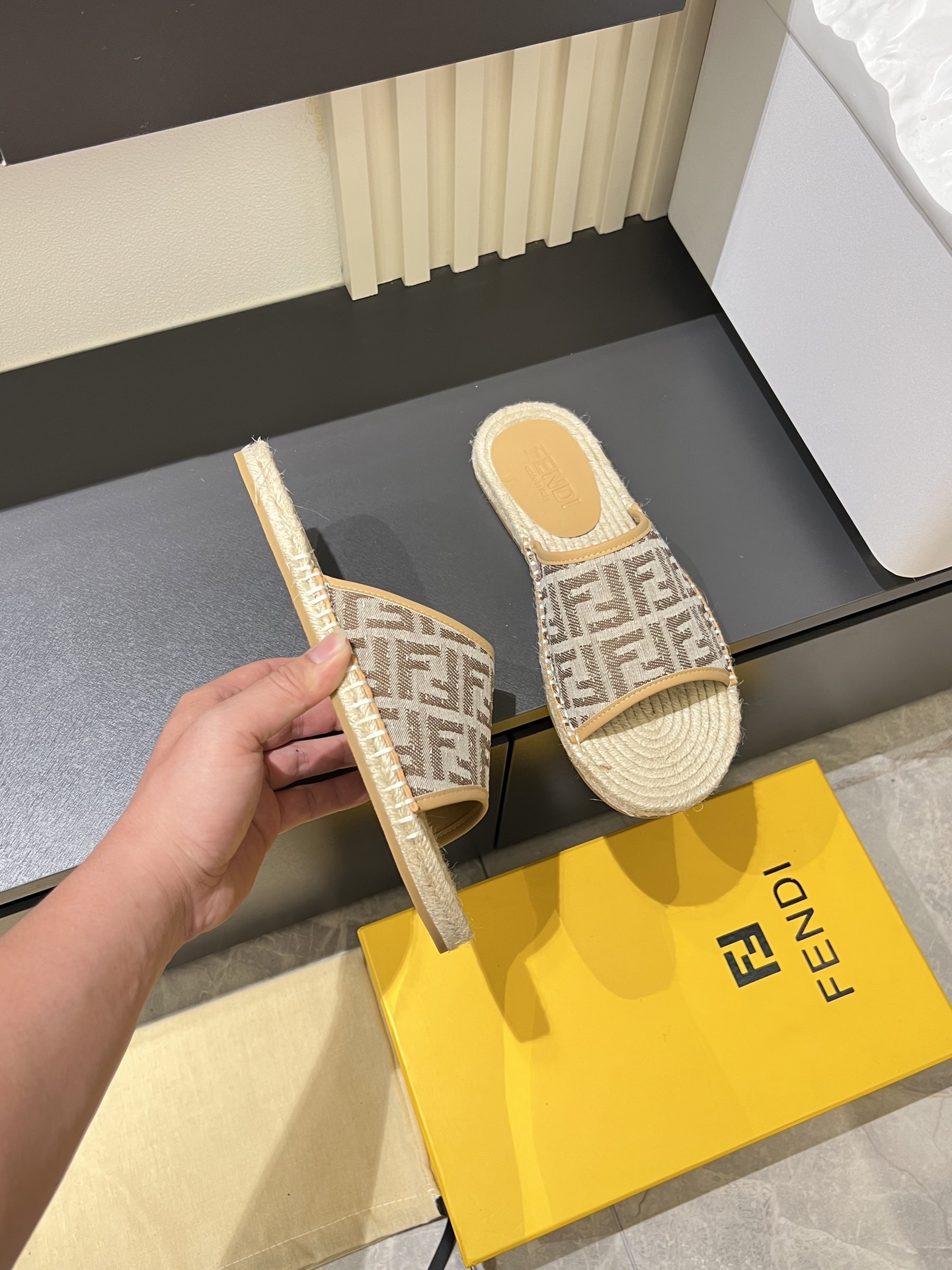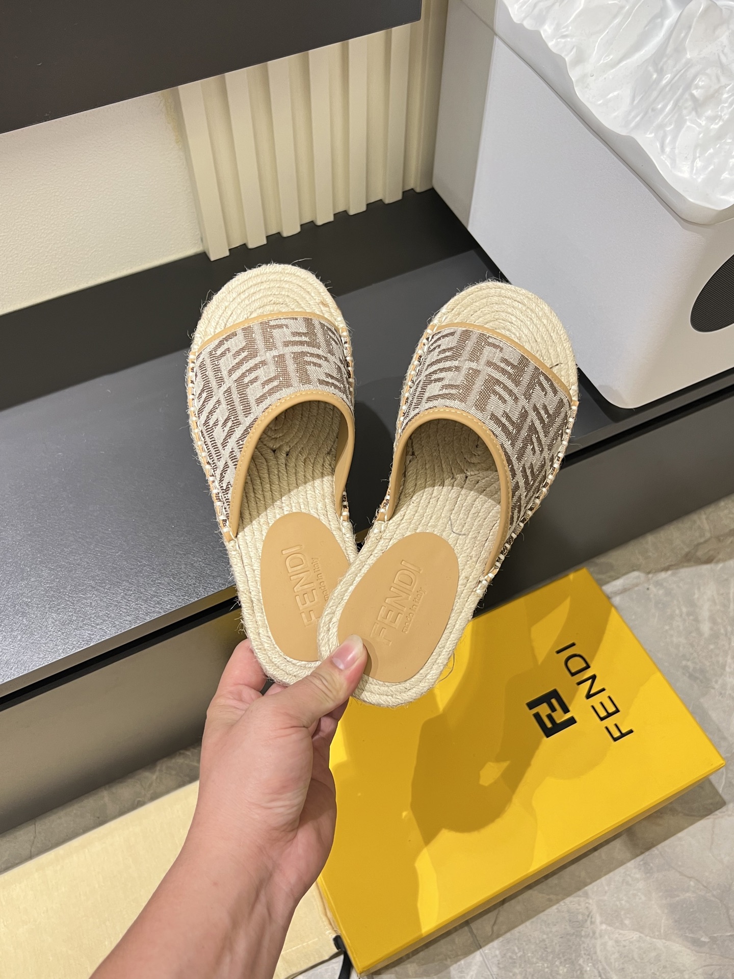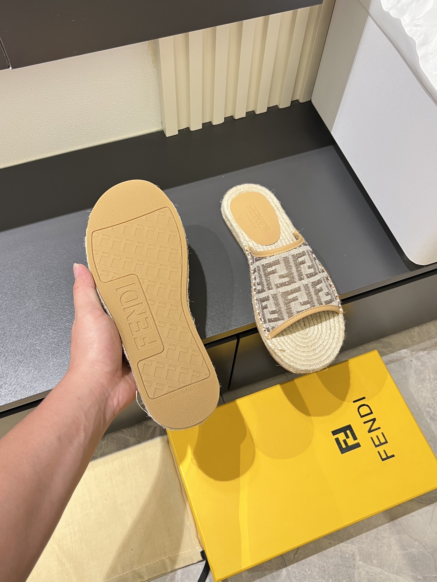 这款鞋子是AAAAA 1:1 质量 (非常棒). 使用了和原版一模一样的材料. 商标部分也保持了和芬迪/Fendi一样. 图片拍摄是实物鞋子拍摄, 您所收到的实物保证和我们图片一模一样.