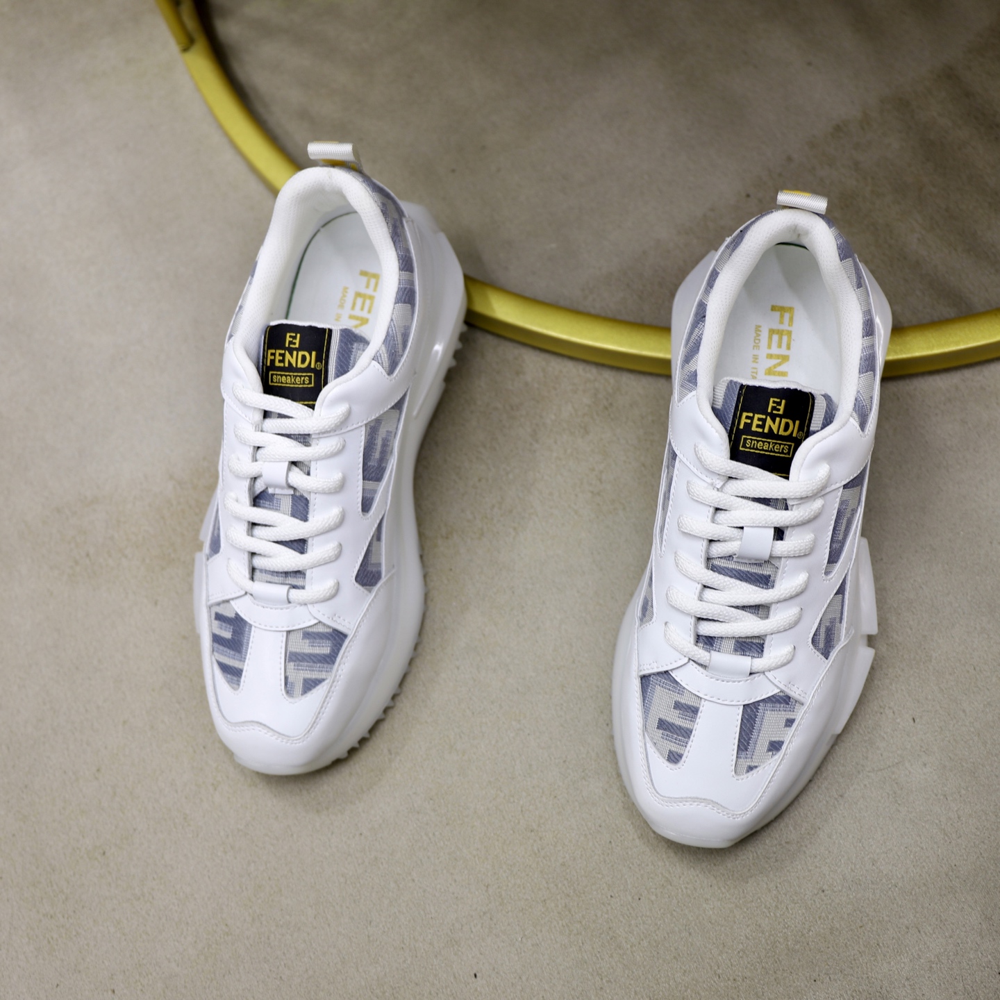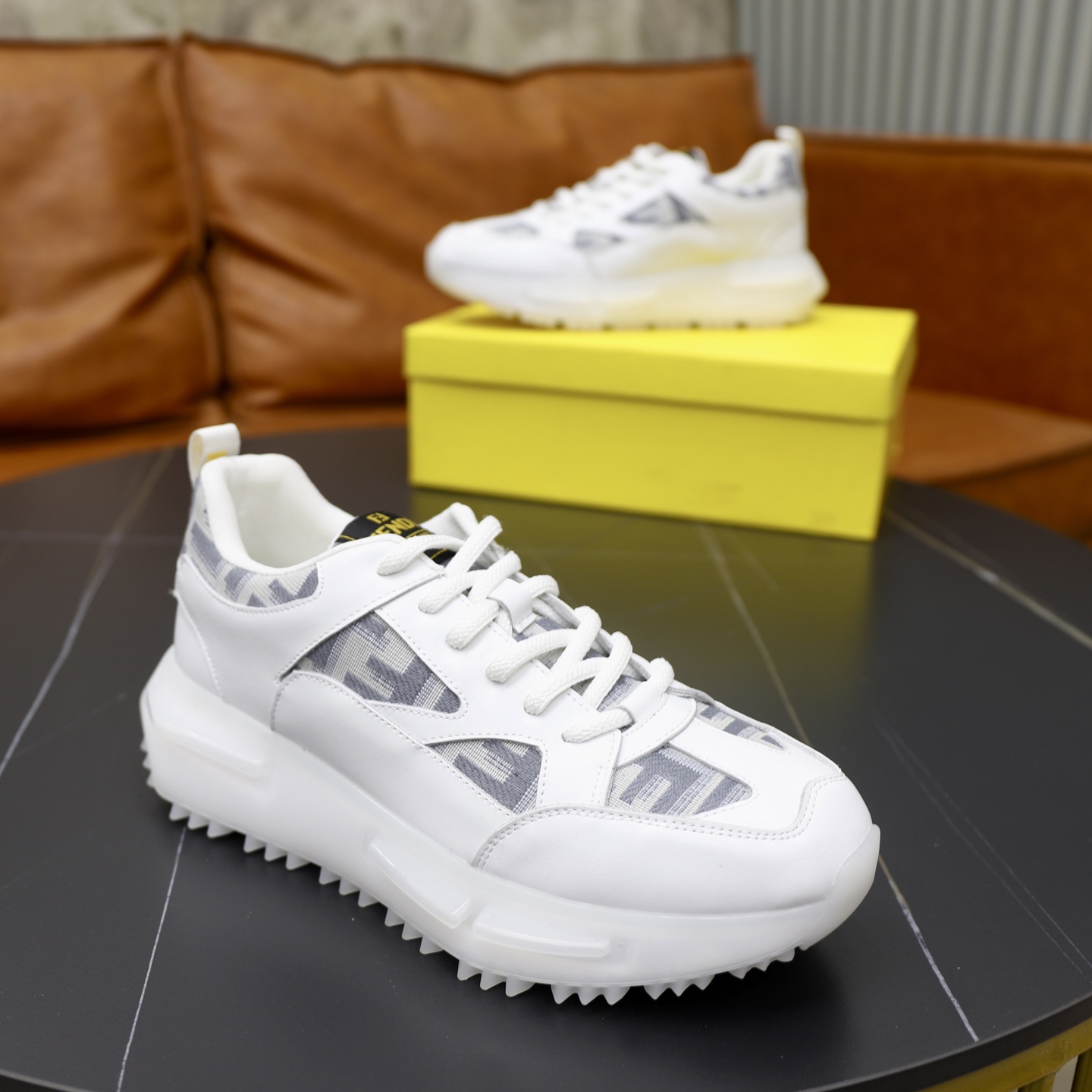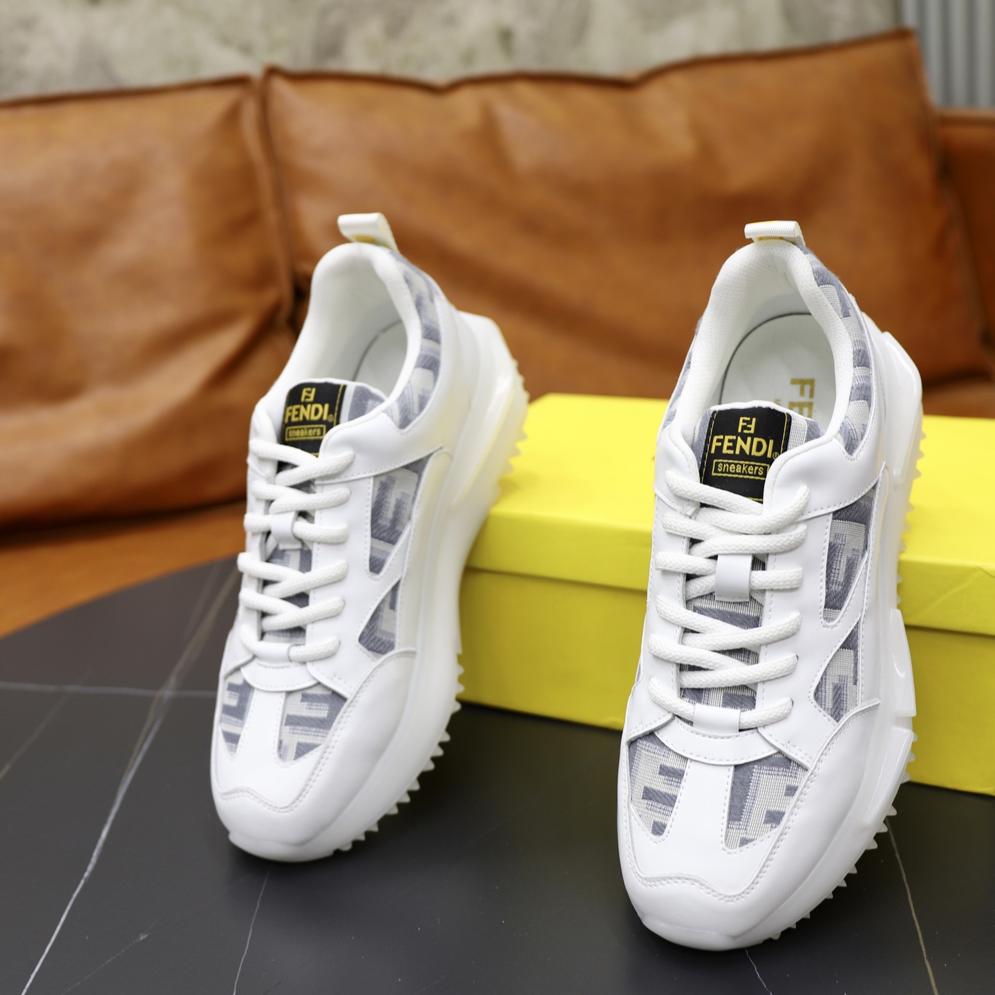 这款鞋子是AAAAA 1:1 质量 (非常棒). 使用了和原版一模一样的材料. 商标部分也保持了和芬迪/Fendi一样. 图片拍摄是实物鞋子拍摄, 您所收到的实物保证和我们图片一模一样.