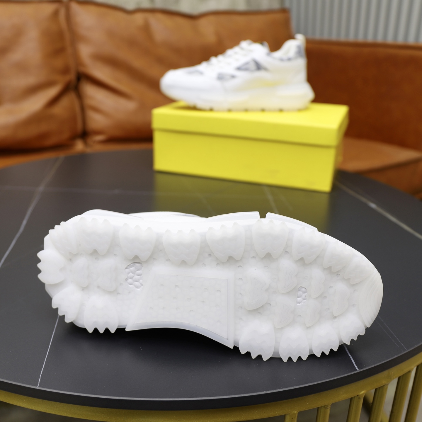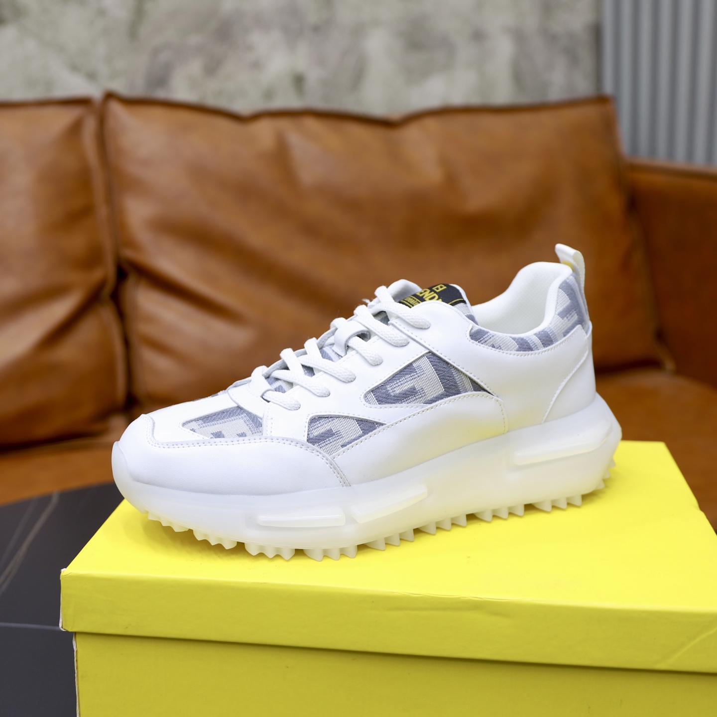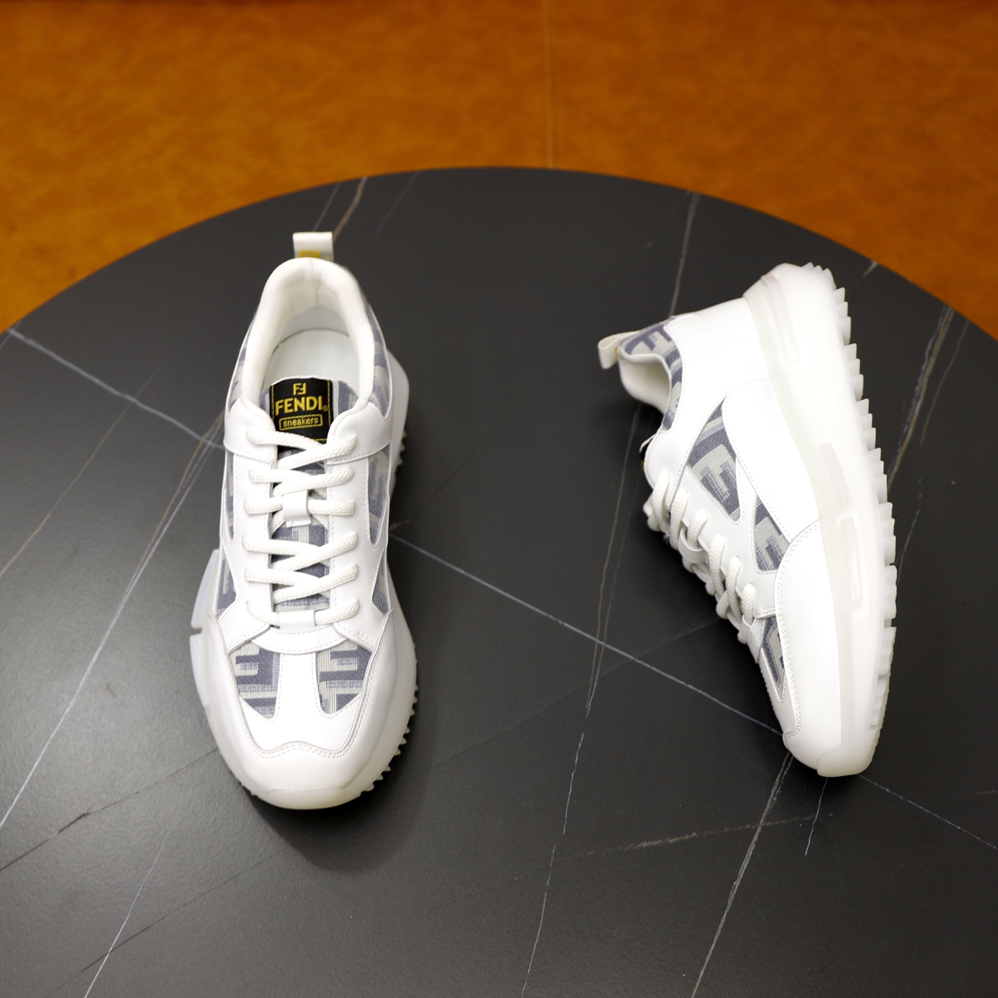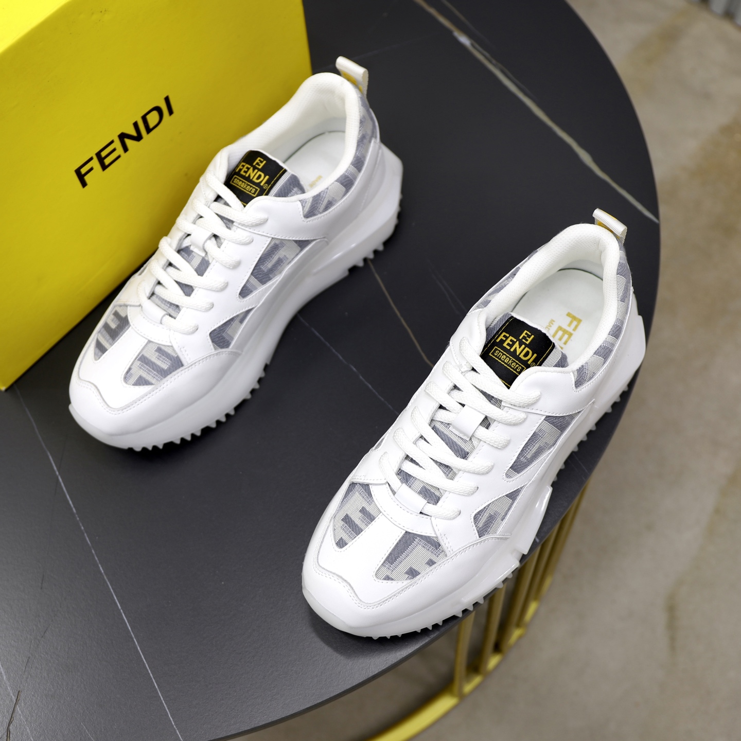 这款鞋子是AAAAA 1:1 质量 (非常棒). 使用了和原版一模一样的材料. 商标部分也保持了和芬迪/Fendi一样. 图片拍摄是实物鞋子拍摄, 您所收到的实物保证和我们图片一模一样.