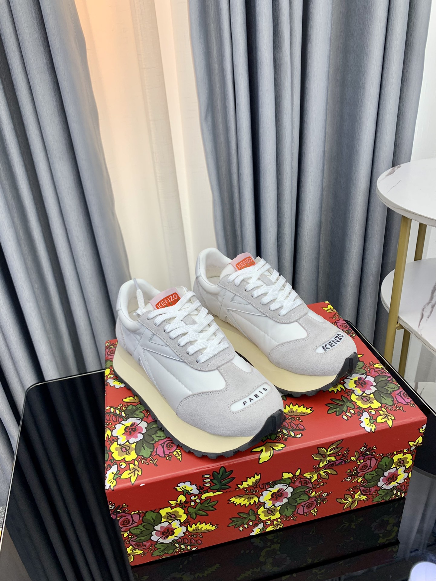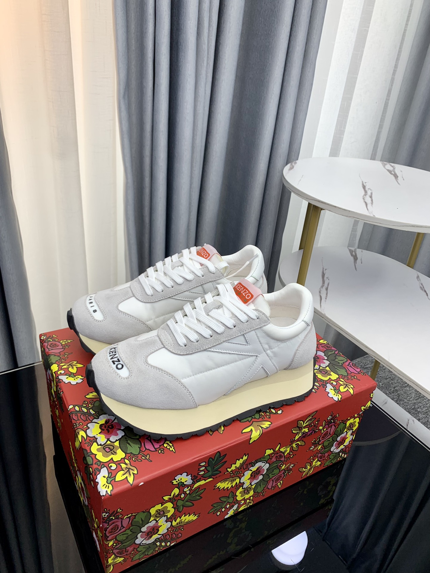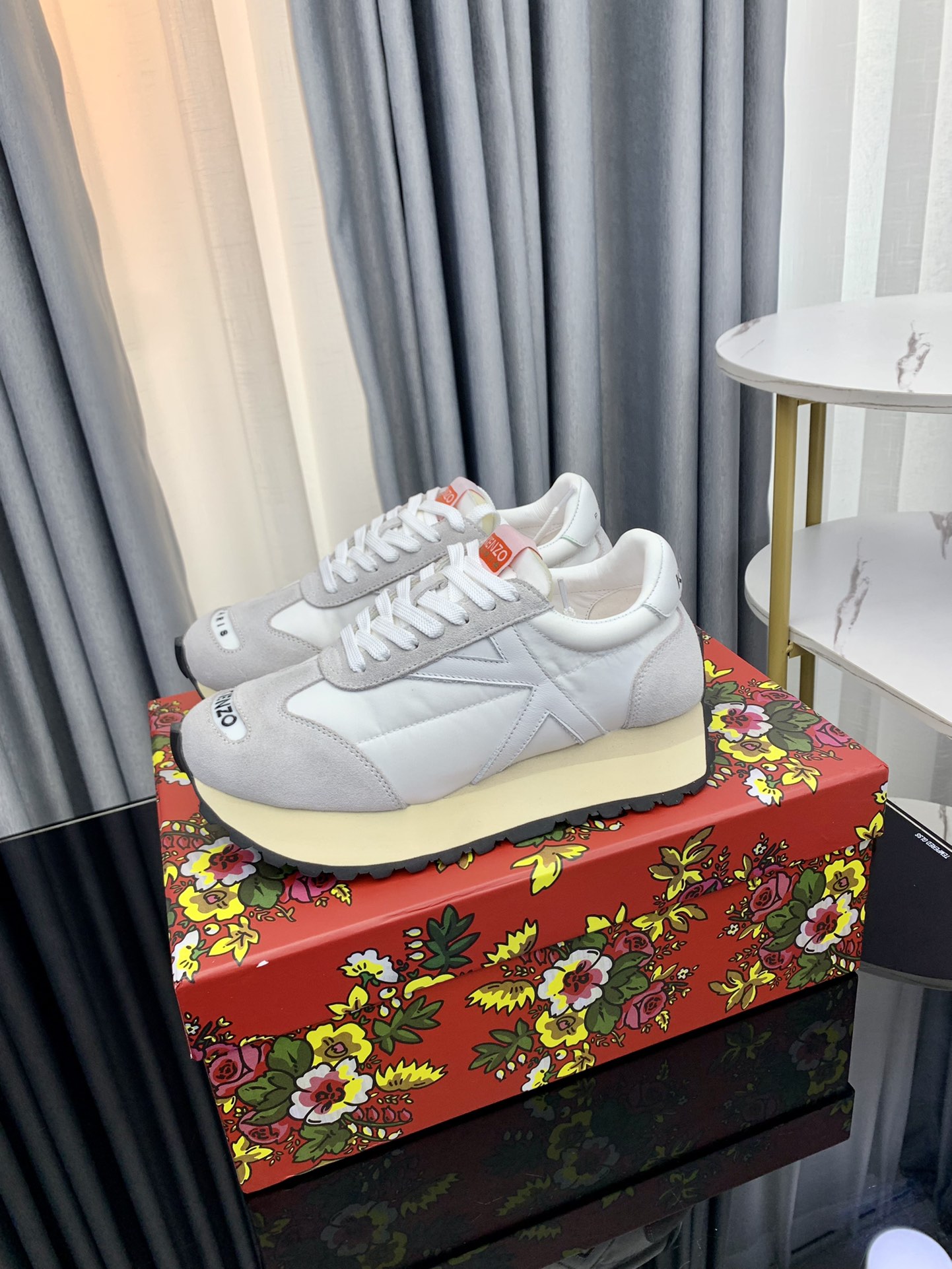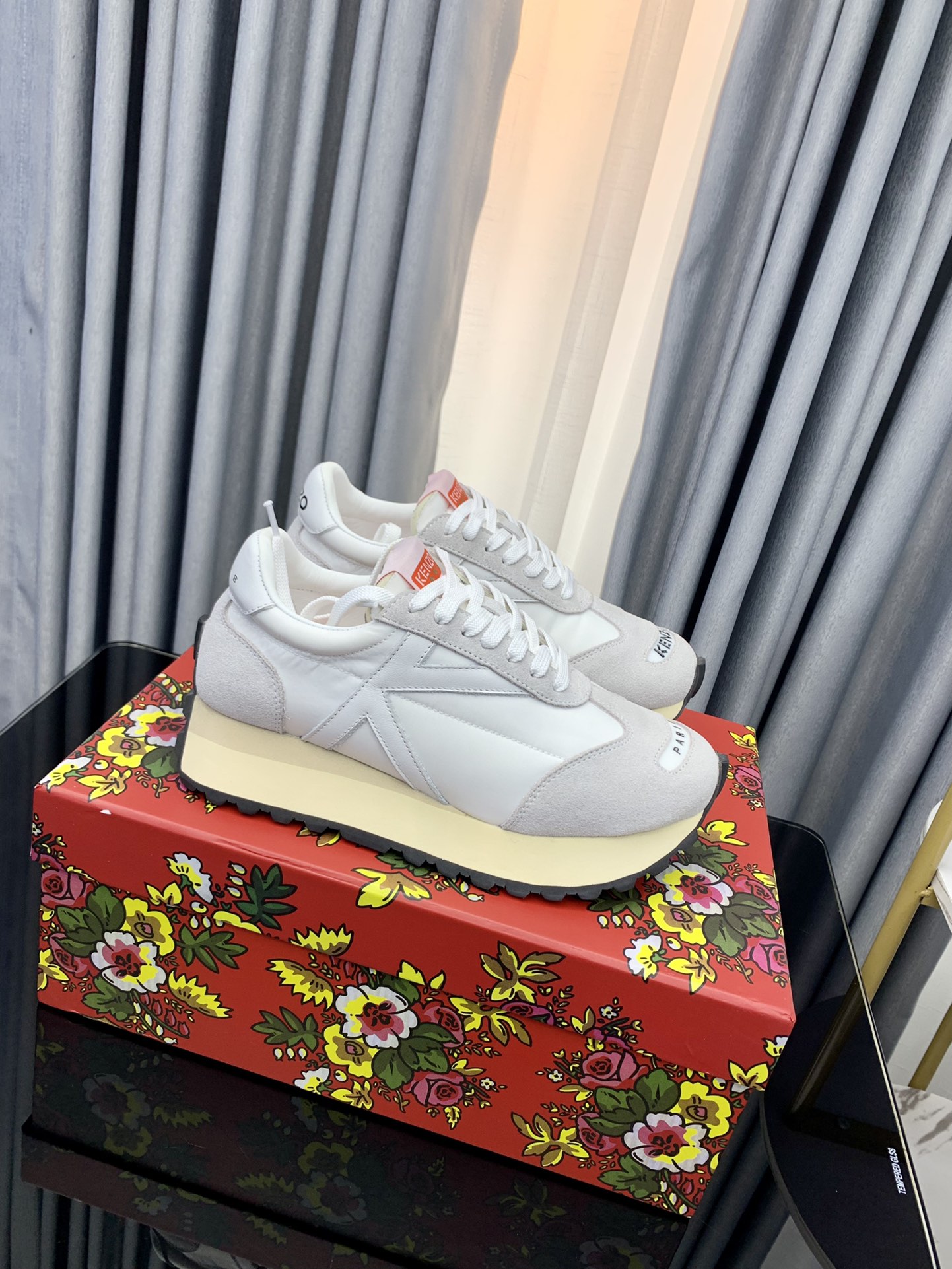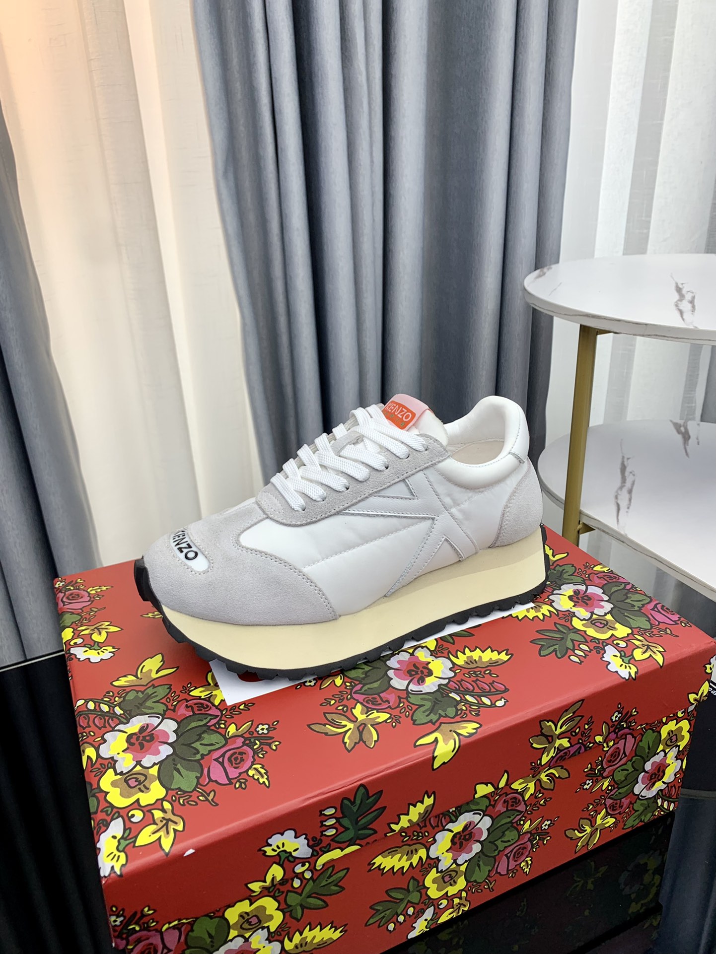 这款鞋子是AAAAA 1:1 质量 (非常棒). 使用了和原版一模一样的材料. 商标部分也保持了和KENZO一样. 图片拍摄是实物鞋子拍摄, 您所收到的实物保证和我们图片一模一样.