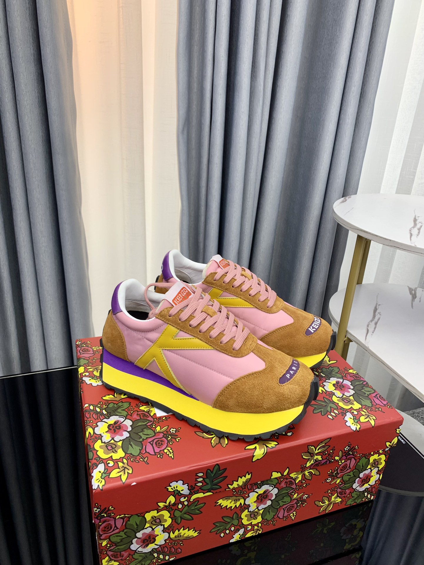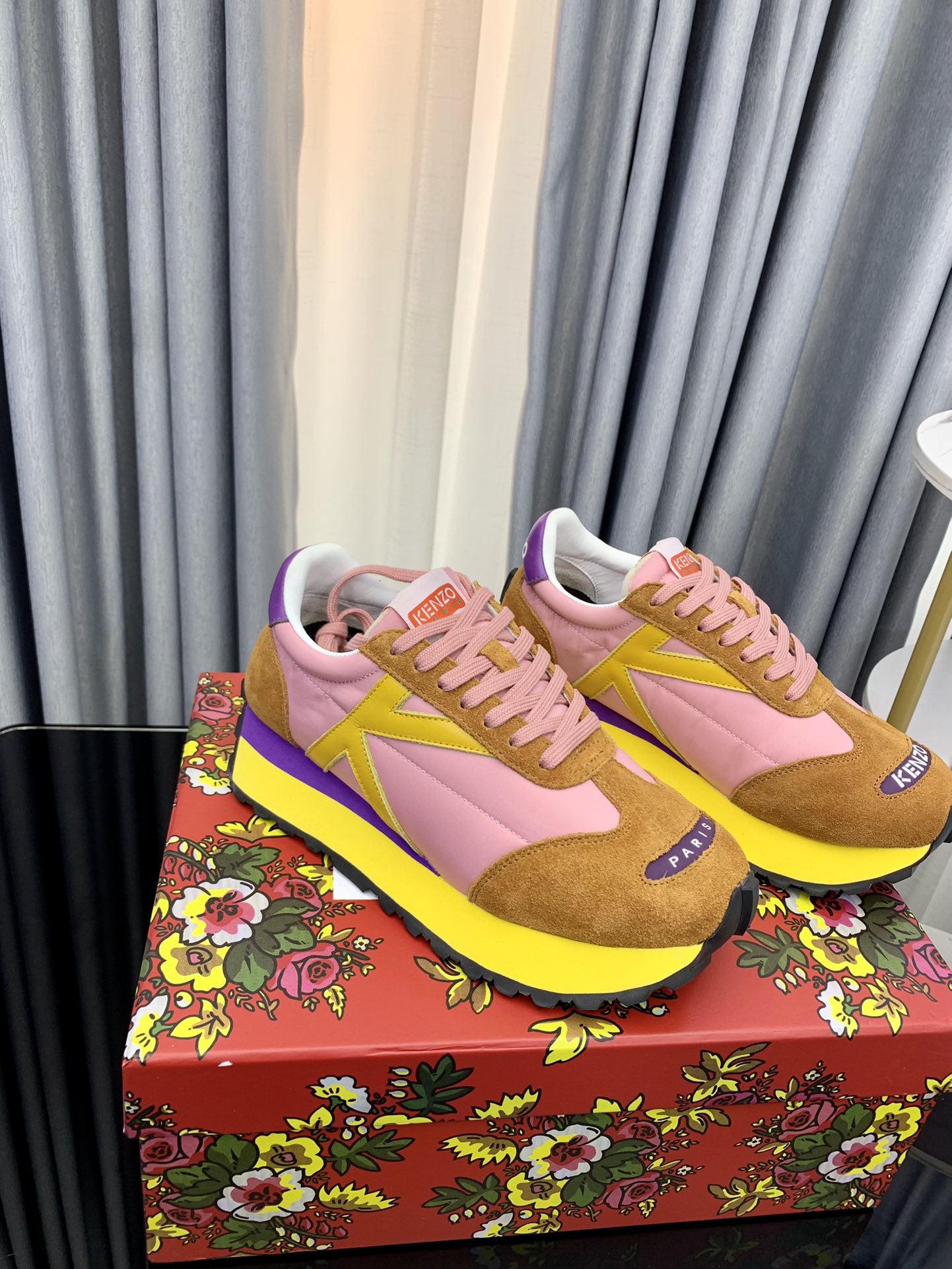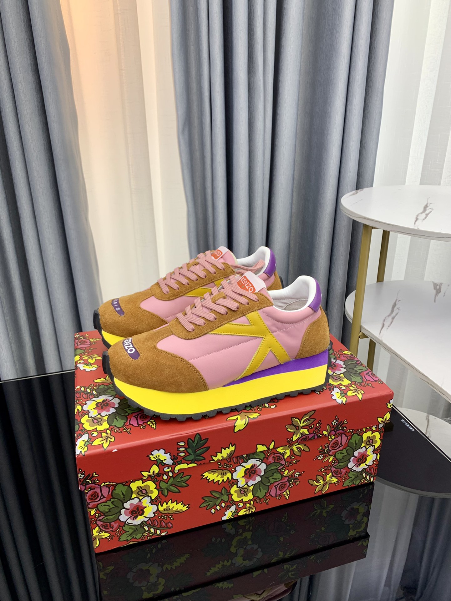 这款鞋子是AAAAA 1:1 质量 (非常棒). 使用了和原版一模一样的材料. 商标部分也保持了和KENZO一样. 图片拍摄是实物鞋子拍摄, 您所收到的实物保证和我们图片一模一样.