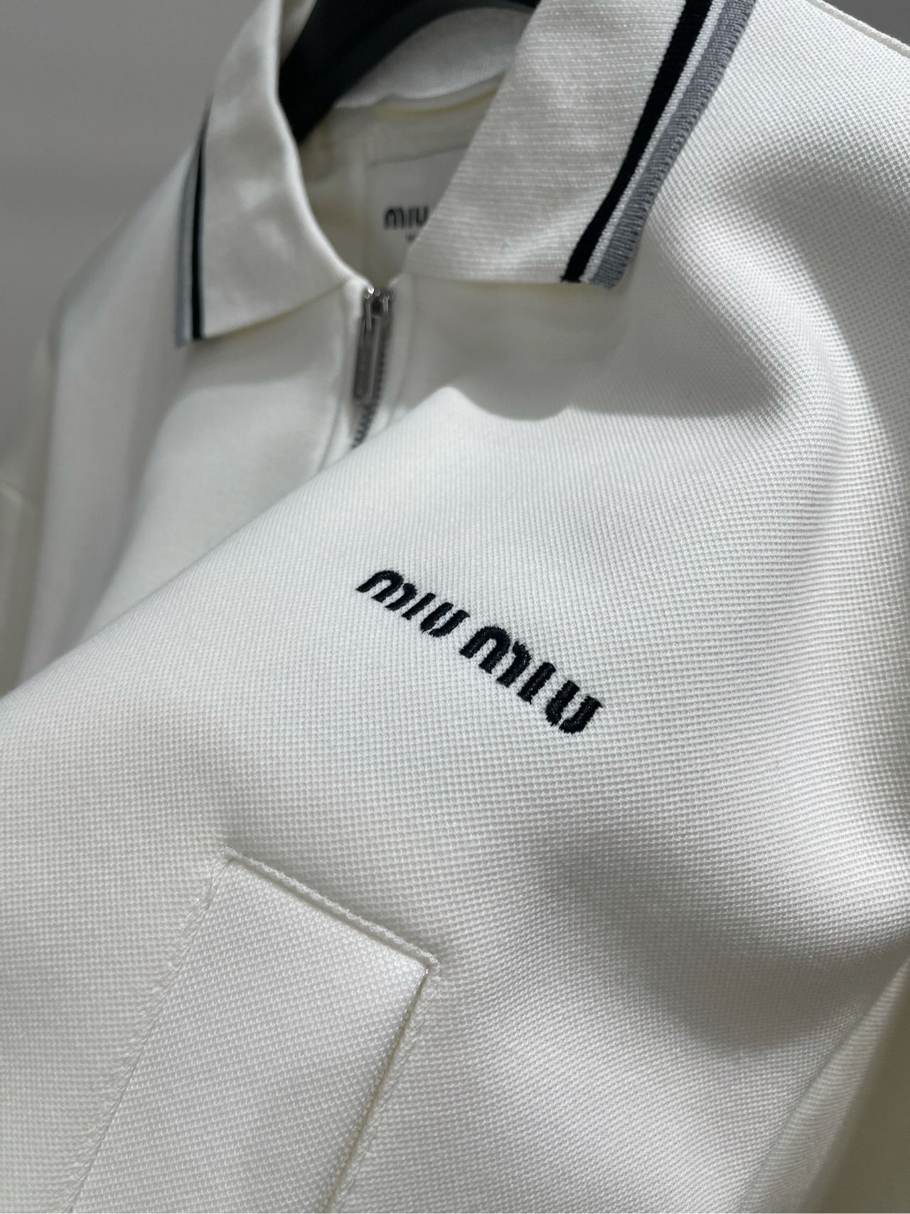 这款衣服是AAAAA 1:1 质量 (非常棒). 使用了和原版一模一样的材料. 商标部分也保持了和缪缪/Miu Miu一样. 图片拍摄是实物衣服拍摄, 您所收到的实物保证和我们图片一模一样.