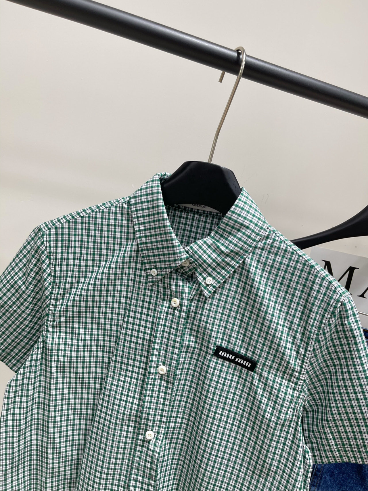 这款衣服是AAAAA 1:1 质量 (非常棒). 使用了和原版一模一样的材料. 商标部分也保持了和缪缪/Miu Miu一样. 图片拍摄是实物衣服拍摄, 您所收到的实物保证和我们图片一模一样.