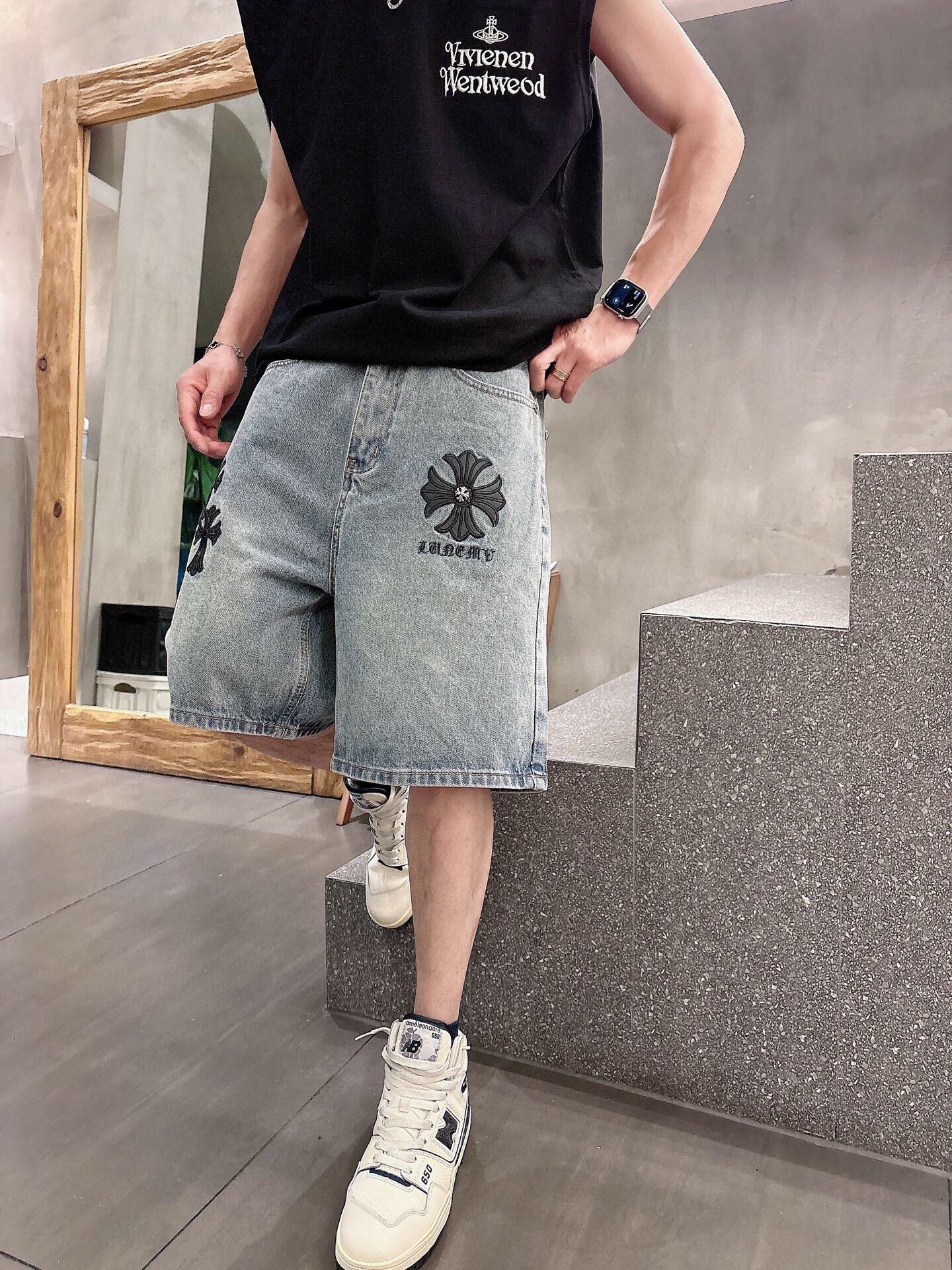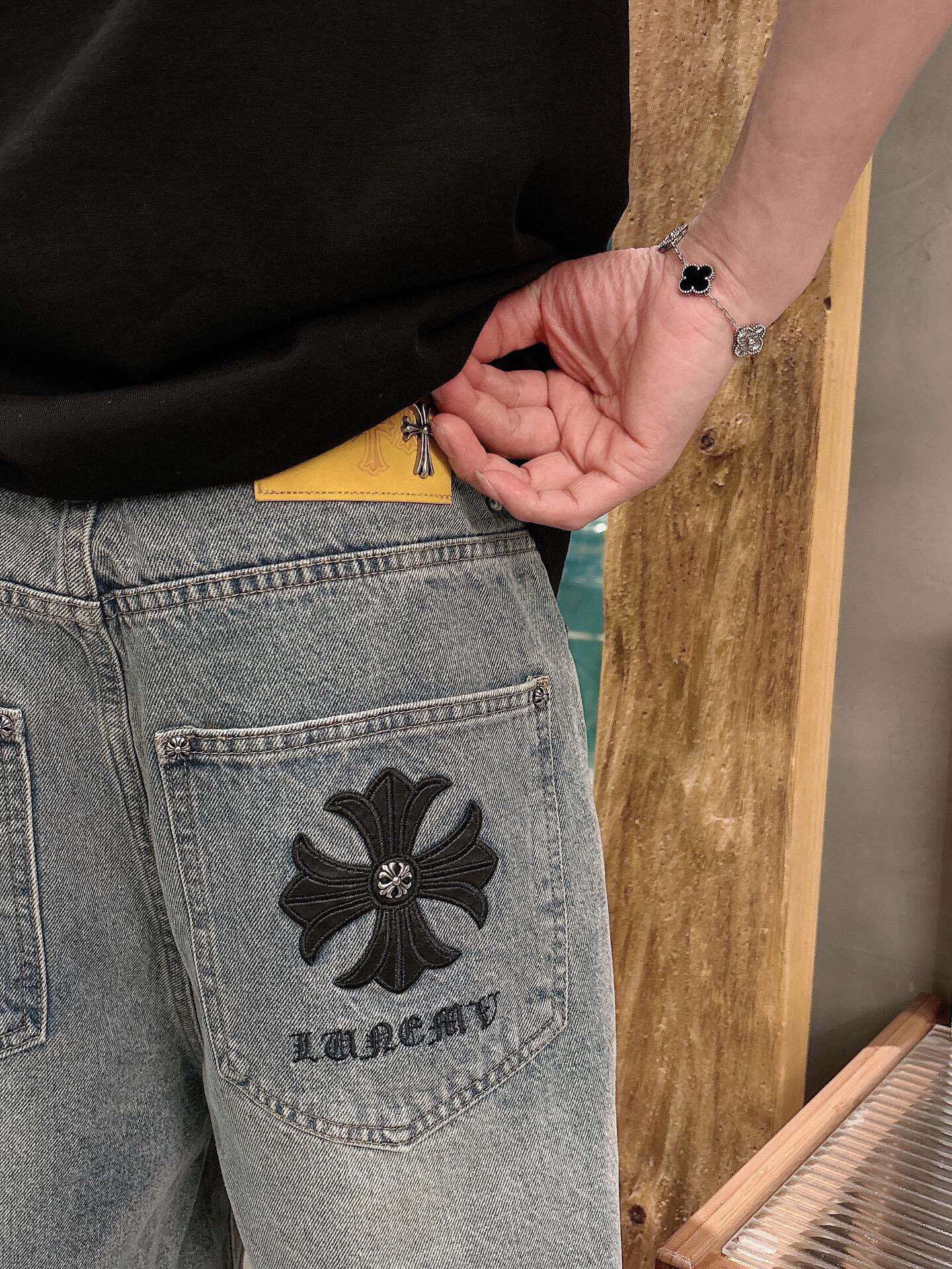 这款衣服是AAAAA 1:1 质量 (非常棒). 使用了和原版一模一样的材料. 商标部分也保持了和克罗心/Chrome Hearts一样. 图片拍摄是实物衣服拍摄, 您所收到的实物保证和我们图片一模一样.