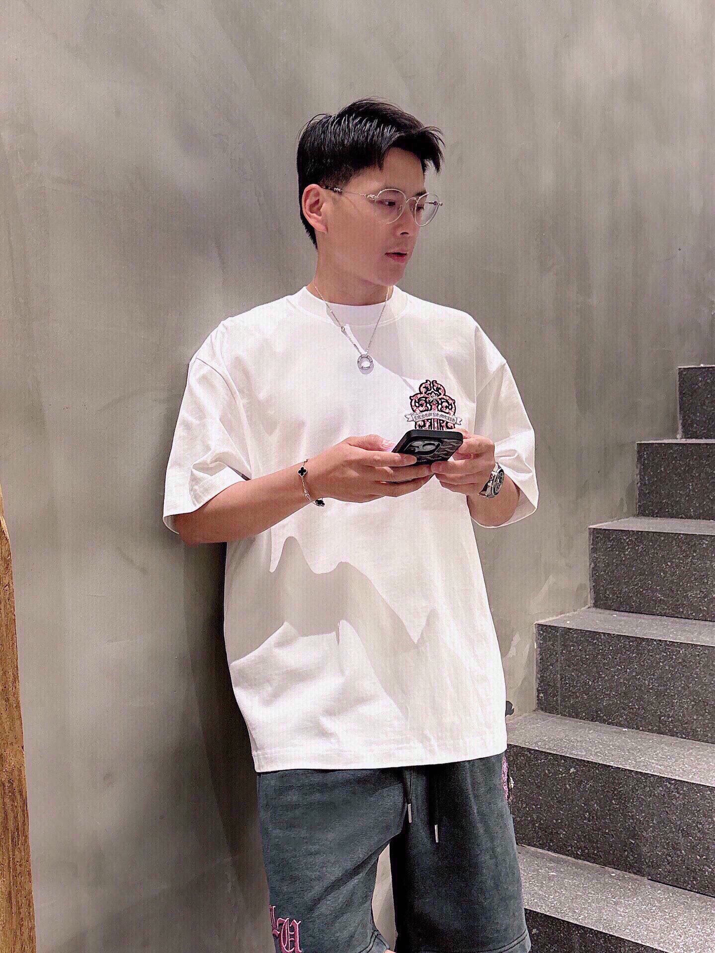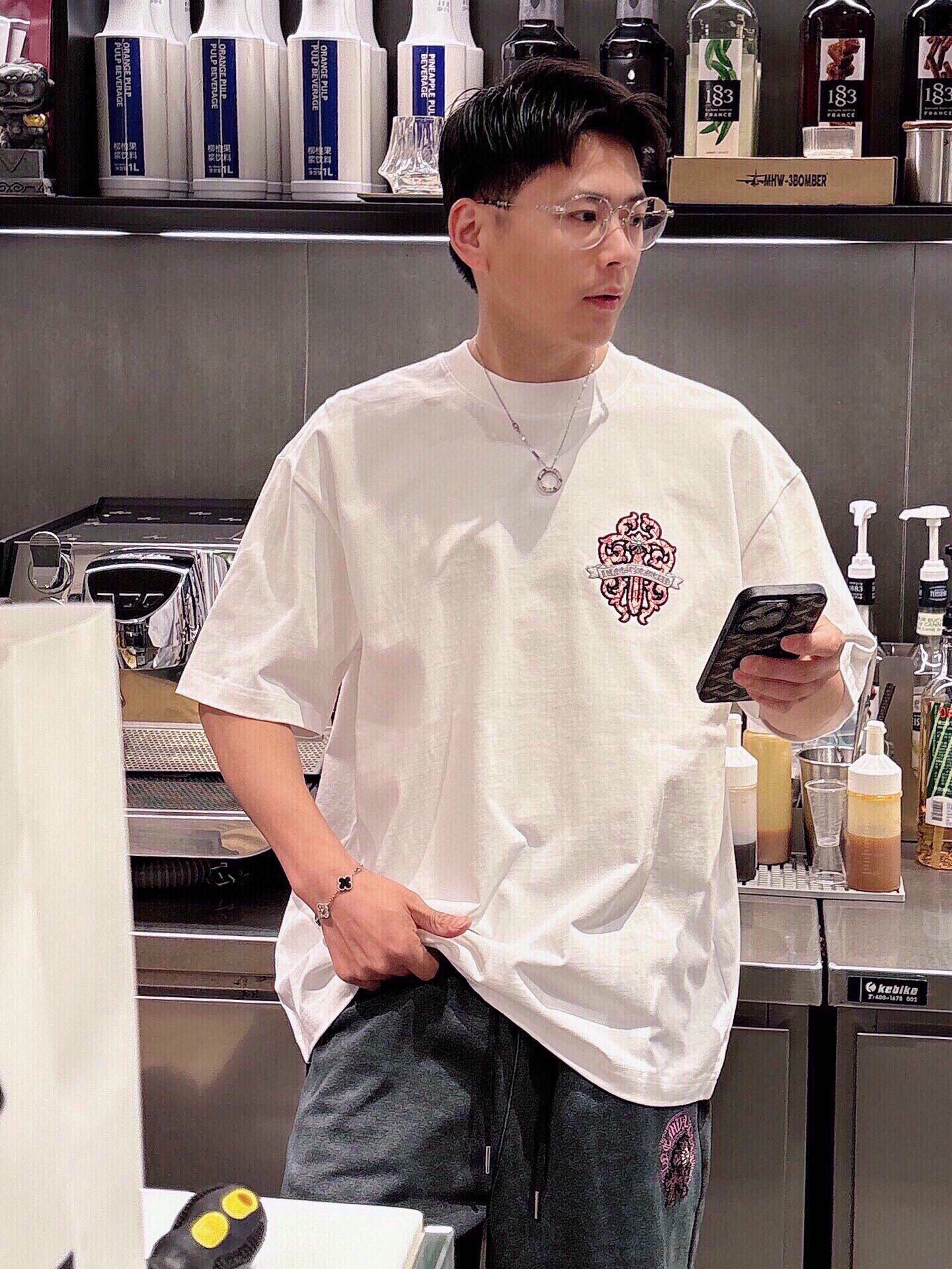 这款衣服是AAAAA 1:1 质量 (非常棒). 使用了和原版一模一样的材料. 商标部分也保持了和克罗心/Chrome Hearts一样. 图片拍摄是实物衣服拍摄, 您所收到的实物保证和我们图片一模一样.