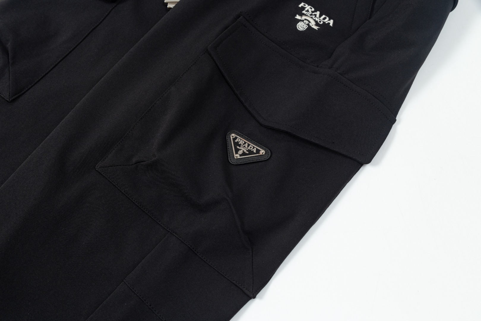 这款衣服是AAAAA 1:1 质量 (非常棒). 使用了和原版一模一样的材料. 商标部分也保持了和普拉达/Prada一样. 图片拍摄是实物衣服拍摄, 您所收到的实物保证和我们图片一模一样.