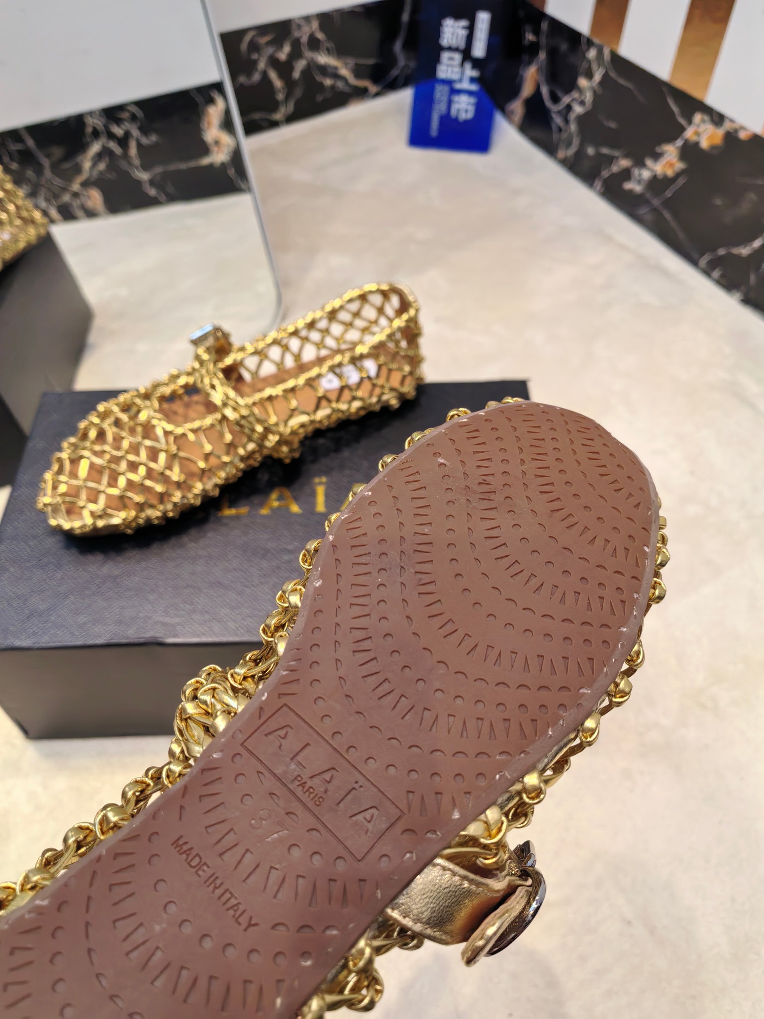 这款鞋子是AAAAA 1:1 质量 (非常棒). 使用了和原版一模一样的材料. 商标部分也保持了和Alaia一样. 图片拍摄是实物鞋子拍摄, 您所收到的实物保证和我们图片一模一样.