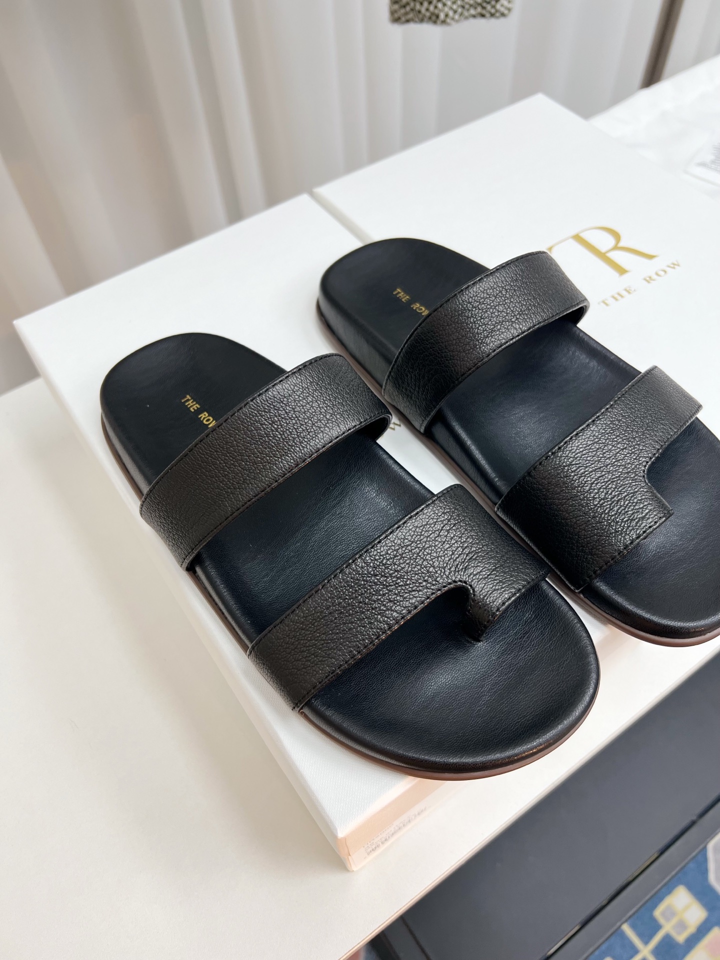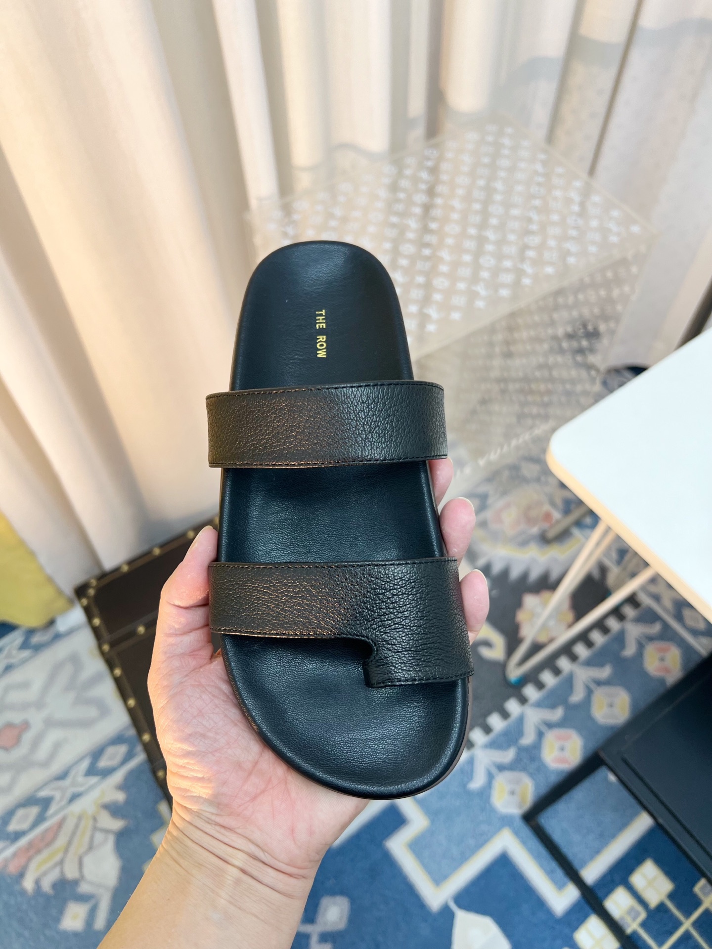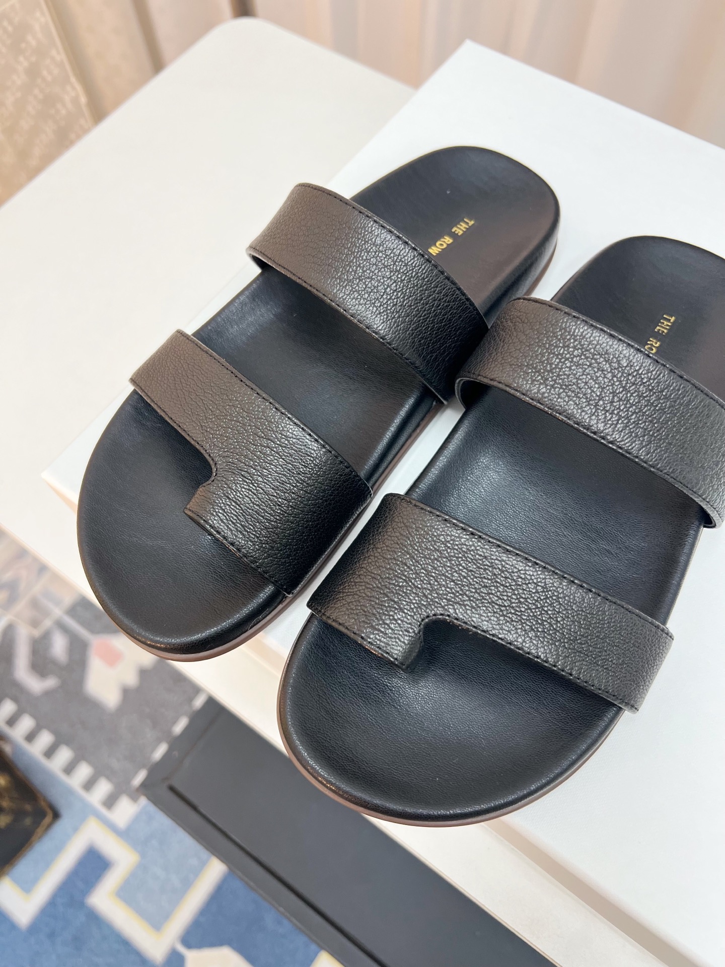 这款鞋子是AAAAA 1:1 质量 (非常棒). 使用了和原版一模一样的材料. 商标部分也保持了和The Row一样. 图片拍摄是实物鞋子拍摄, 您所收到的实物保证和我们图片一模一样.
