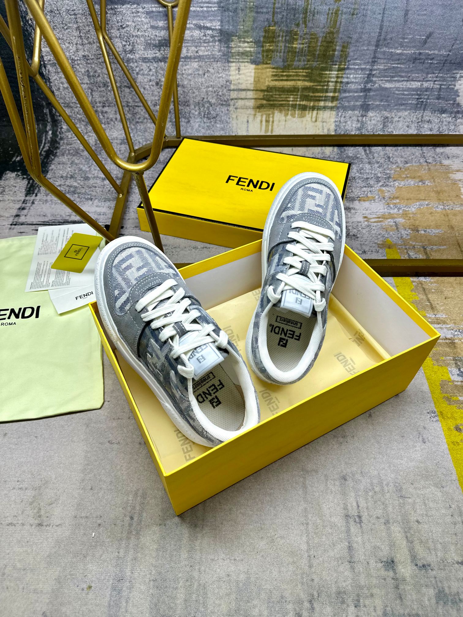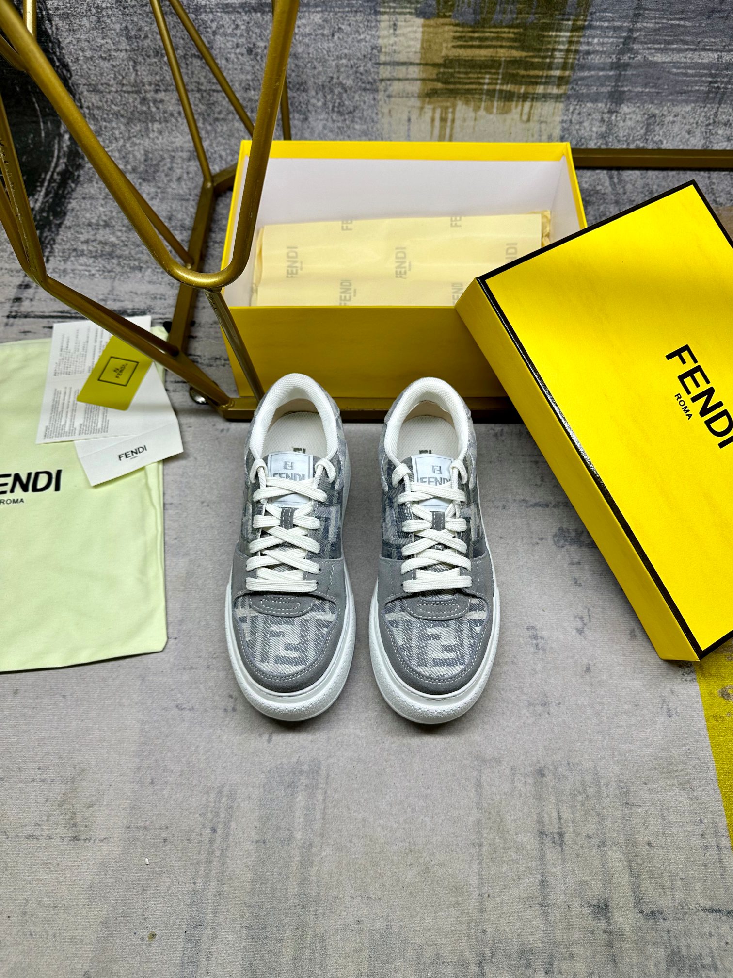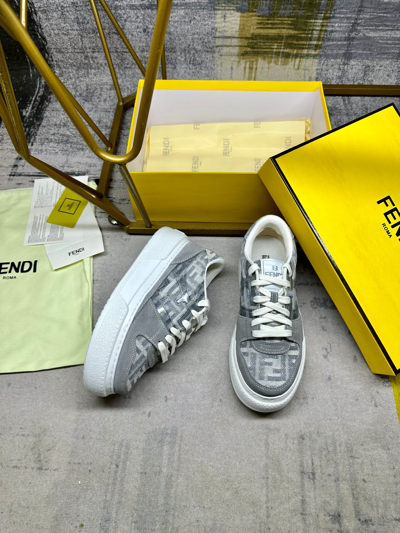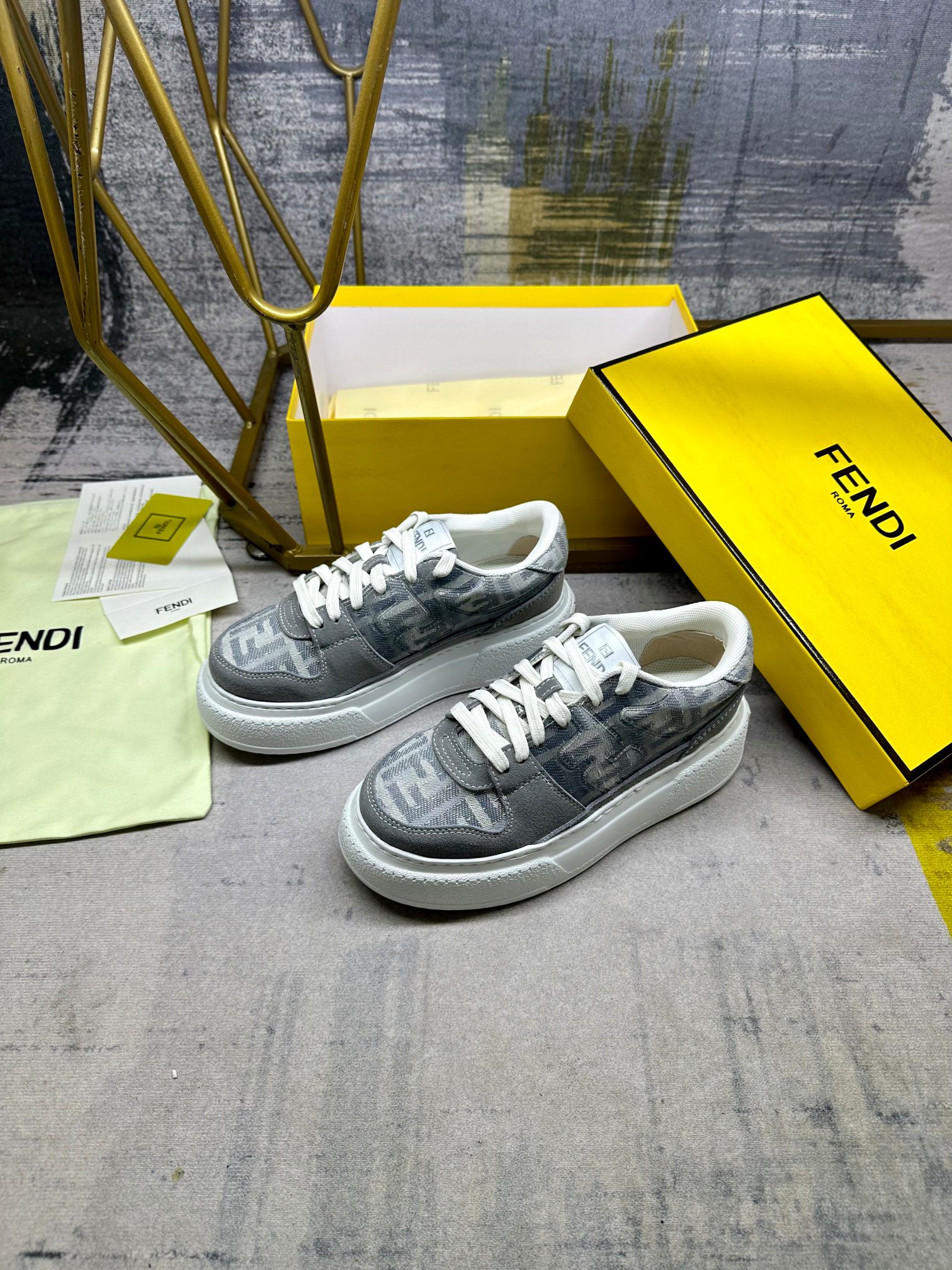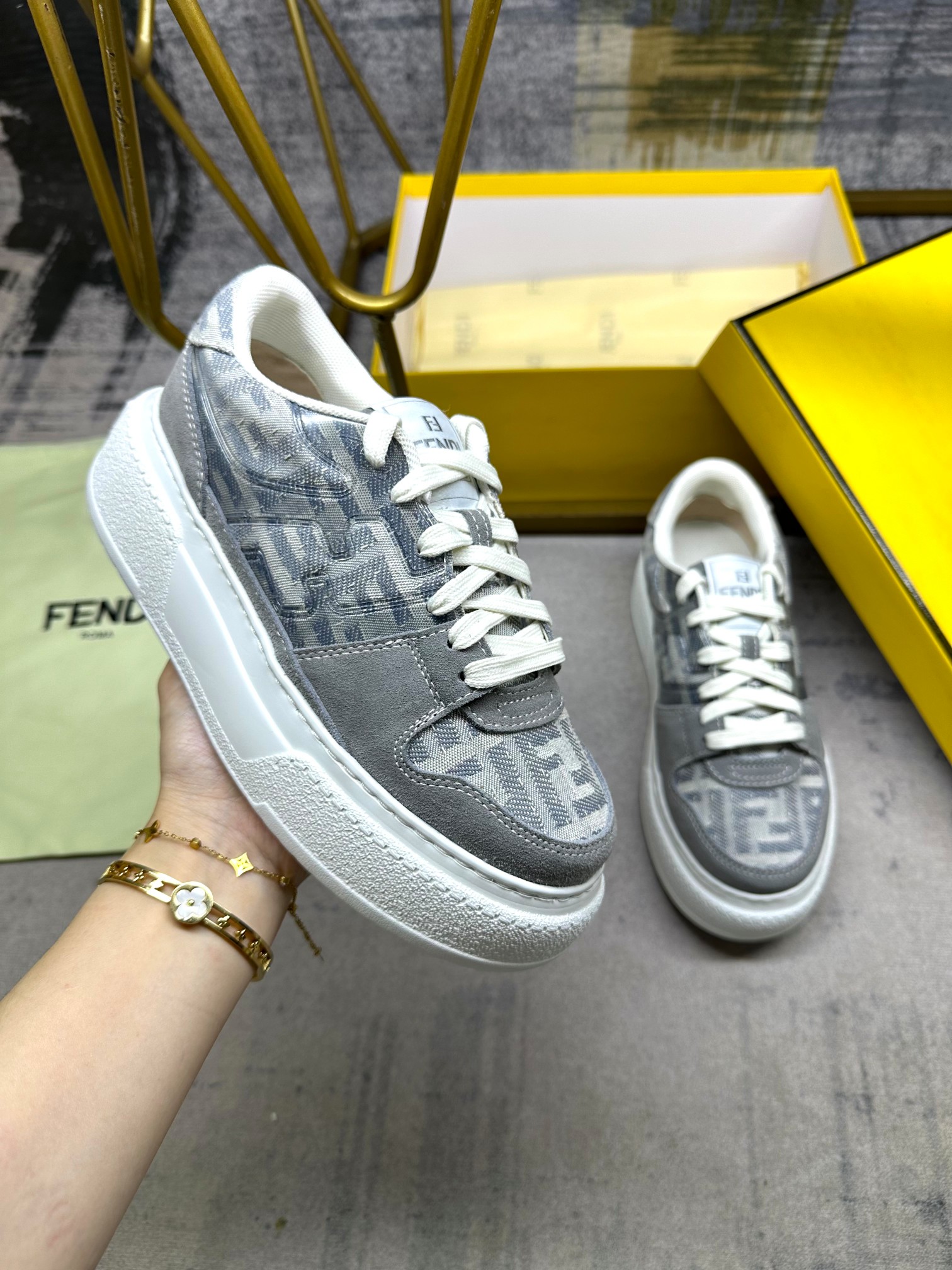这款鞋子是AAAAA 1:1 质量 (非常棒). 使用了和原版一模一样的材料. 商标部分也保持了和芬迪/Fendi一样. 图片拍摄是实物鞋子拍摄, 您所收到的实物保证和我们图片一模一样.